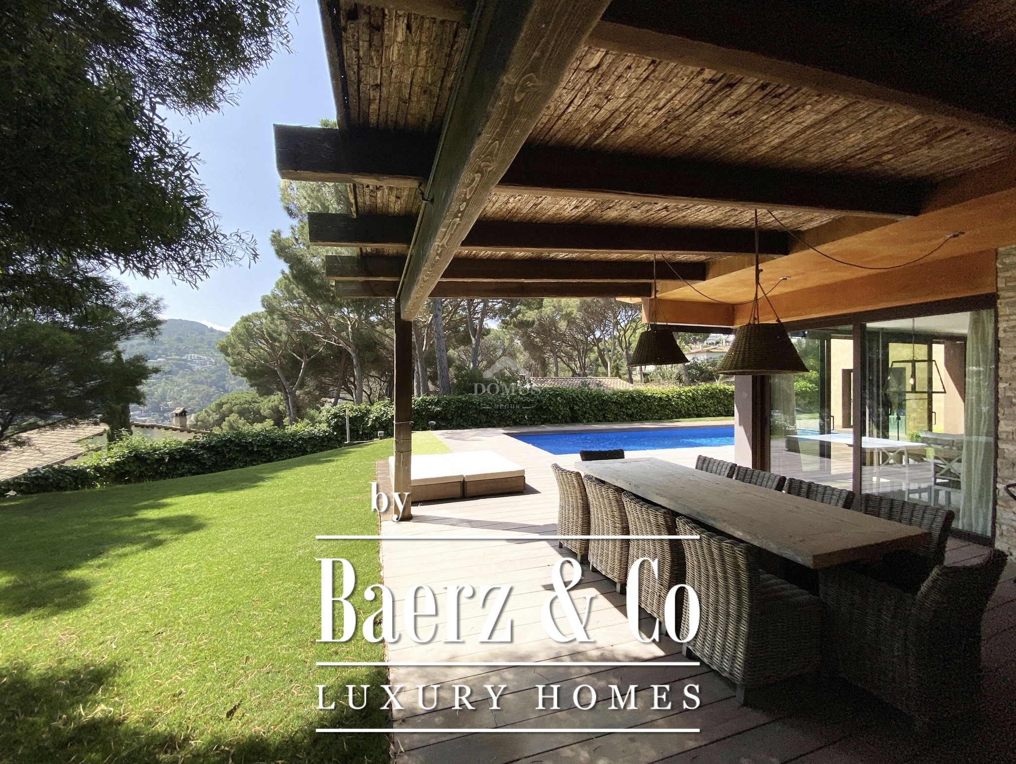 Fantastische woning in moderne stijl met uitzicht op zee, gelegen op 700 meter van het centrum van Begur en op 1,5 km van het strand van Sa Riera. Verdeeld over twee verdiepingen, vinden we op de hoofdverdieping een ruime en lichte woon-eetkamer met toegang tot terras en tuin, grote open keuken met centraal eiland en directe toegang tot veranda, toilet en twee tweepersoons slaapkamers suite met eigen badkamer. Op de bovenverdieping, twee fantastische suites met toegang tot grote terrassen met panoramisch uitzicht op de zee en de Medes-eilanden. In de buitenruimte, een goed onderhouden tuin met verschillende rustzones, solarium, veranda's en barbecue. Garage voor twee auto's en buiten parkeerplaats.
