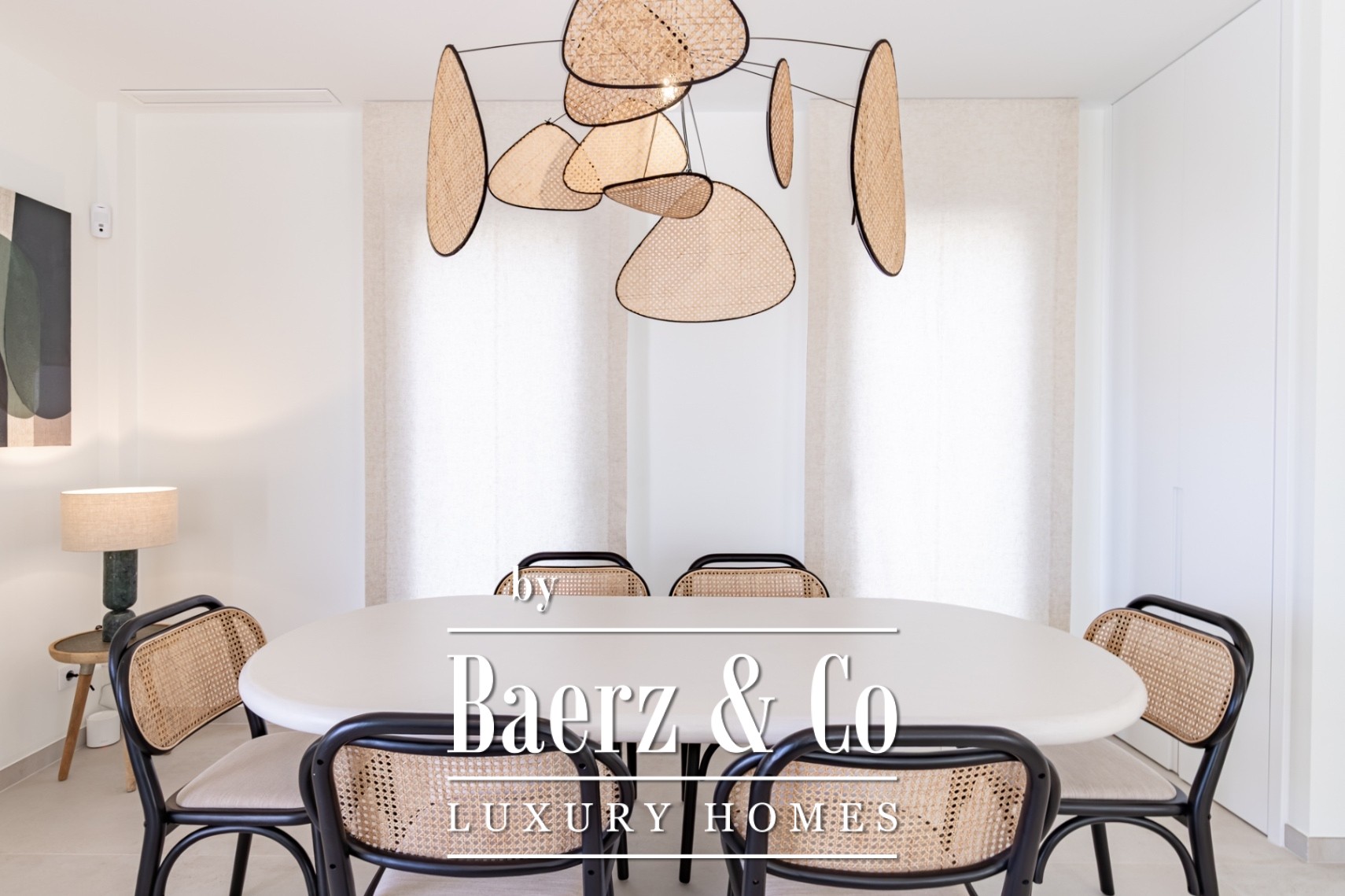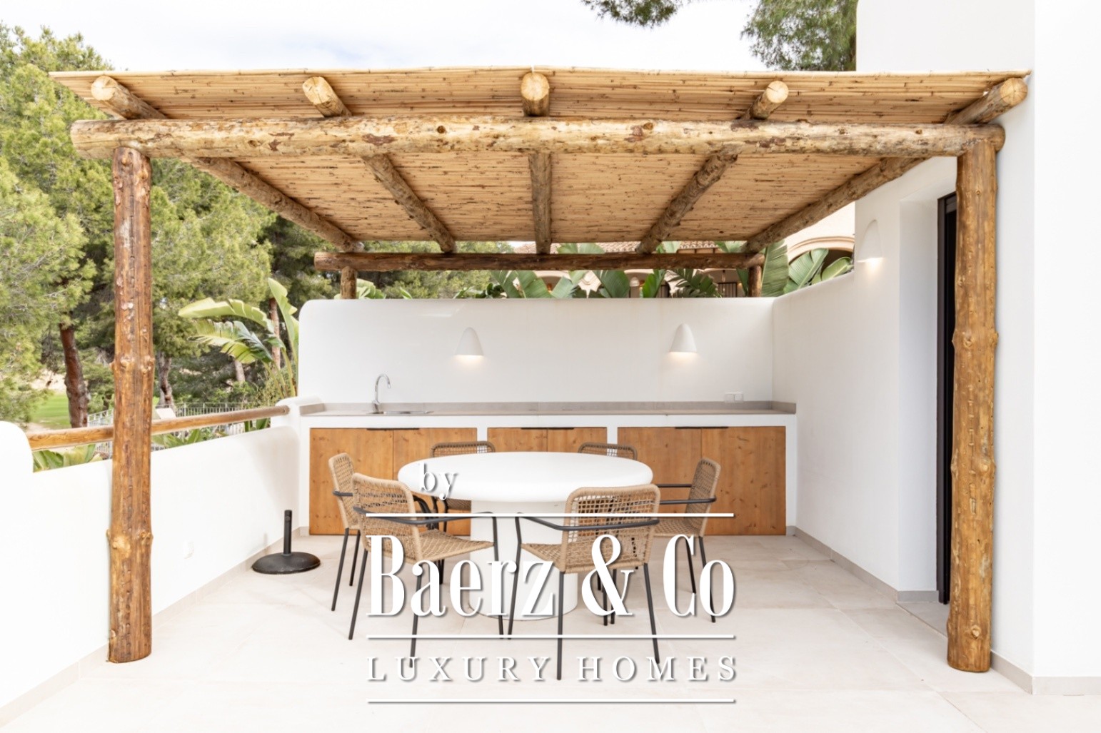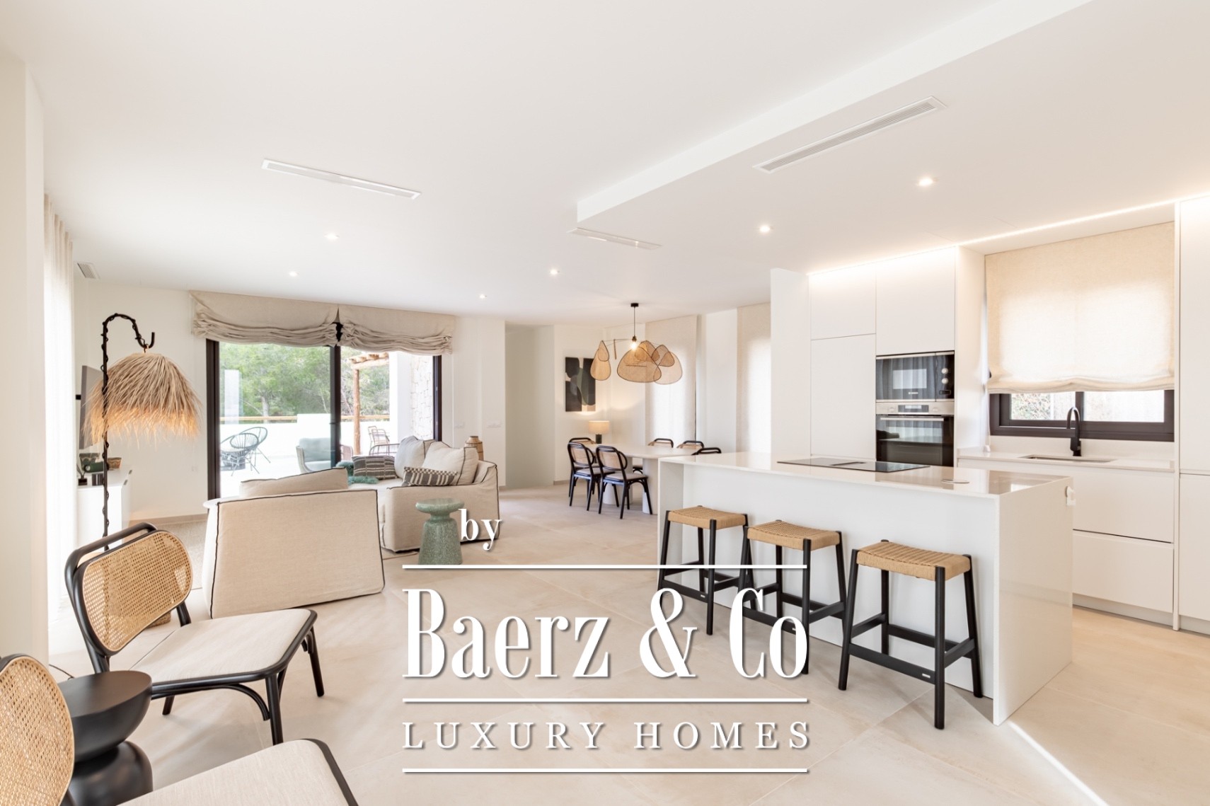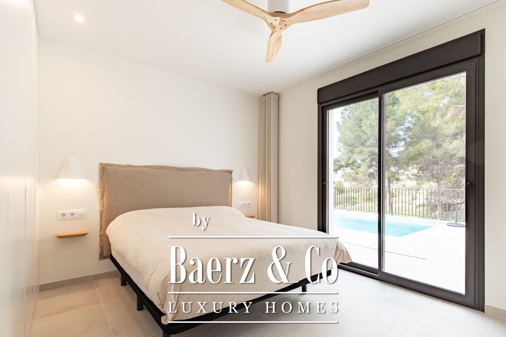 In de zeer gewilde wijk San Jaime (Benissa Costa), rustig gelegen en met zicht op de Club de Golf Ifach, bevindt zich deze prachtige vrijstaande nieuwbouwvilla (2025) in Ibiza-stijl. De woning werd afgewerkt met oog voor detail, waarbij natuursteen en warme houtelementen zorgen voor een tijdloze, mediterrane uitstraling. Een ideale combinatie van rust, comfort en nabijheid van alle faciliteiten.