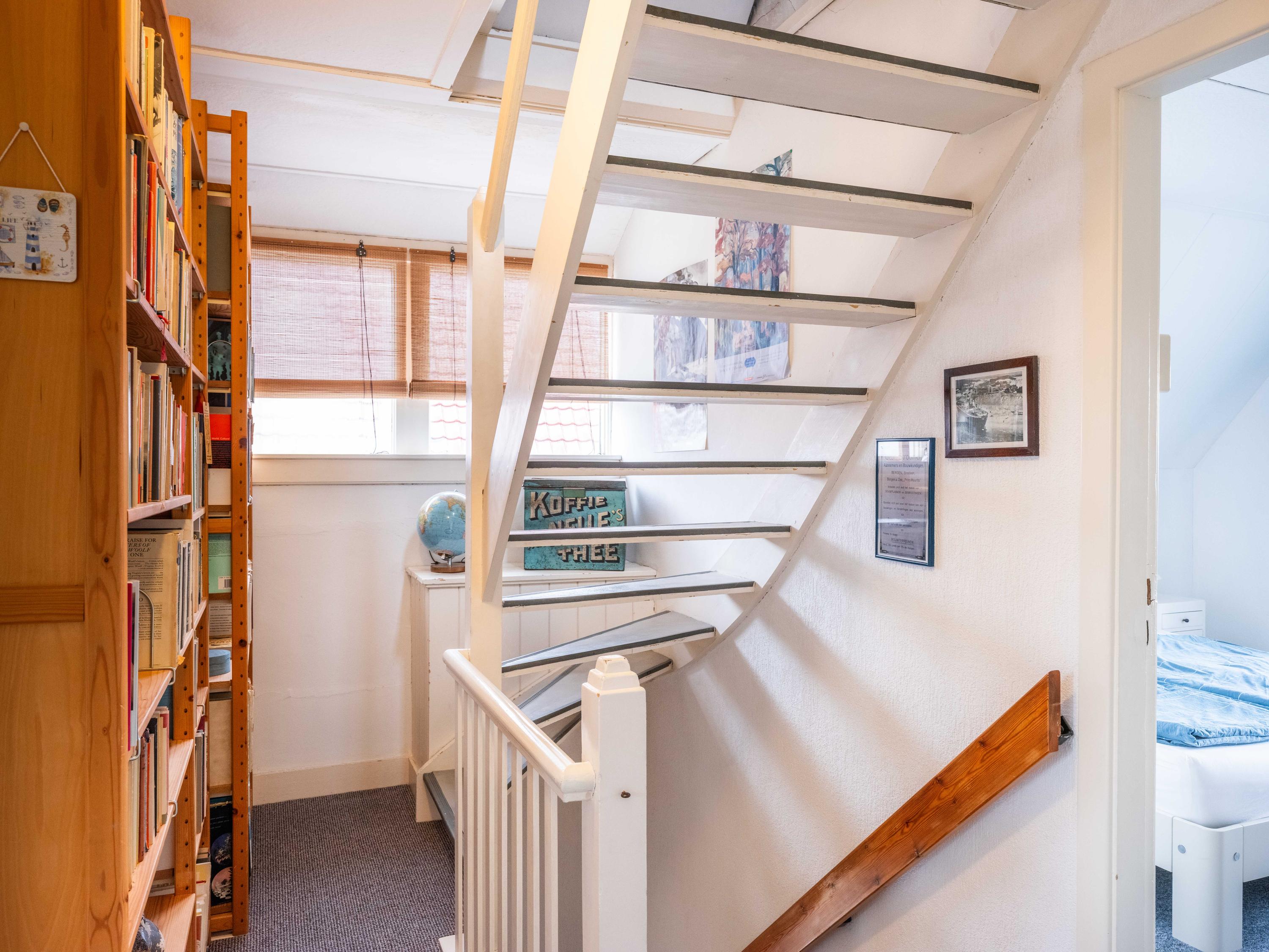 De zolderverdieping, bereikbaar via een vaste trap, biedt nog meer ruimte. Hier vindt u een royale overloop en twee kamers die uitstekend kunnen dienen als extra slaapkamers, hobbykamer of werkruimte. Er is veel bergruimte achter de knieschotten. Deze verdieping is niet verwarmd, wat u de vrijheid geeft om deze geheel naar eigen wens te moderniseren.