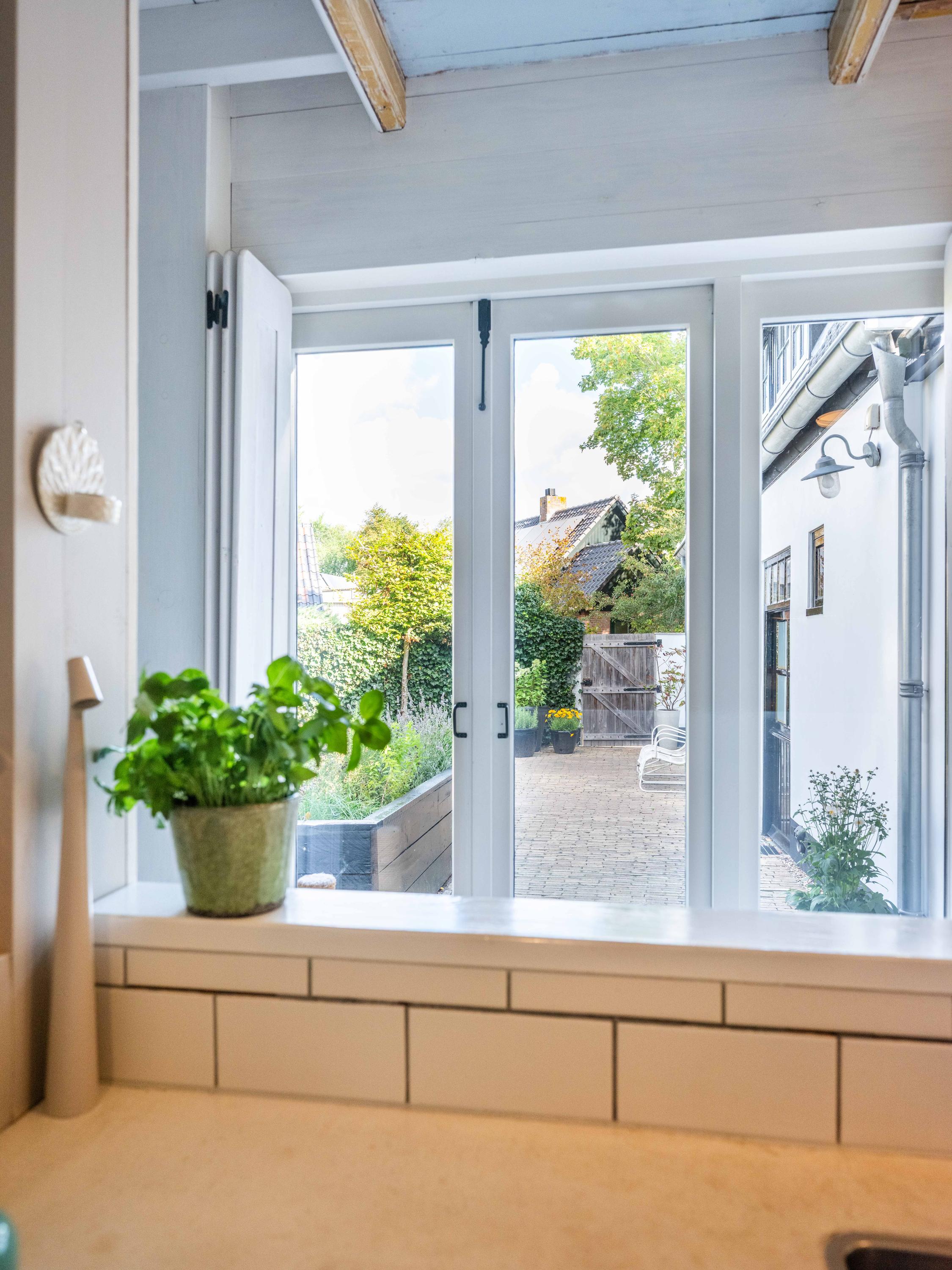Aan de andere zijde van de woning bevindt zich het voormalige atelier, thans in gebruik als bijhuis met keukentje en slaapgelegenheid. Met ca. 80 m² vloeroppervlak en een eigen toegang is dit een heerlijk lichte ruimte, ideaal te gebruiken als atelier, kantoor aan huis, praktijkruimte of bijvoorbeeld als kangoeroewoning of verblijf voor een au-pair.