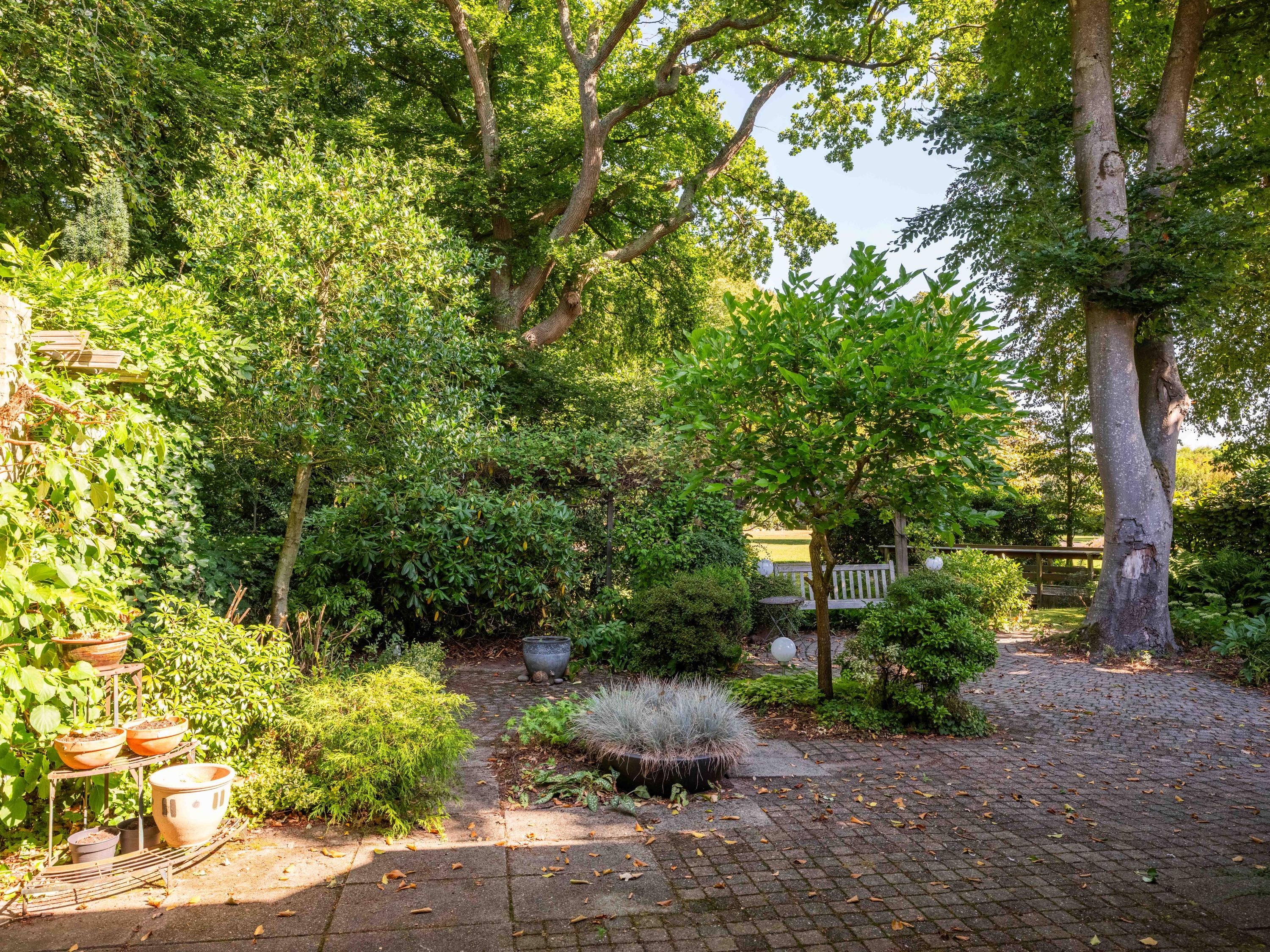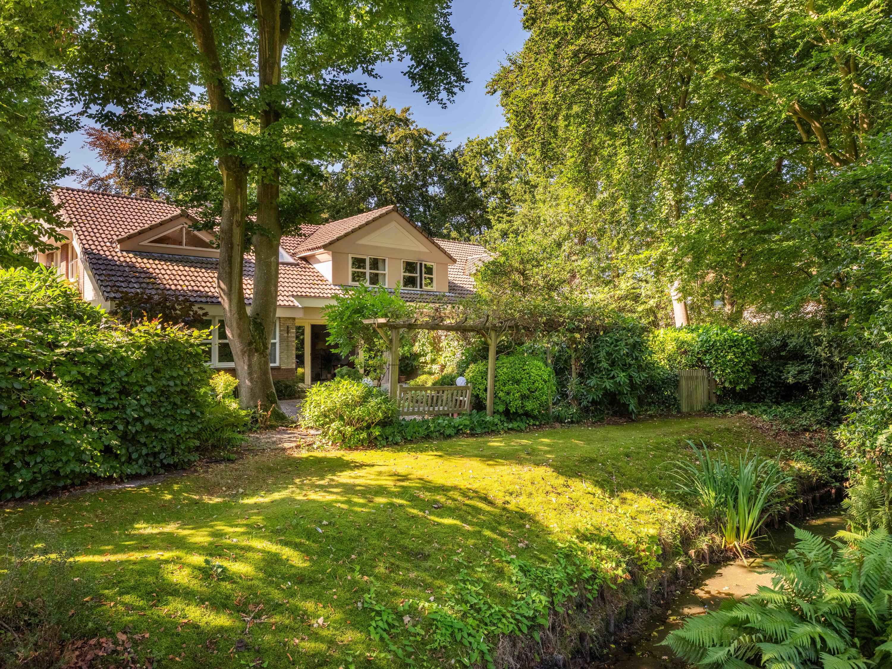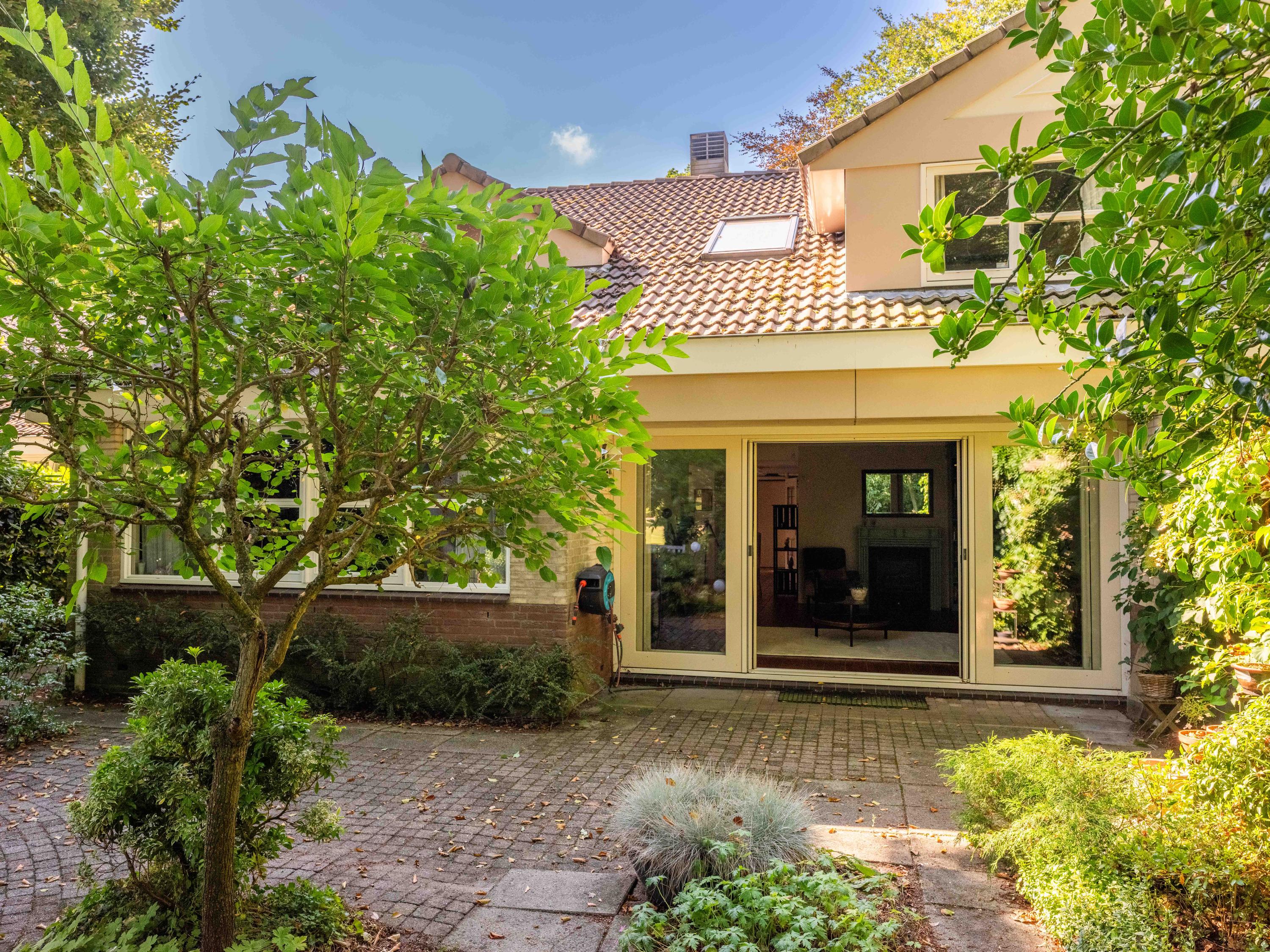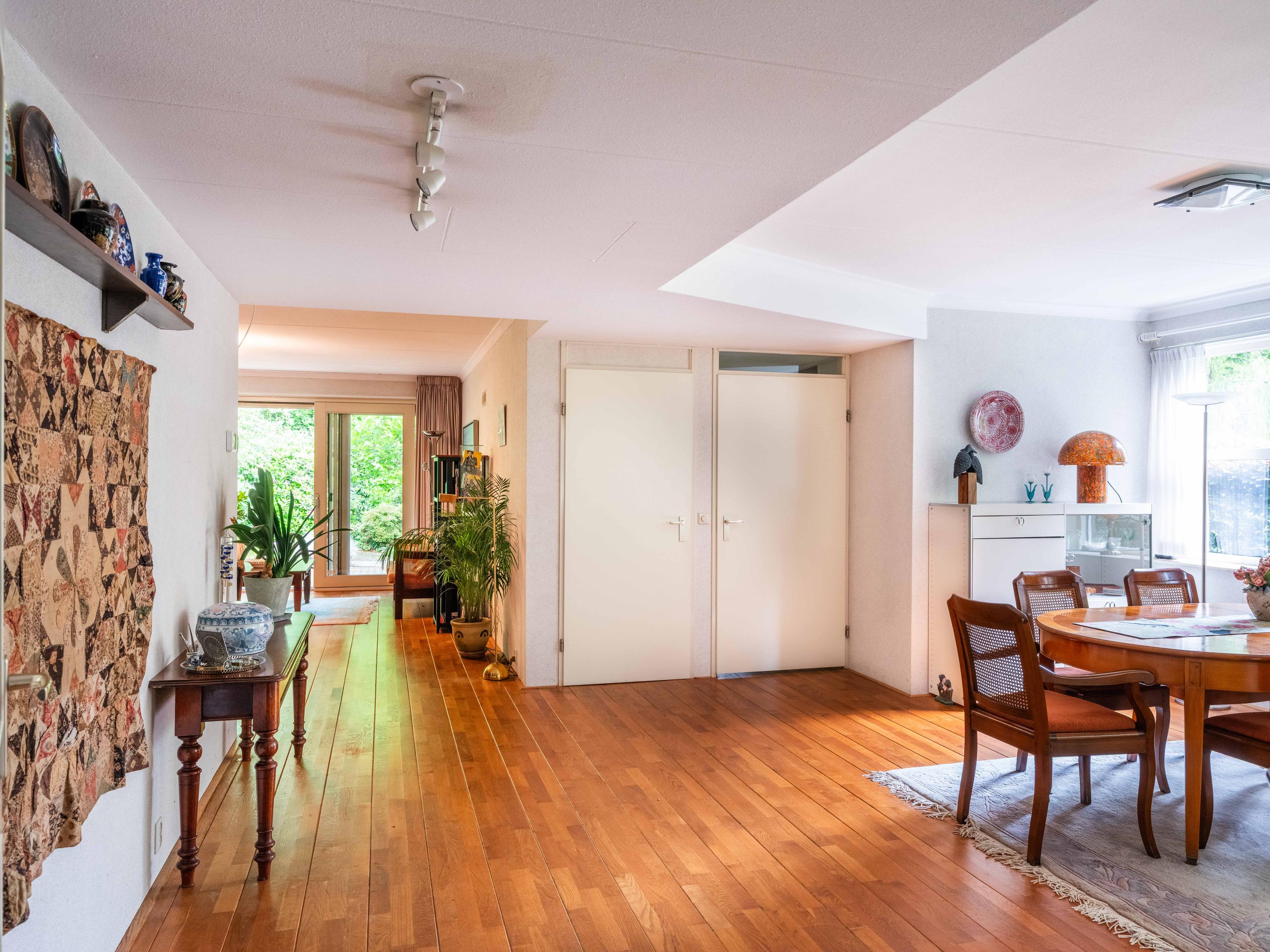 Via de grote schuifpui stapt u zo de zonnige, beschutte achtertuin in, een heerlijke plek om te genieten van rust en privacy, met een terras en uitzicht op de vijverpartij. De fraai aangelegde, zonnige tuin is een oase van rust en privacy. Het terras grenst aan het exclusieve, mandelige park met vijverpartijen – een unieke plek waar u volop kunt genieten van de natuur. Het park is uitsluitend toegankelijk voor omwonenden.