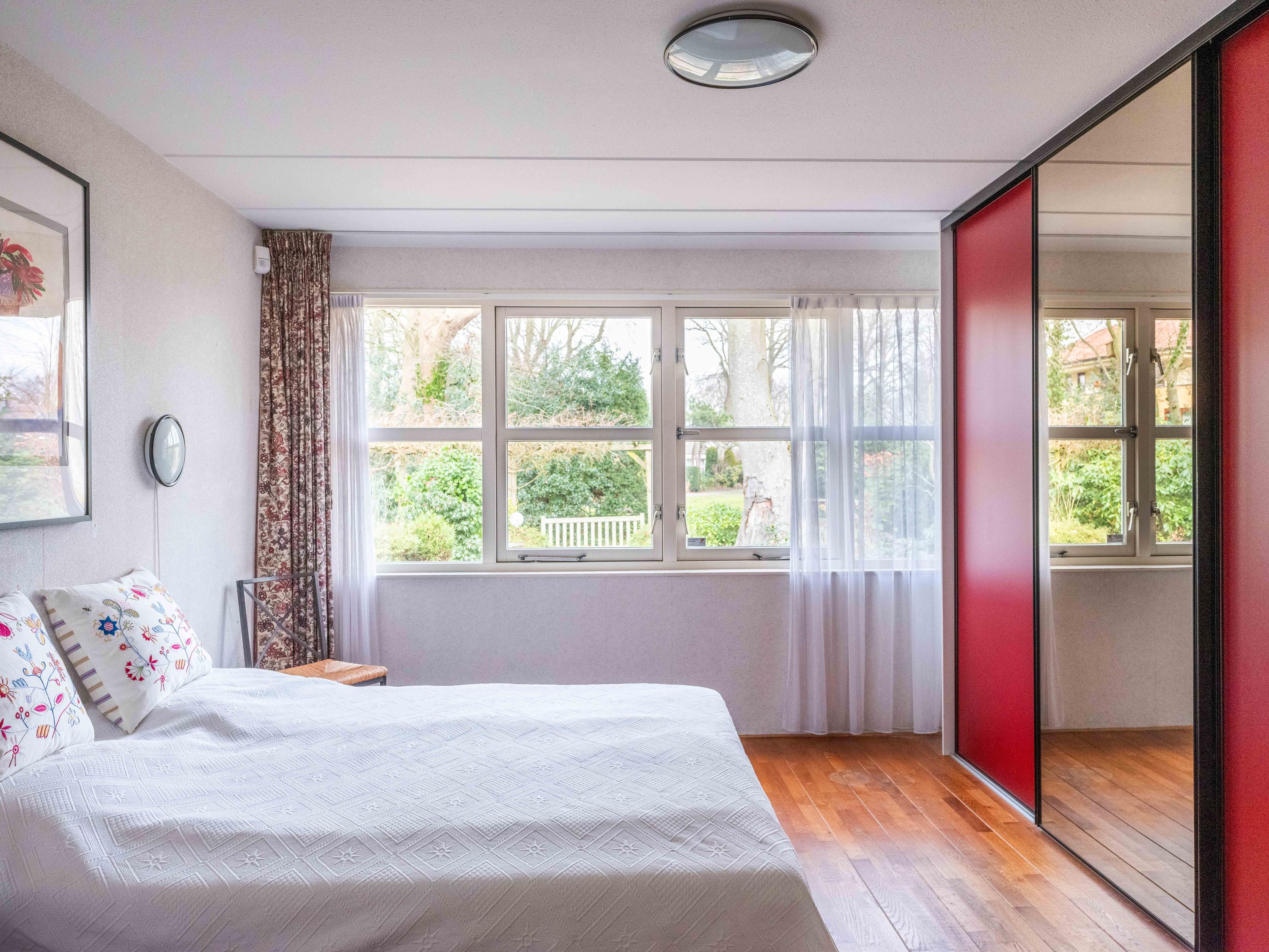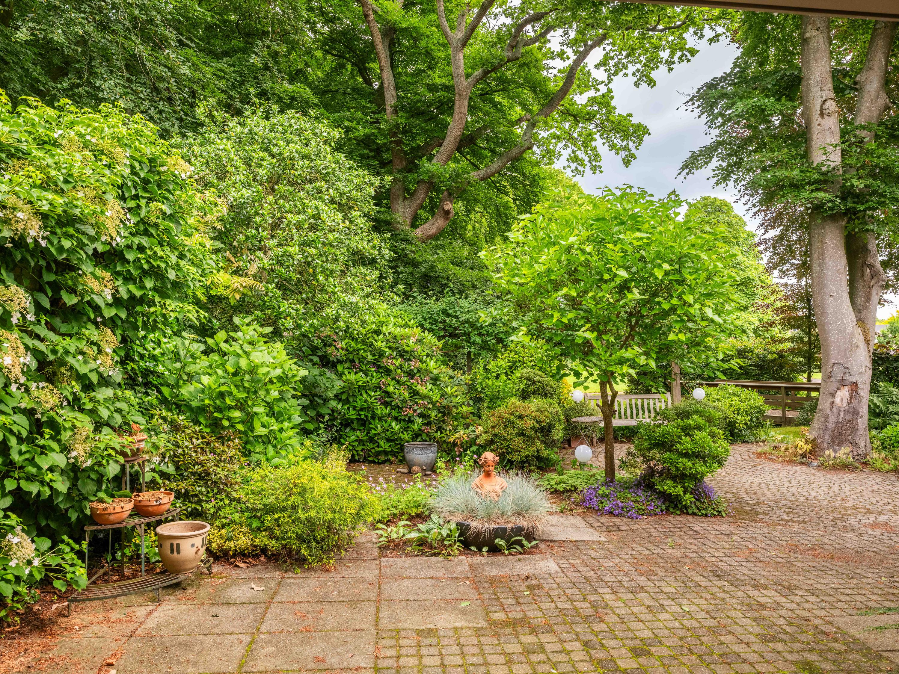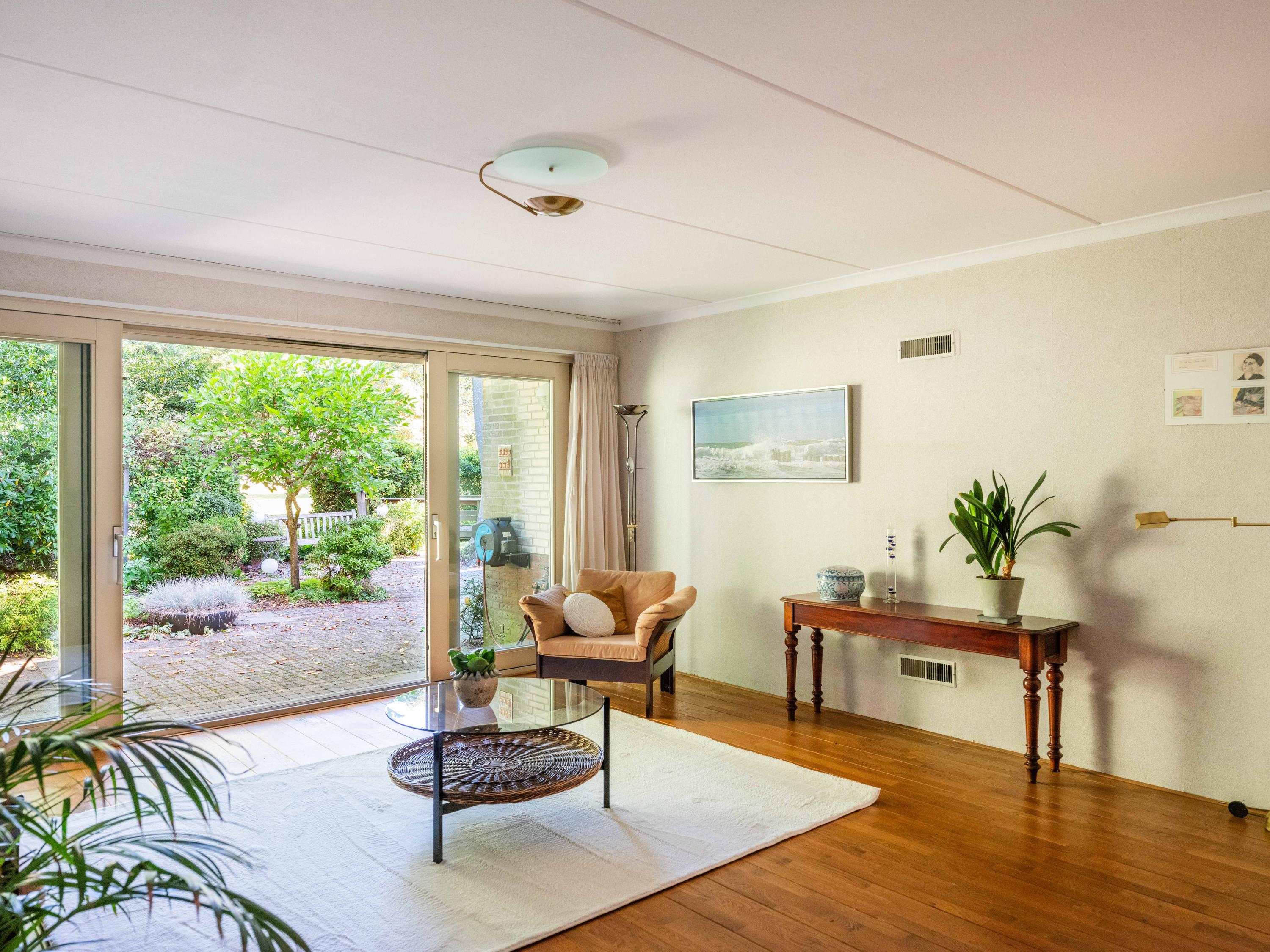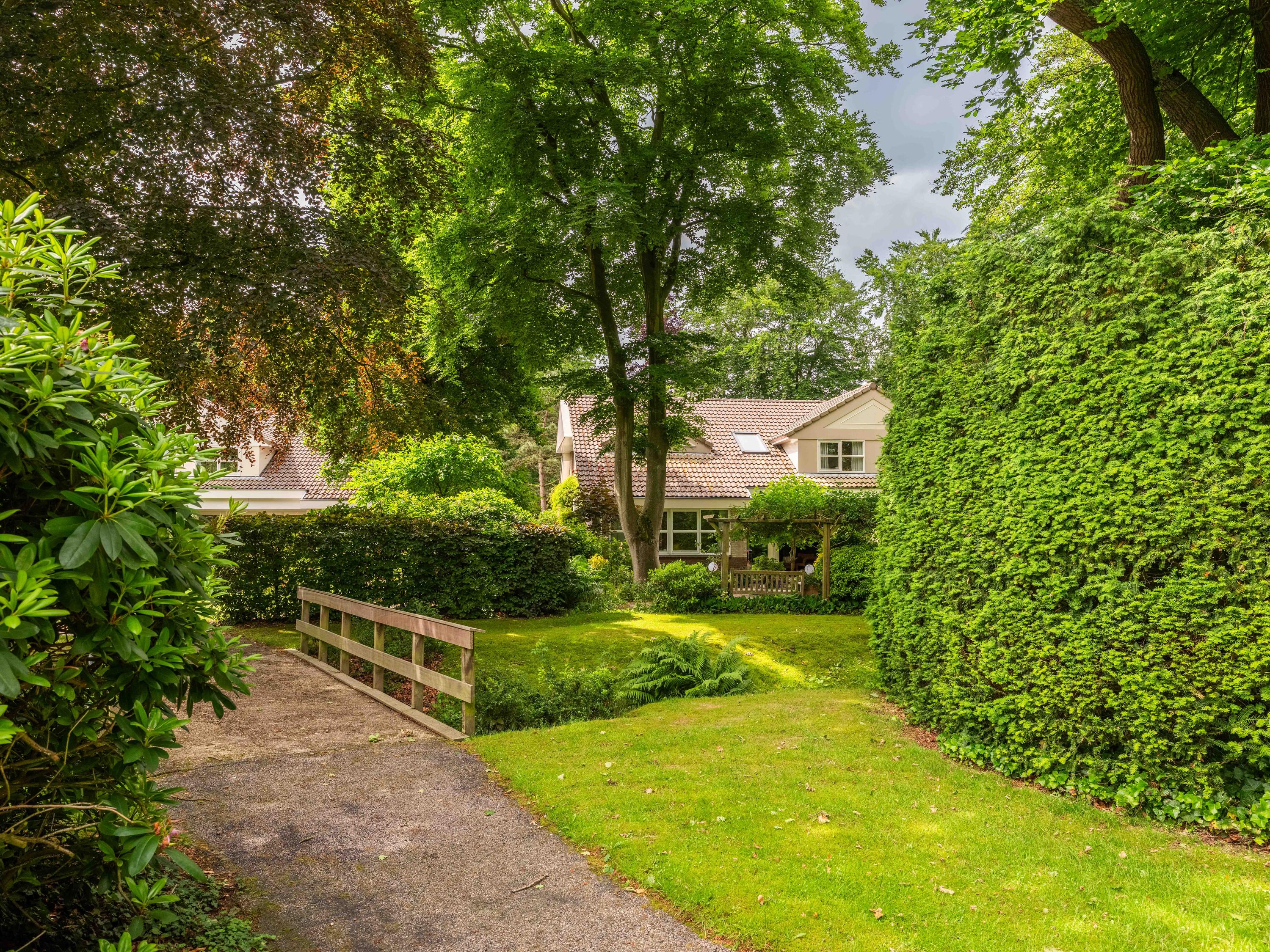 Via de grote schuifpui stapt u zo de zonnige, beschutte achtertuin in, een heerlijke plek om te genieten van rust en privacy, met een terras en uitzicht op de vijverpartij. De fraai aangelegde, zonnige tuin is een oase van rust en privacy. Het terras grenst aan het exclusieve, mandelige park met vijverpartijen – een unieke plek waar u volop kunt genieten van de natuur. Het park is uitsluitend toegankelijk voor omwonenden.