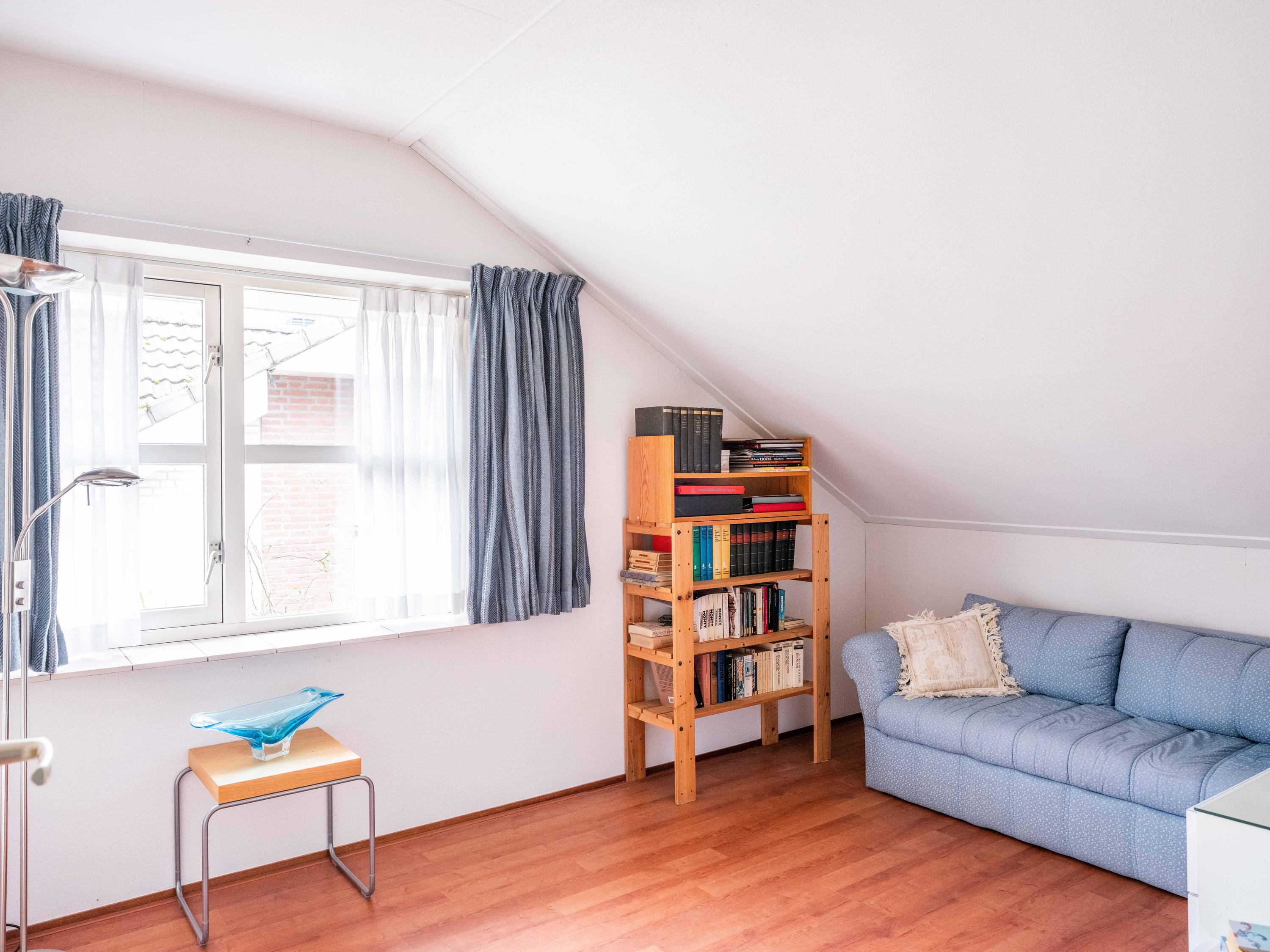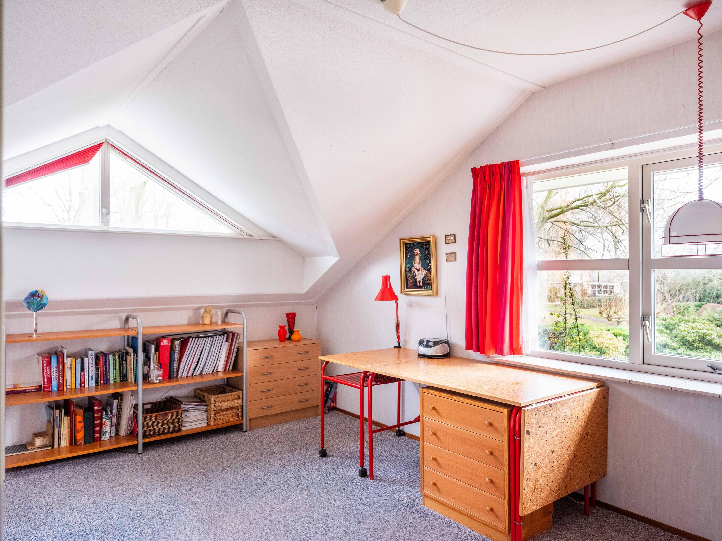 Op de begane grond vindt u verder een ruime kamer aan de tuinzijde, te gebruiken als kantoor, maar ook uitstekend geschikt als slaapkamer. De badkamer op de begane grond is voorzien van een ligbad met douche, dubbele wastafel en toilet.