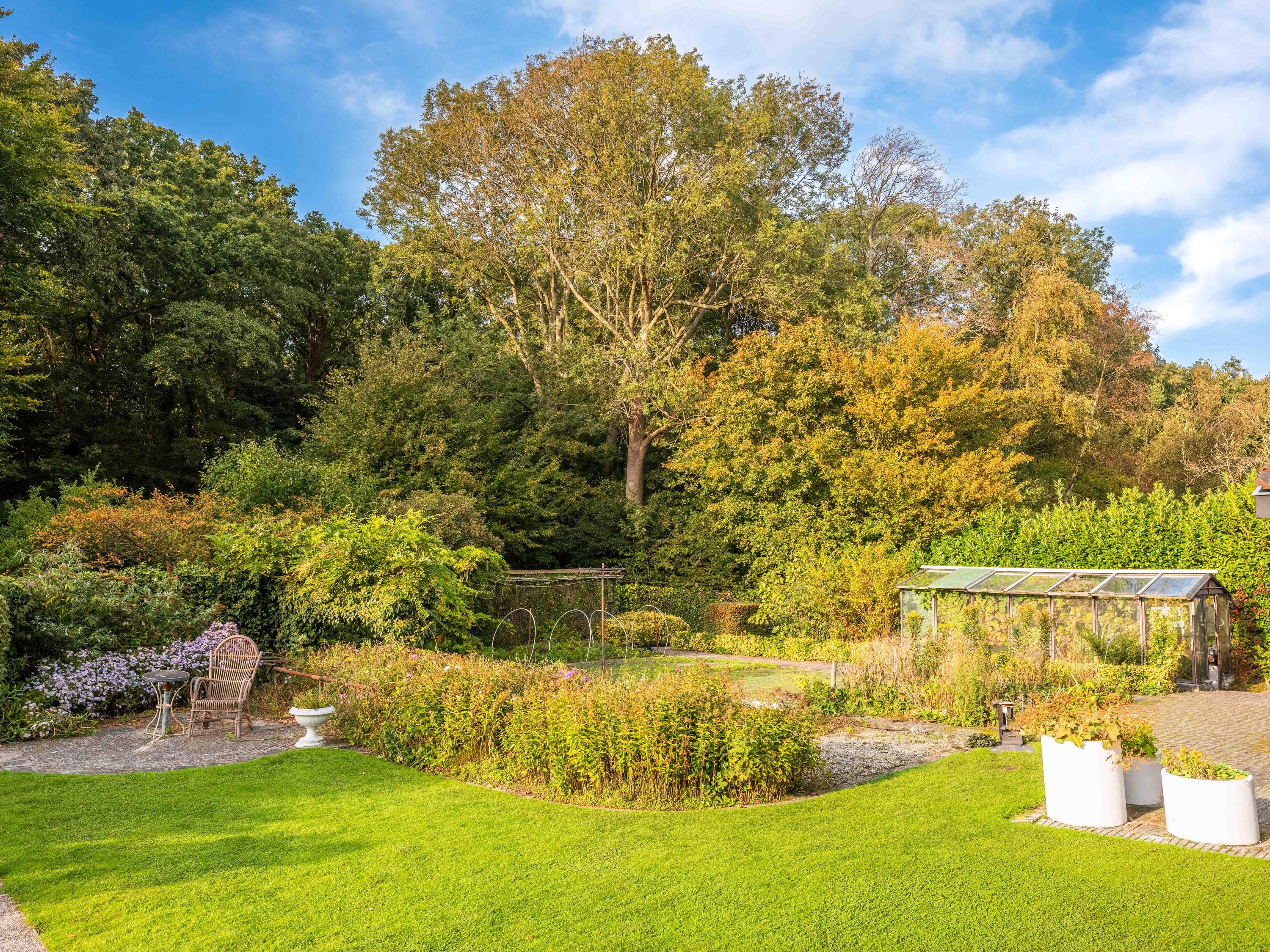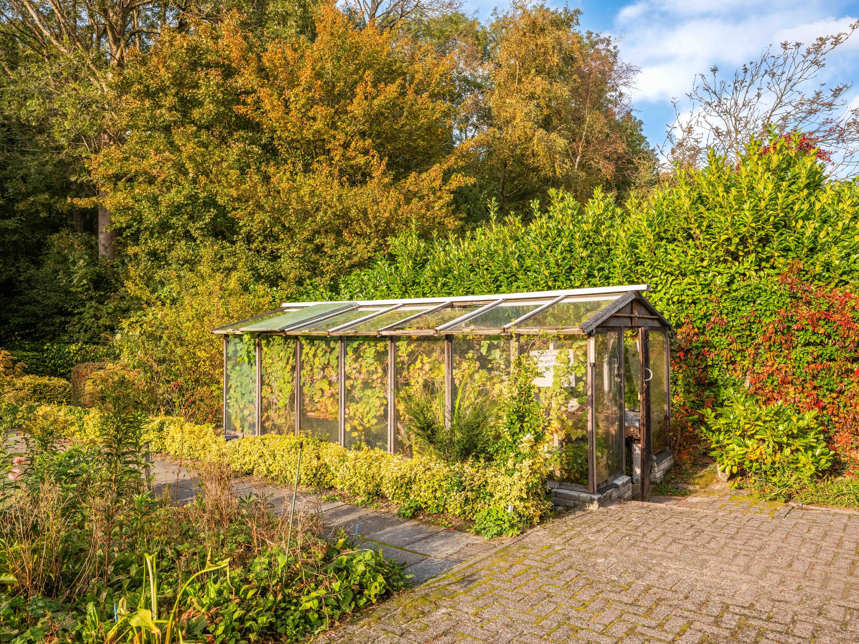 We noemen graag ook wat extra's. De grote aangebouwde garage is binnendoor bereikbaar en biedt ruim plaats aan fietsen, auto of andere zaken. De auto's kunnen ook eenvoudig op eigen terrein geparkeerd worden, ruimte genoeg. De tuin heeft diverse terrassen, en biedt volop zon en privacy. Daar is 43 jaar aan gewerkt om er een kleurrijk geheel van te maken. En er staat een kas bij! De tuin rondom biedt volop zon en privacy. Ten aanzien van duurzaamheid kunnen we meedelen dat er al sprake is van 8 zonnepanelen, muurisolatie en grotendeels dubbel glas (energielabel C). De aanwezige wijnkelder is ook nog een charmant extraatje.