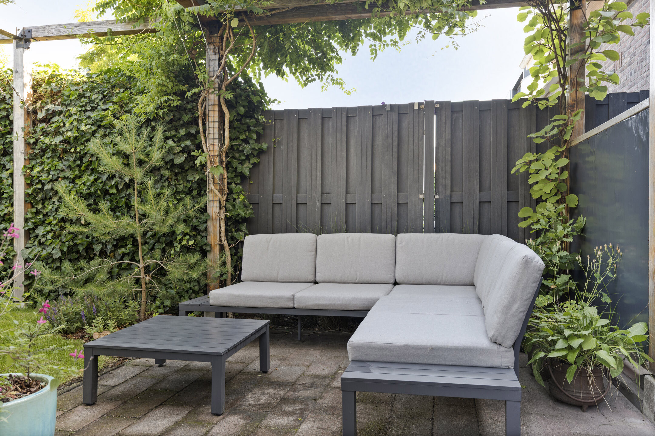 De fraai aangelegde achtertuin is gelegen op het noordwesten, ideaal voor middag- en avondzon.