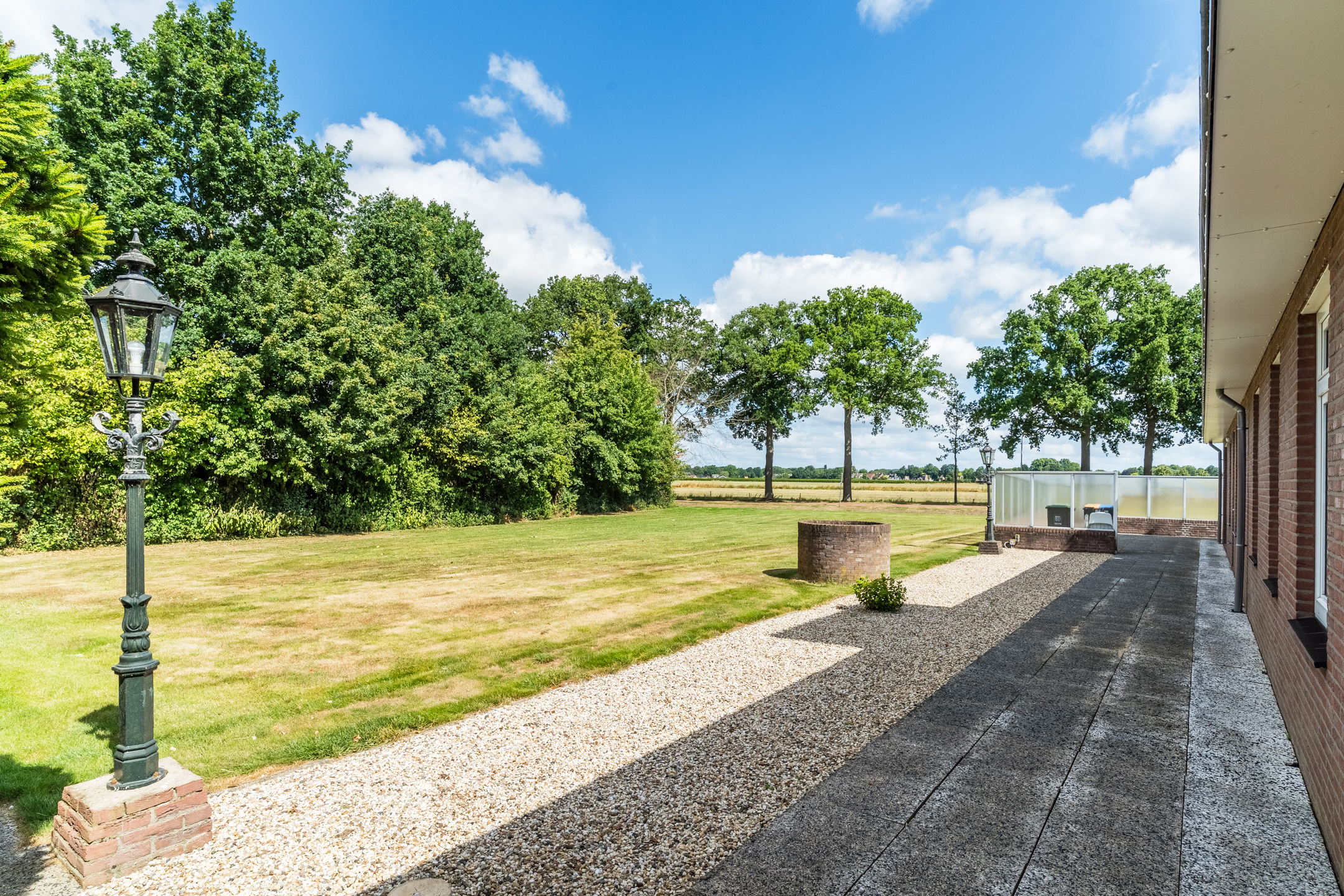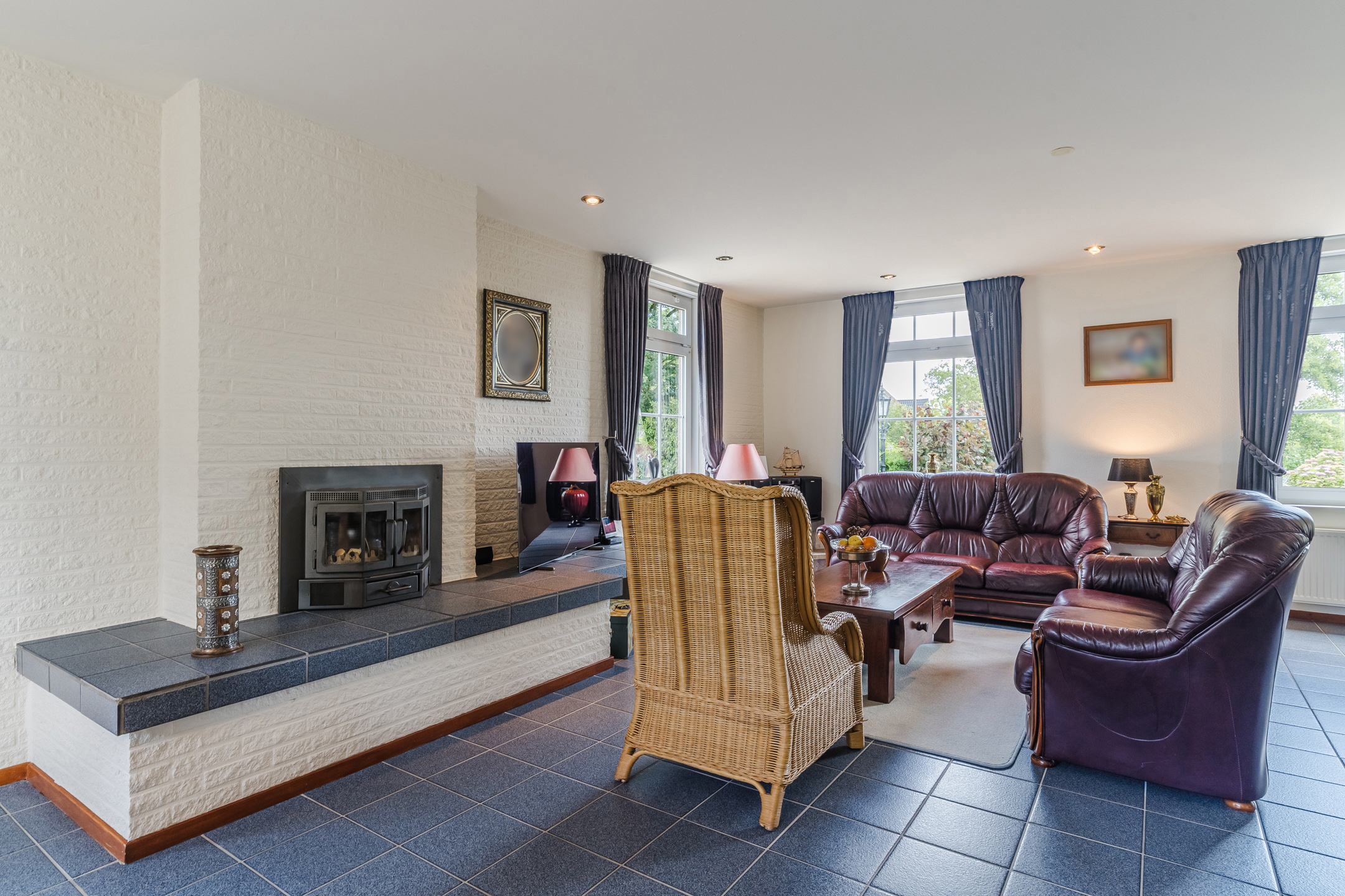 De indeling is royaal en praktisch opgezet, met onder andere zes volwaardige slaapkamers, meerdere badkamers, een inpandige garage, bijkeuken en een ruime bergzolder. De grote raampartijen laten veel daglicht binnen en bieden vanuit vrijwel iedere ruimte een prachtig uitzicht op de omliggende tuin en het groene landschap.