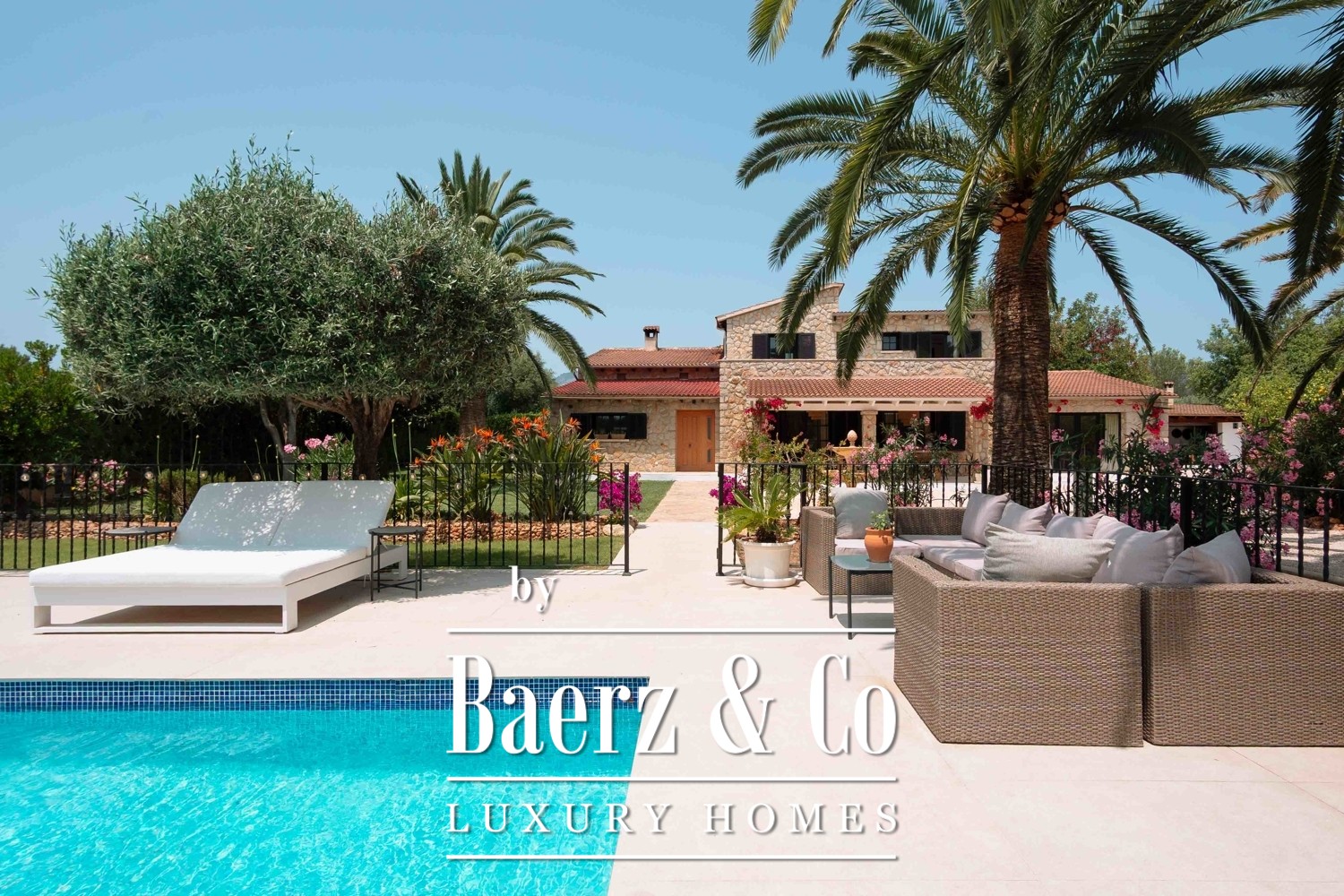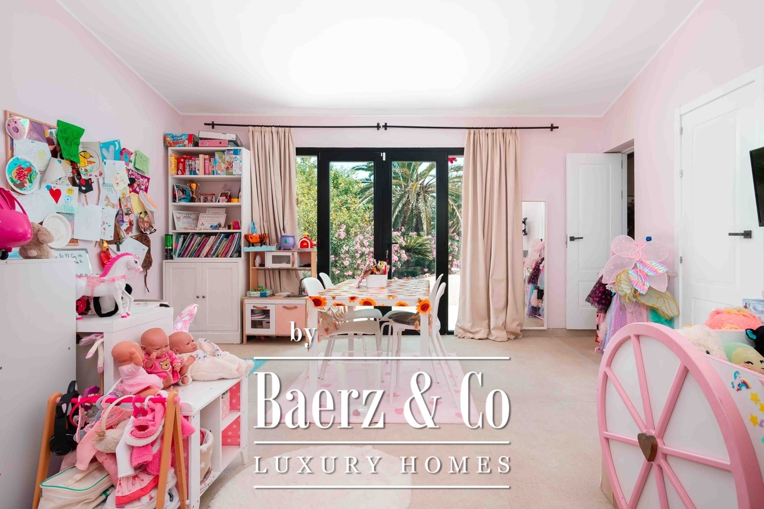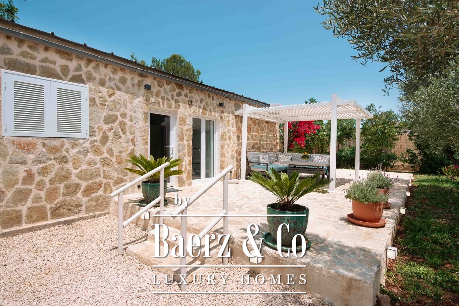 Het landgoed is gesitueerd op een perceel van 11.000 m² en biedt panoramisch uitzicht over de Tramuntana-bergen en een naadloze overgang tussen binnen en buiten. Mediterraan licht vult elke ruimte, terwijl de tuin uitnodigt tot ontspannen dagen aan het 12 × 6 m zoutwaterzwembad of avonden in de buitenkeuken met barbecue en pizzaoven. Weelderige tuinen met twaalf soorten fruitbomen en een geautomatiseerd irrigatiesysteem omsluiten de terrassen, wat een sfeer van gecultiveerde rust creëert.