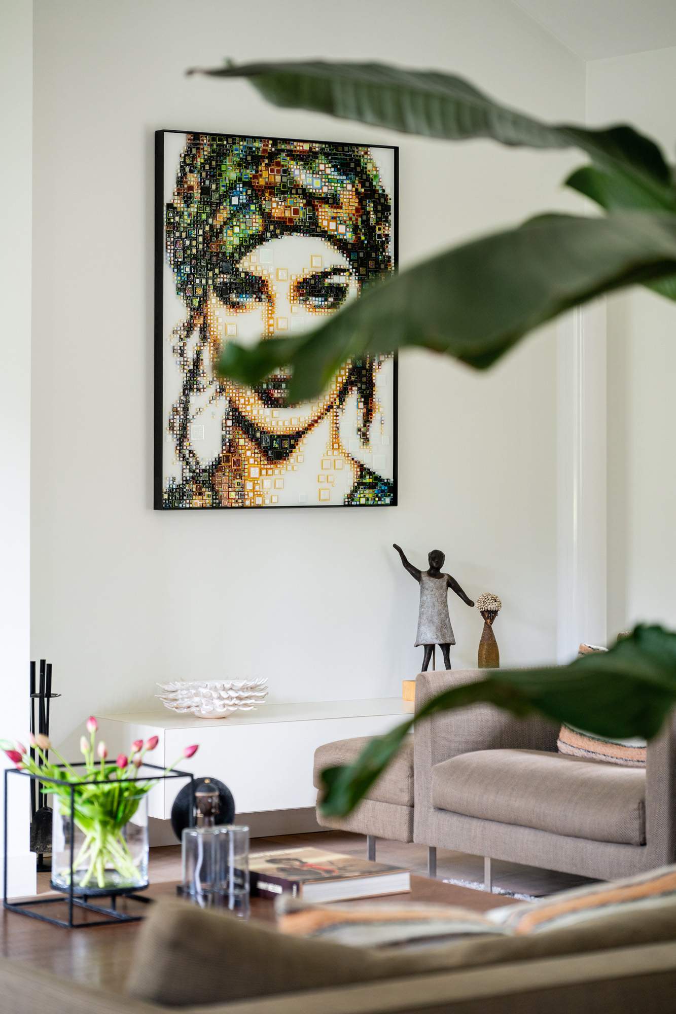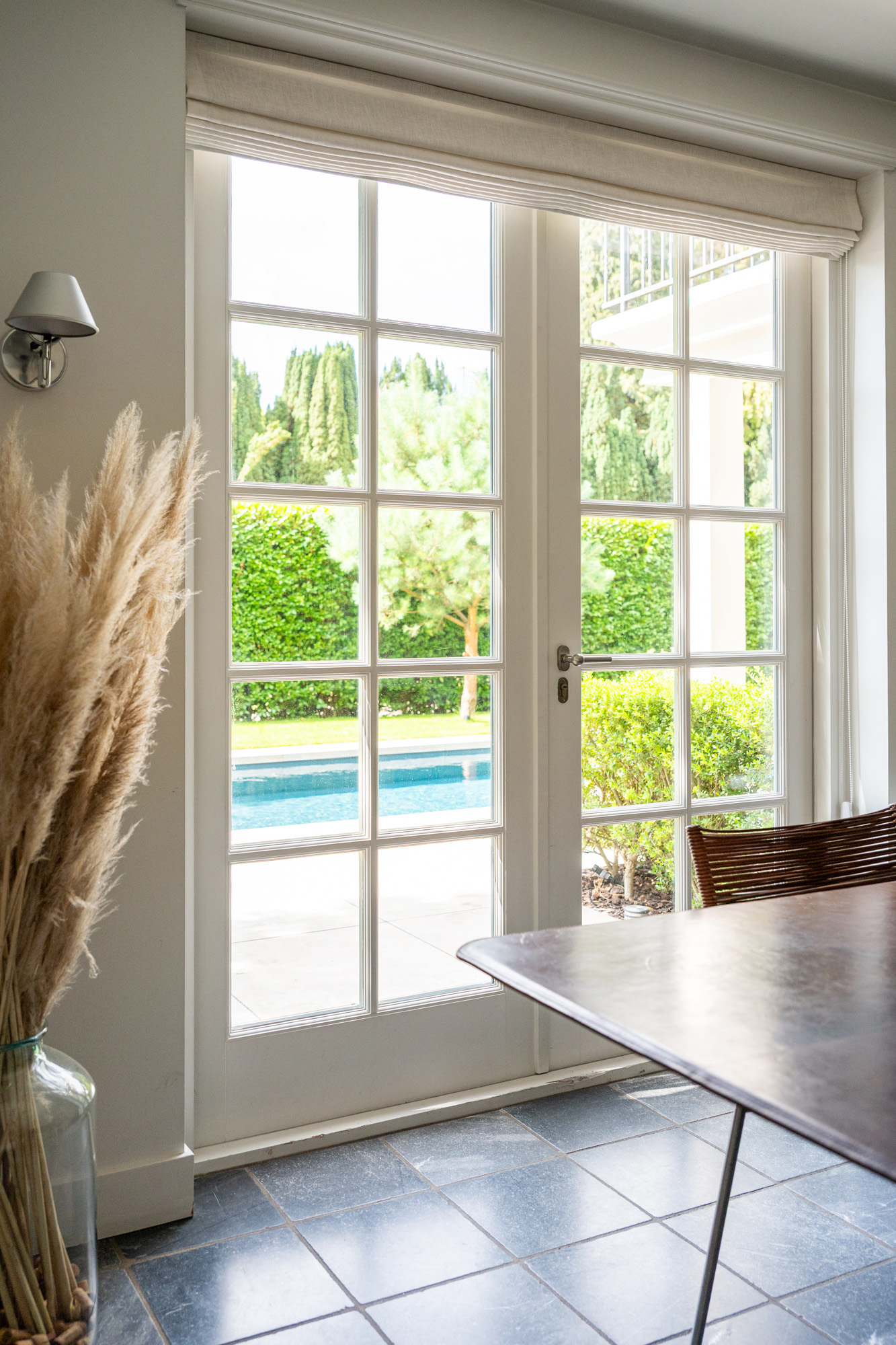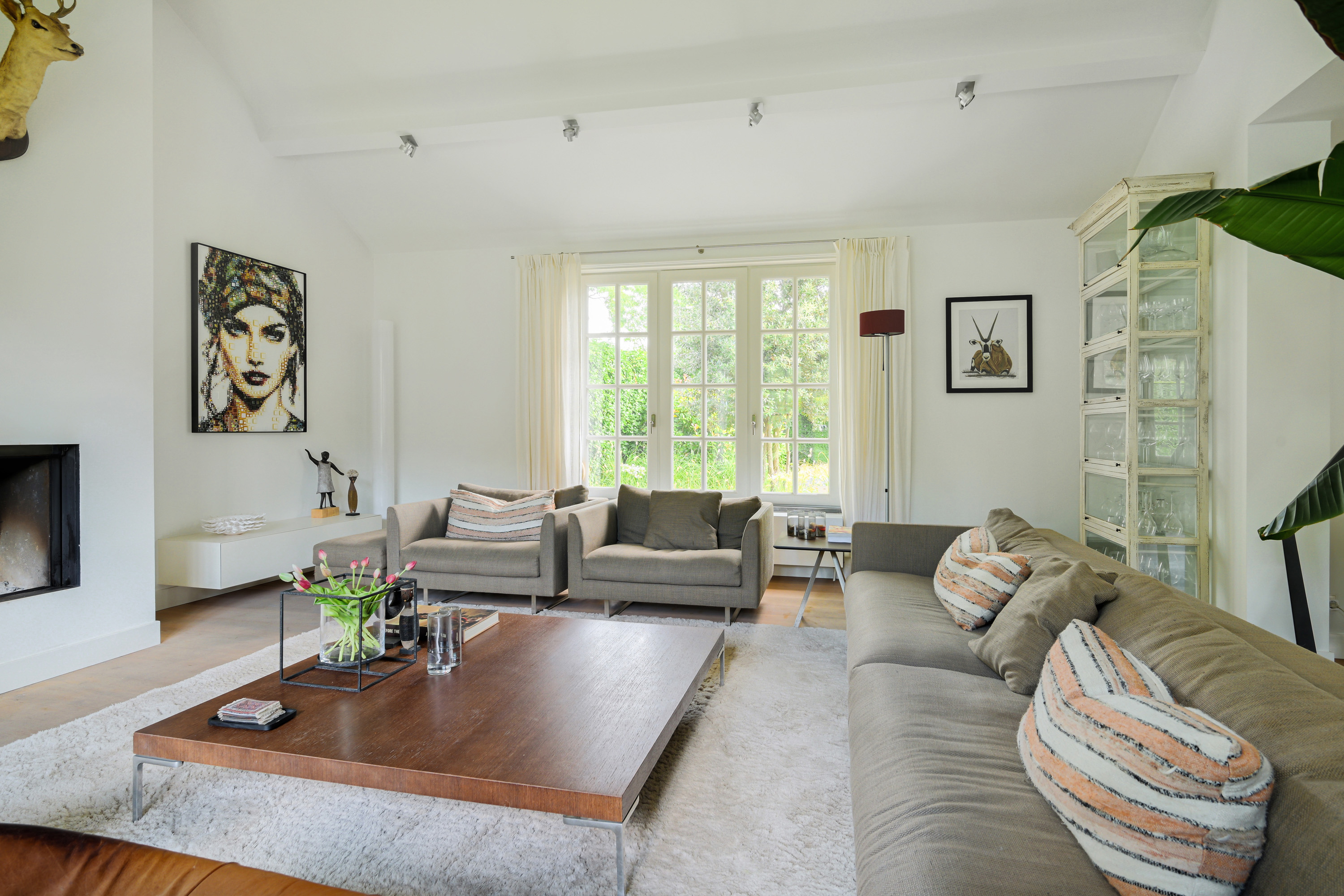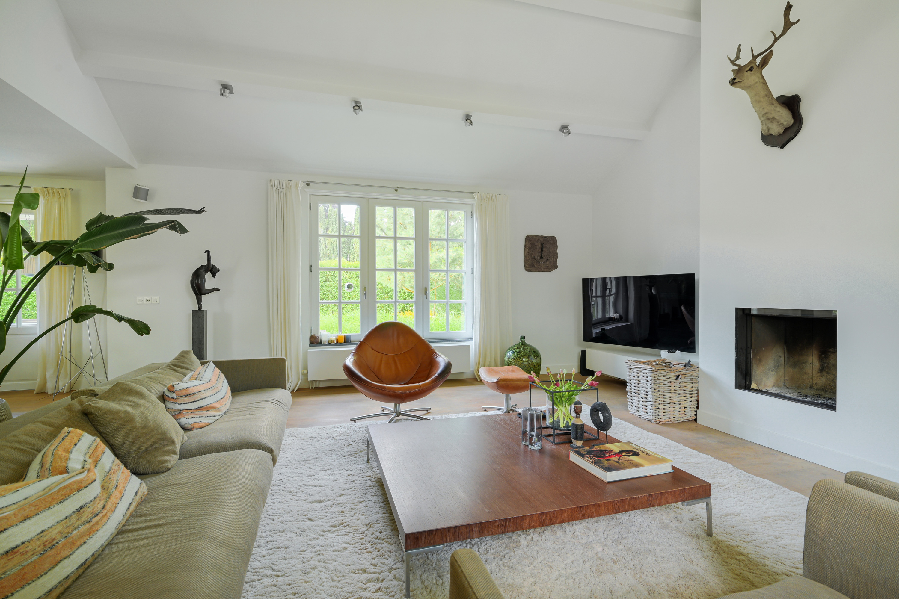 kastruimte en een in een meubel geïntegreerde gashaard. Openslaande deuren verbinden deze kamer met de tuin.
