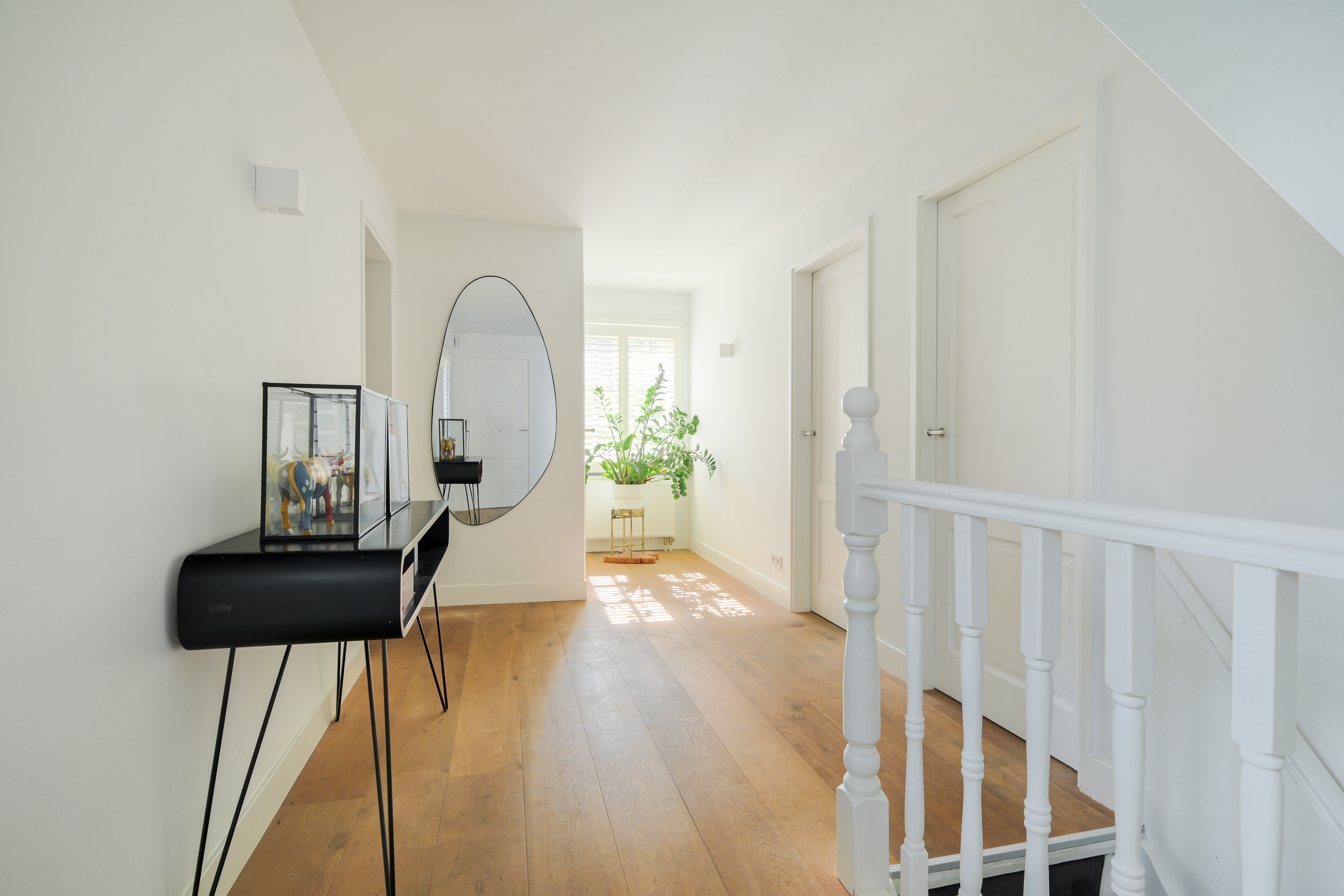 • De eerste en tweede verdieping zijn geheel voorzien van brede houten vloerdelen, op de begane grond zijn de hal, keuken en eetkamer voorzien van natuursteen, de woonkamer van brede houten vloerdelen.