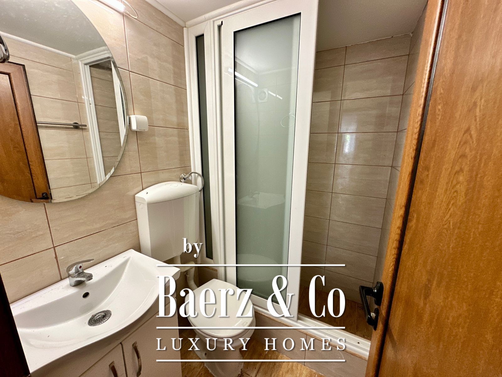 The house has 3 levels and on each one is an apartment of 50m2. The entrance of the house is from the 1st floor. The façade of the house is made out of stone. There are 2 parking spots in front of the house. It is connected by an asphalt road to the main road.