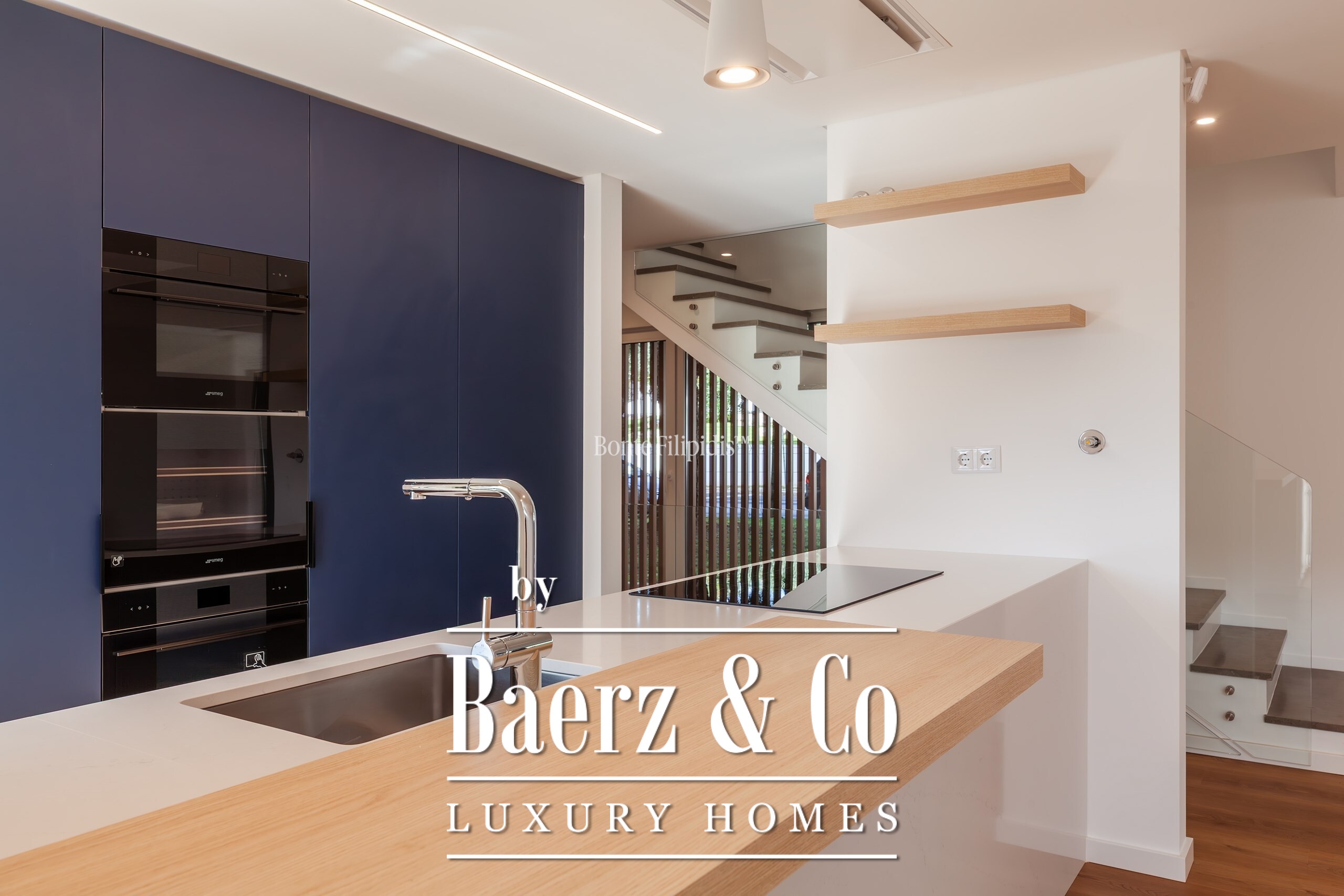 Op de begane grond verbindt een open keuken met hoogwaardige inbouwapparatuur zich met de woonkamer, ideaal voor samenkomsten of rustige avonden. Directe toegang tot het exterieur vergroot de lichtinval en het gevoel van verbondenheid, terwijl een suite op deze verdieping voor flexibiliteit zorgt. Op de eerste verdieping vindt u een serene master suite met inloopkast, verder twee extra slaapkamers en een luxe badkamer, alle met veel natuurlijk licht en hoogwaardige afwerking.
