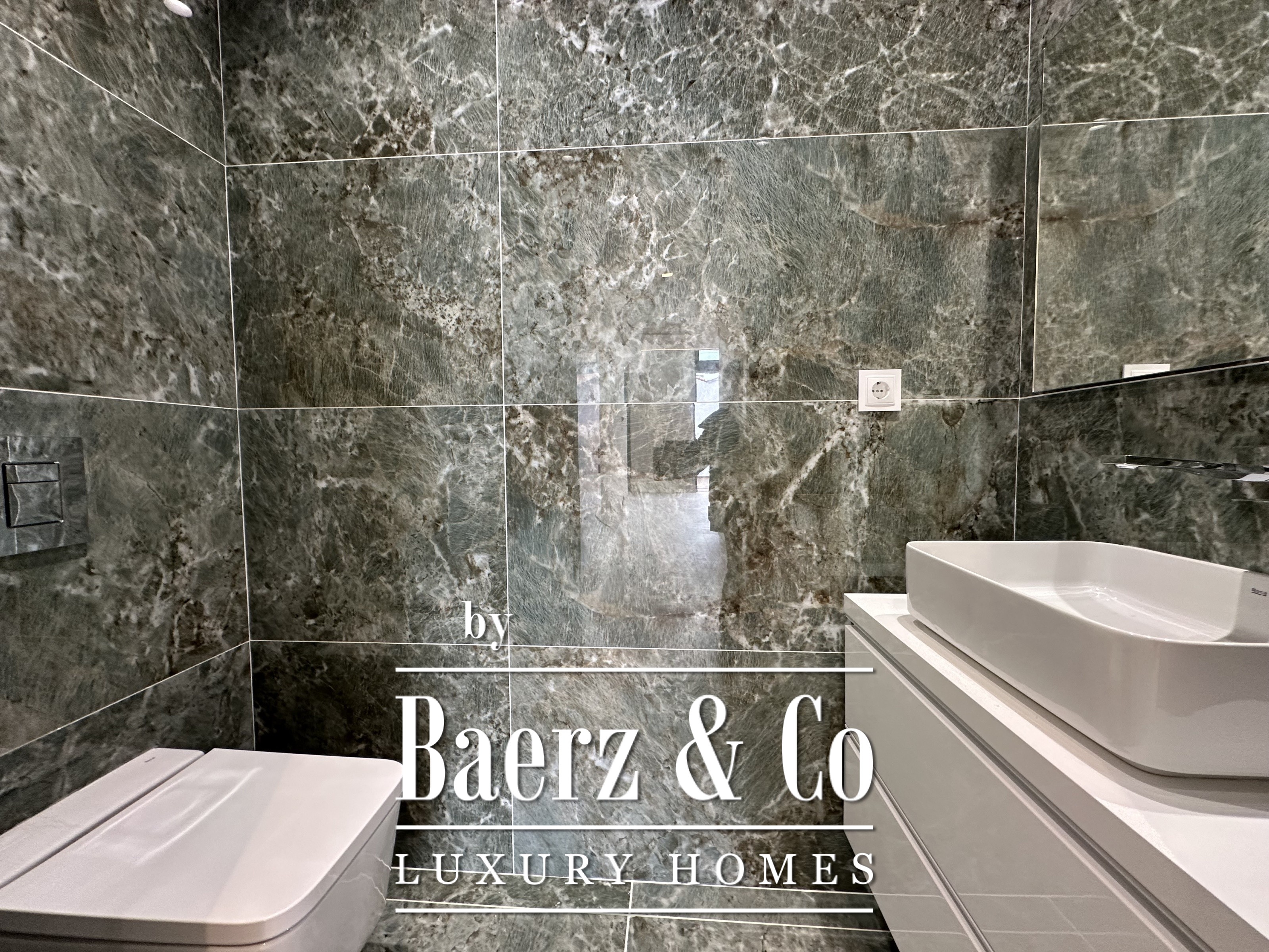 Buiten wordt de 124 m² grote privéterras omgeven door weelderige tuinen met fruitbomen en een eigen zwembad, waardoor een serene groene oase ontstaat. Het huis is volledig voorzien van geavanceerde smart home technologie, toepasbaar op zowel tuin als woning voor optimale efficiëntie en gebruiksgemak. De villa beschikt tevens over een garage van 72 m², een wasruimte en extra technische ruimtes voor het hoogste comfort.