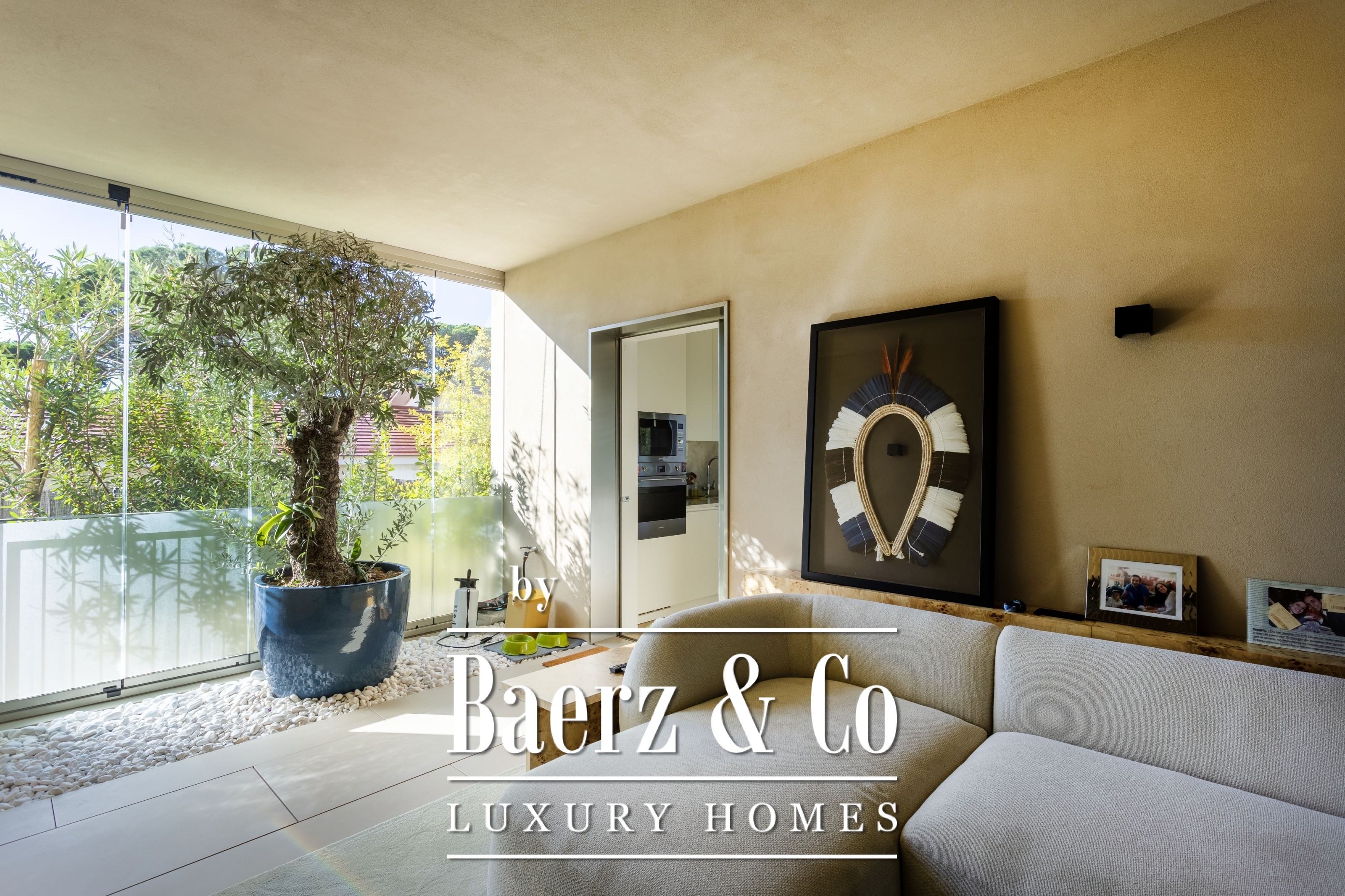 Appartement Cascais verenigt architectuur en rust in het Marinha Prime Condominium, waar design en privacy samenkomen. Deze driekamerwoning met een bruto privéoppervlak van 182 m² biedt een harmonieuze overgang tussen het binnenleven en een fraai aangelegde tuin van 400 m². Iedere slaapkamer is een suite, allen voorzien van inbouwkasten, badkamers met vloerverwarming en rustgevend uitzicht op de tuin. De woon- en eetkamer komen uit op het terras van 33 m² dat direct toegang geeft tot een privé verwarmd zwembad. De volledig uitgeruste keuken grenst aan een afgesloten balkon; een aparte werkkamer, tv-ruimte en wasruimte maken het dagelijks wonen compleet. Volledige airconditioning zorgt voor comfort in elk seizoen.