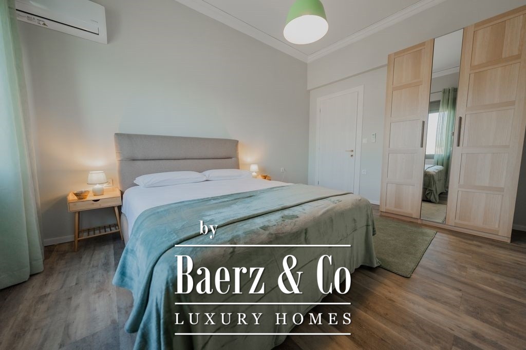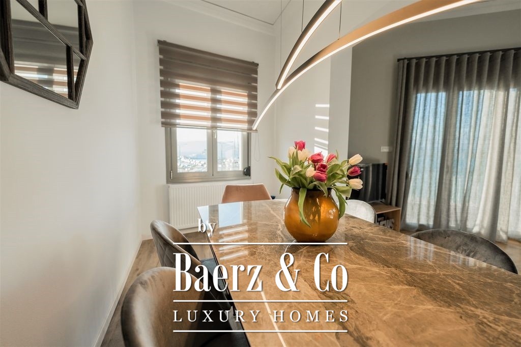 Het appartement is zorgvuldig en volledig gerenoveerd, waarbij hedendaags design wordt gecombineerd met hoogwaardige materialen. De woon- en eetkamer verbreden naar het balkon aan de waterzijde, waardoor natuurlijk licht binnenvalt en dagelijks het uitzicht op de Egeïsche Zee en de zonsondergang wordt omlijst. De aparte, volledig uitgeruste keuken biedt privacy en praktisch comfort, terwijl alle drie de slaapkamers voorzien zijn van royale inbouwkasten en een veilige kluis. Twee badkamers zijn gericht op comfort en helderheid, met moderne afwerkingen die de kwaliteitsbeleving versterken.