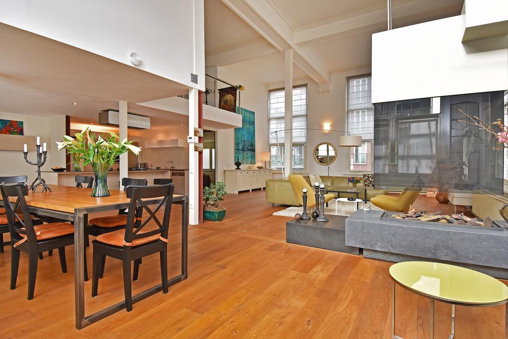 Het appartement is gelegen op de eerste verdieping en heeft twee woonlagen in een monumentaal complex dat is voorzien van een lift. Het appartement combineert de sfeer van een loft met de ruimte van een herenhuis.
