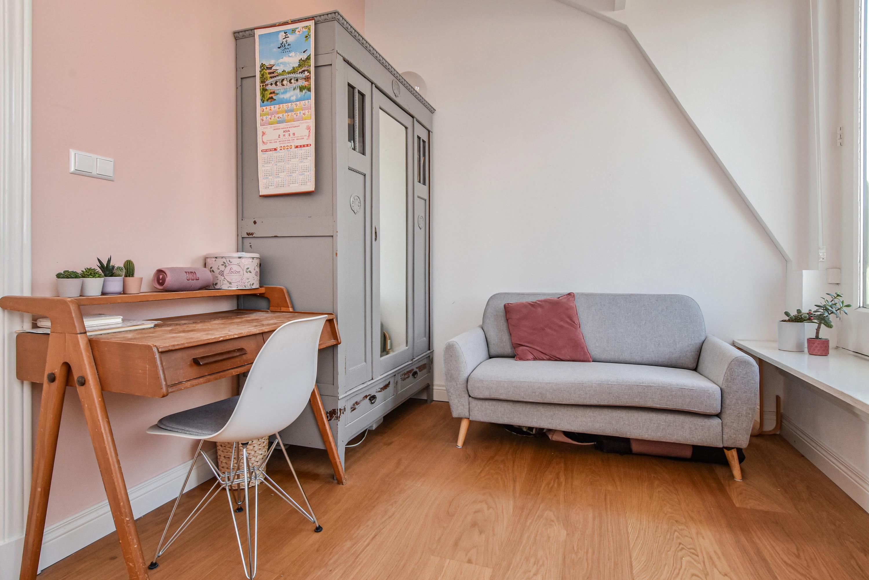Aan weerszijden van de keuken bevinden zich twee sfeervolle leefruimtes: aan de ene kant een zitkamer en aan de andere kant een knusse woonkamer met een gezellige zithoek. Aangrenzend bevindt zich de inpandige studio, eveneens met een fraaie hoogte en openslaande deuren naar de straat. Deze ruimte is ingericht als slaapkamer met een eigen badkamer voorzien van inloopdouche, dubbele wastafel en toilet — ideaal als gastenverblijf, aanleunwoning, kantoor of praktijkruimte aan huis. Aan de achterzijde is een grote, praktische fietsenberging met vliering. Deze heeft toegang via de Broerhuisstraat. Vanuit de woonkamer leidt een rechte trap naar de eerste verdieping.