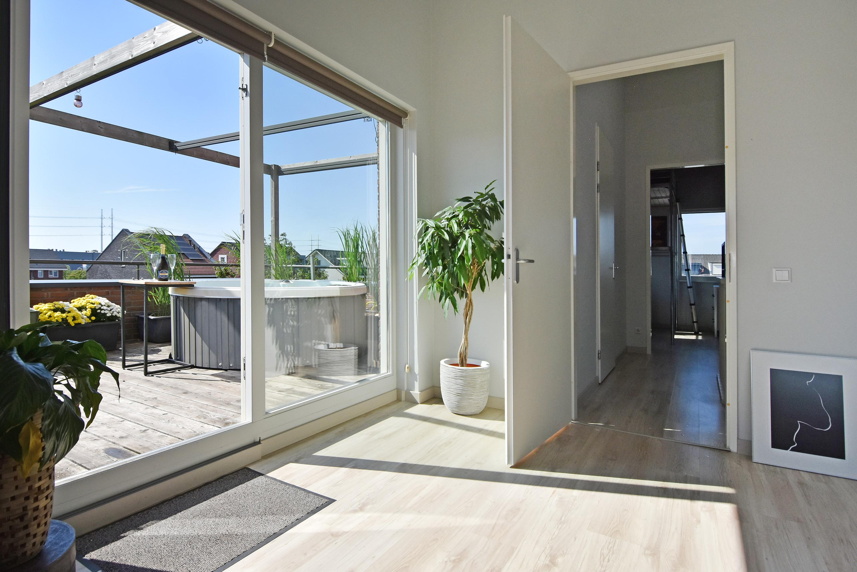 Er is bovendien een royaal dakterras op het zuidwesten, waar je de hele dag door van de zon kunt genieten met volop privacy en de huidige eigenaar heeft hier een jacuzzi.
