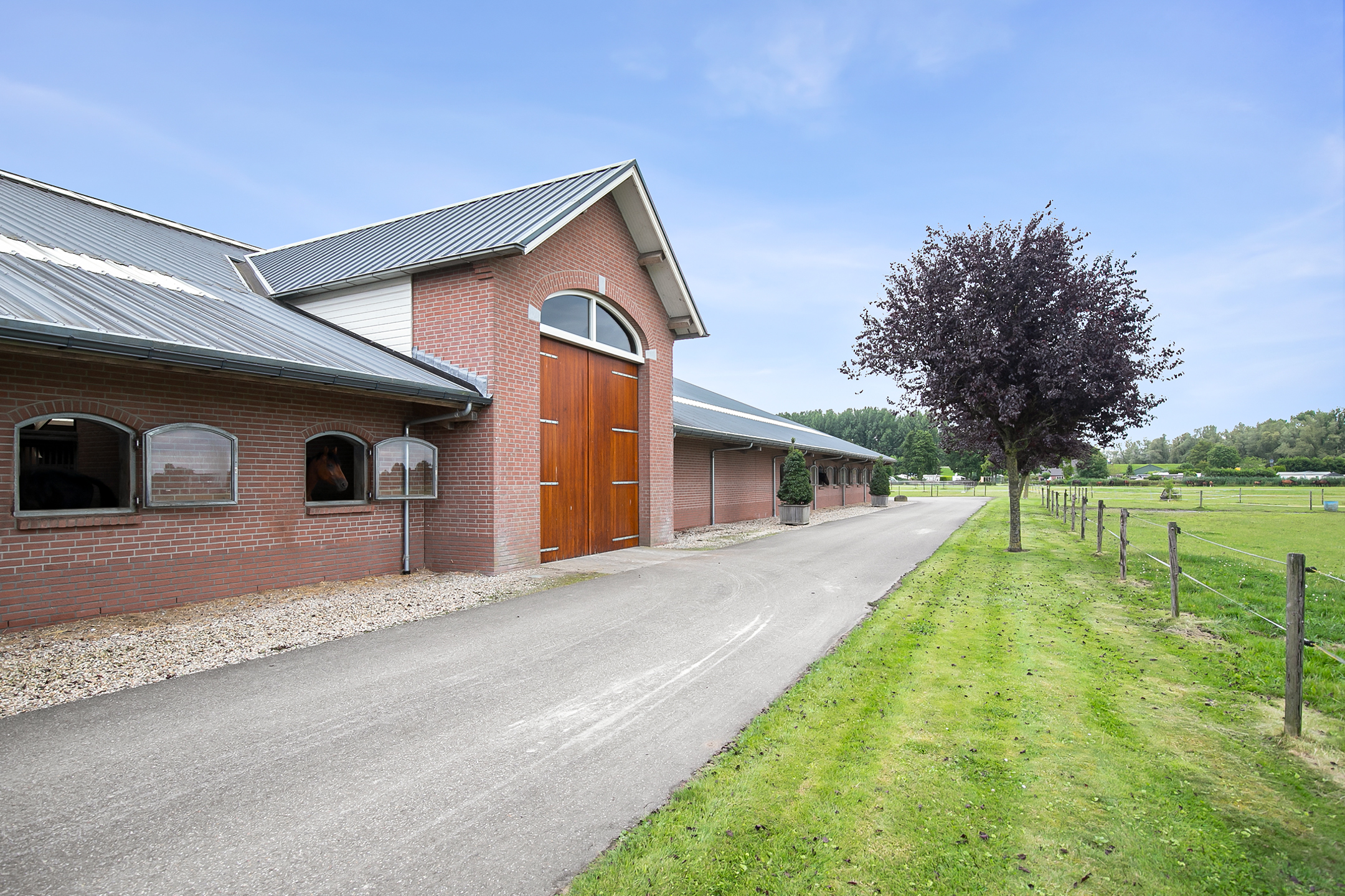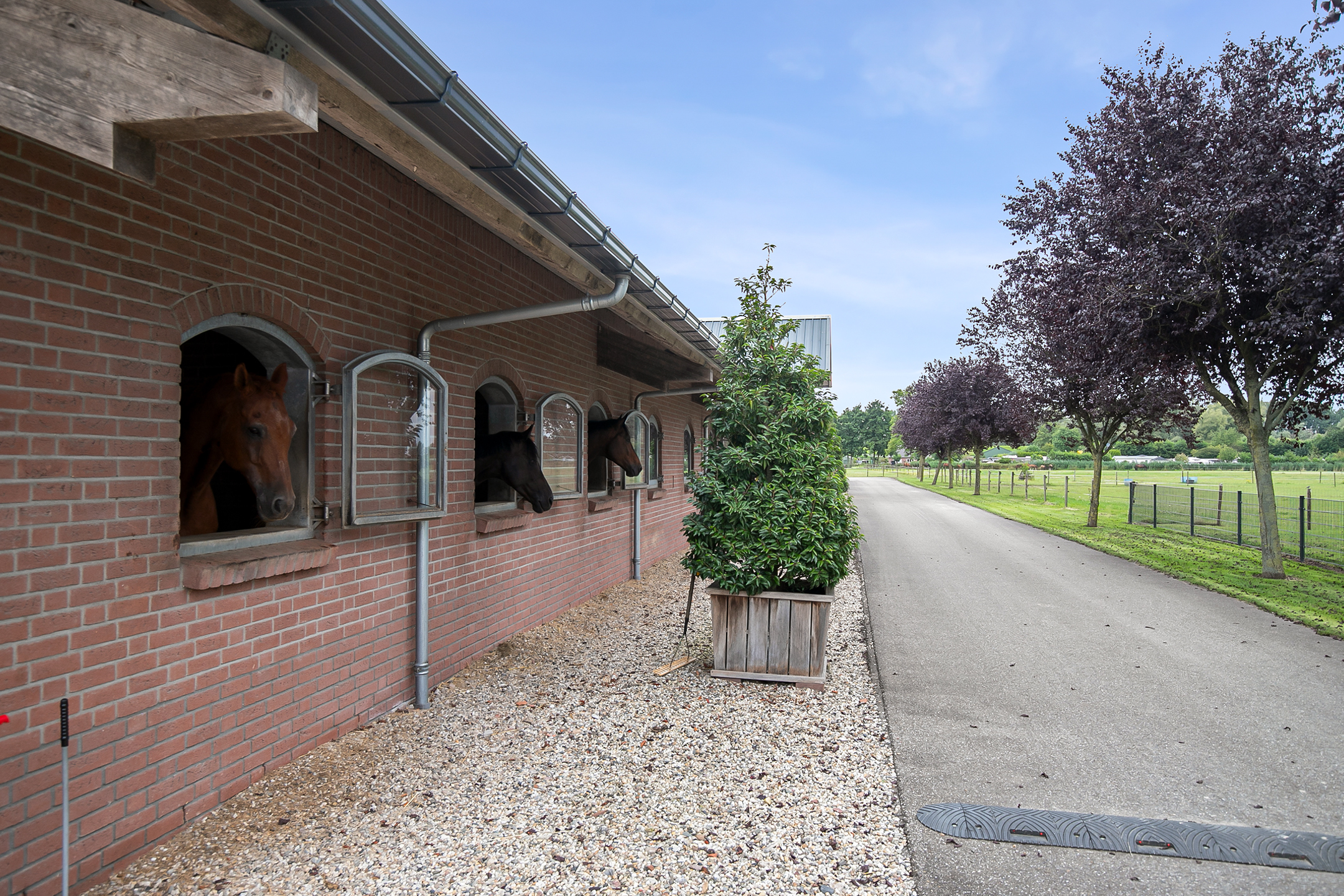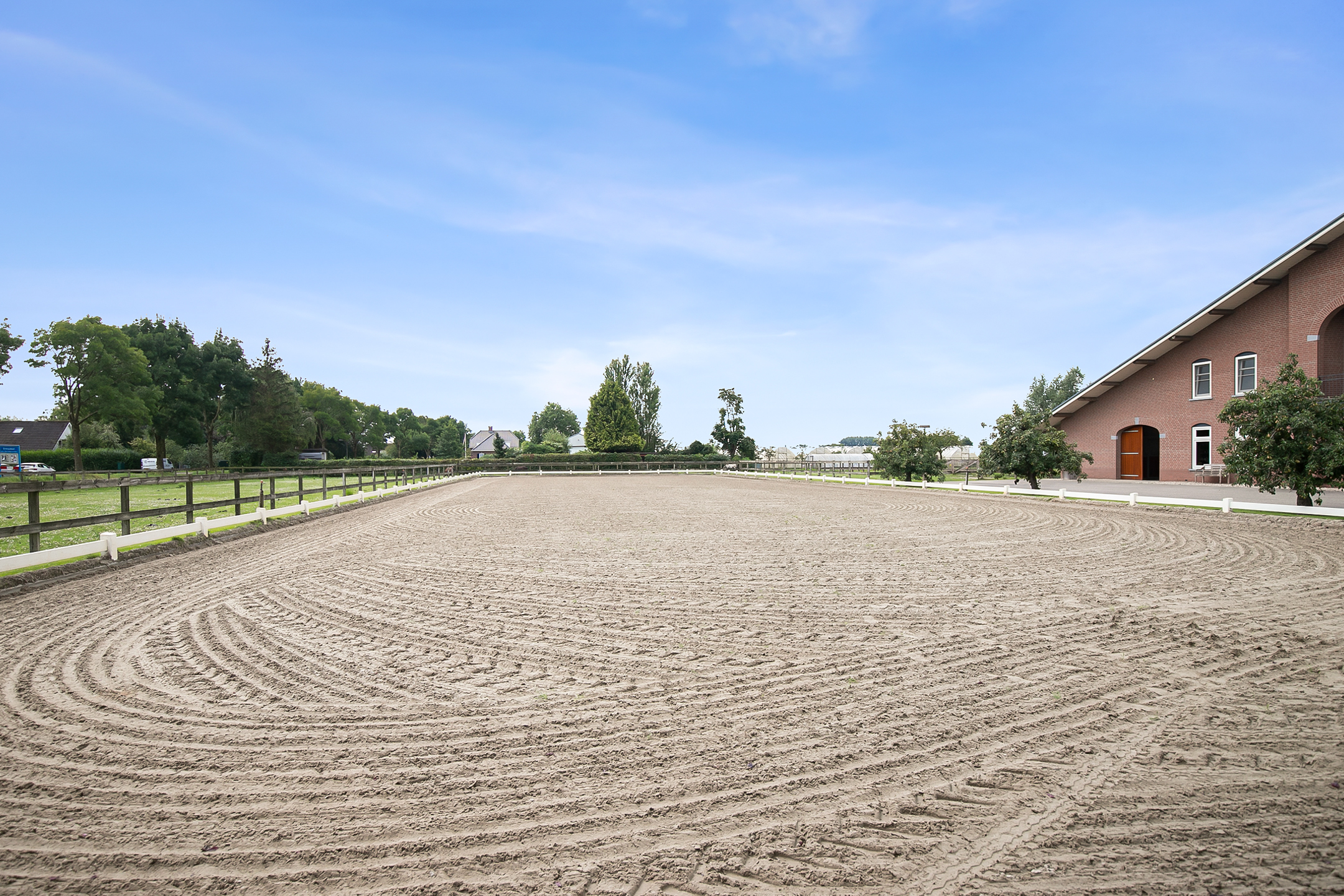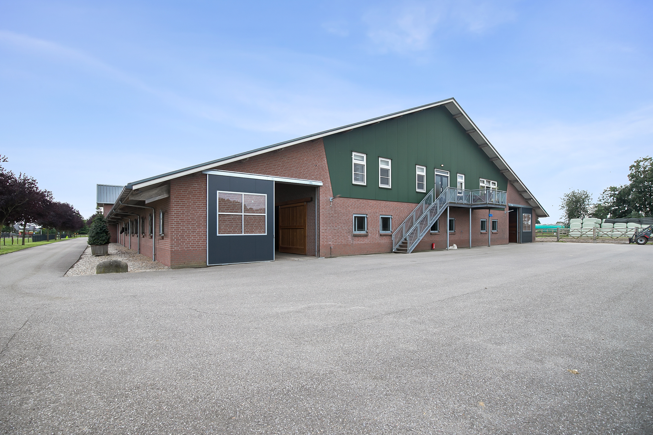 De goed onderhouden hippische accommodatie bestaat uit een vrijstaande rijhal met een binnenpiste (ca. 21x61 mtr.), een paardenstal met een ontvangstgedeelte en in totaal 39 paardenboxen verdeeld over 2 gangen en een vrijstaande veldschuur. Het erf is verder ingericht met een buitenpiste, overdekte stapmolen, een longeercirkel, diverse paddocks en een mestvaalt. Er is voldoende parkeergelegenheid aanwezig voor het stallen van o.a. trailers en vrachtwagens.