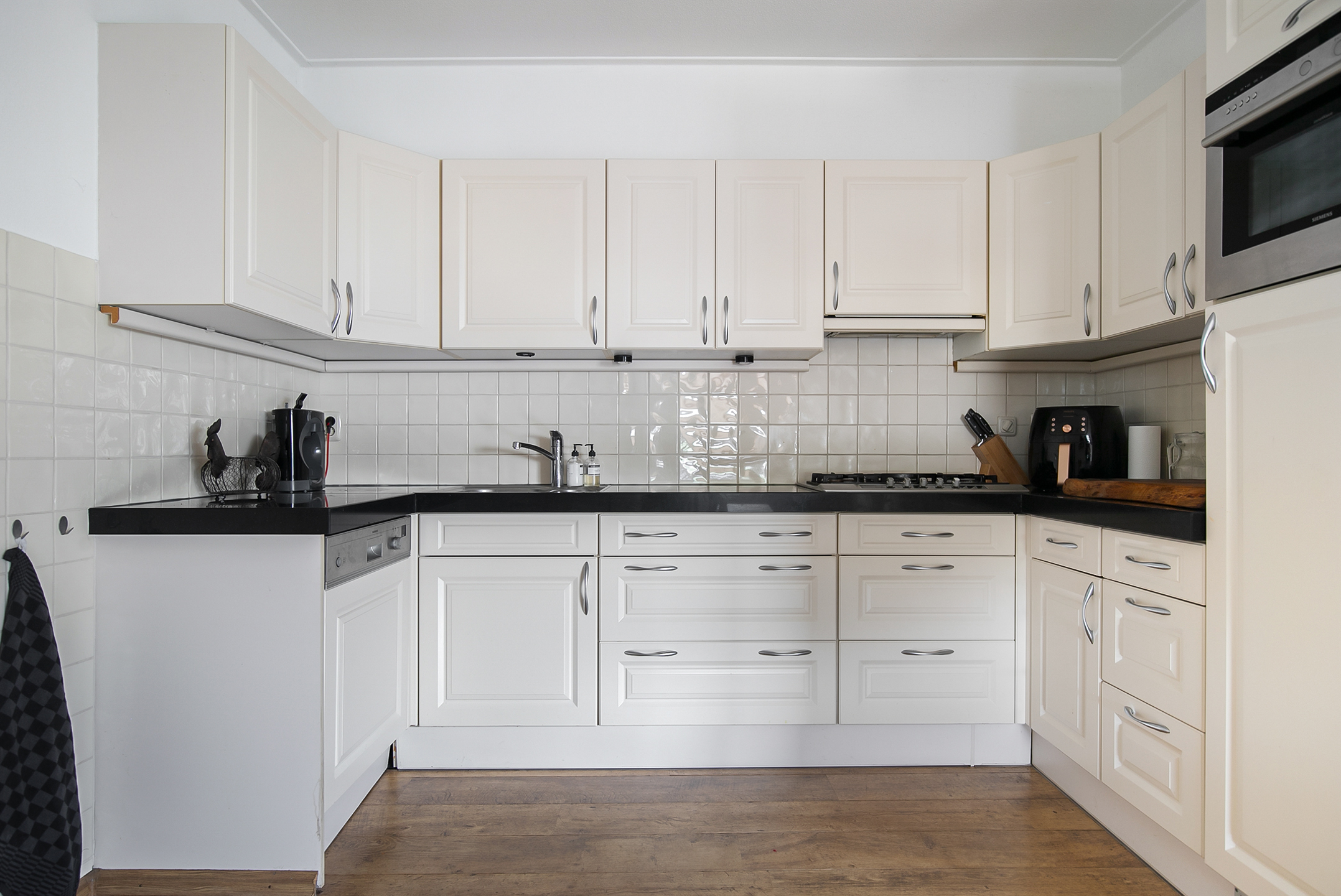 - De raampartijen in het achterhuis zijn voorzien van sfeervolle shutters.