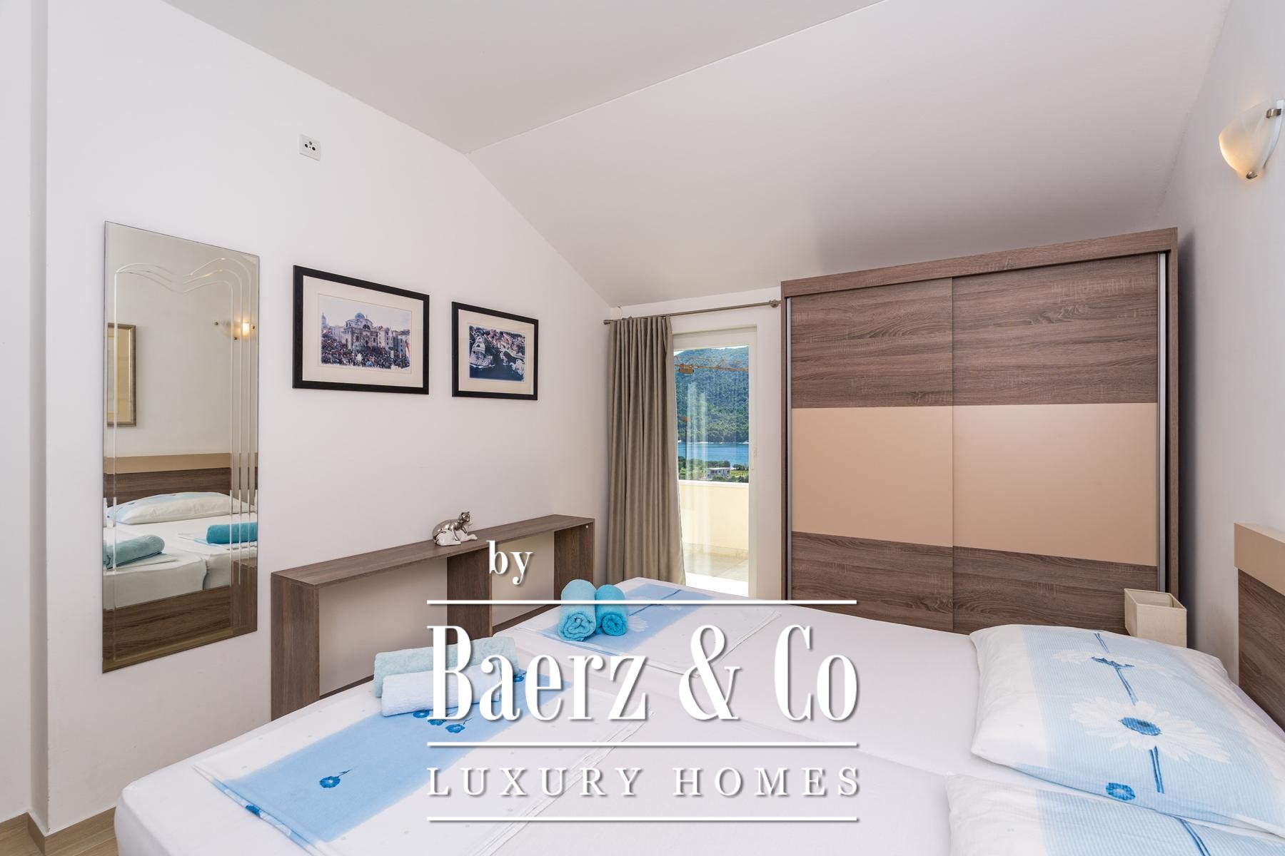 Slano - House with Garage, 350 m² Gross Floor Area, in an Elevated Position with Stunning Sea and Surrounding ViewsThe property has three levels, including the garage and a parking area in front of the house.The basement has a storage room, a living room with a kitchen, a bedroom, a bathroom, a laundry/storage room, and a spacious terrace.On the ground floor, there is an apartment with an entrance hall, a spacious living room with a kitchen and dining area, a loggia of 18.60 m², a toilet, a bathroom, and two bedrooms.The