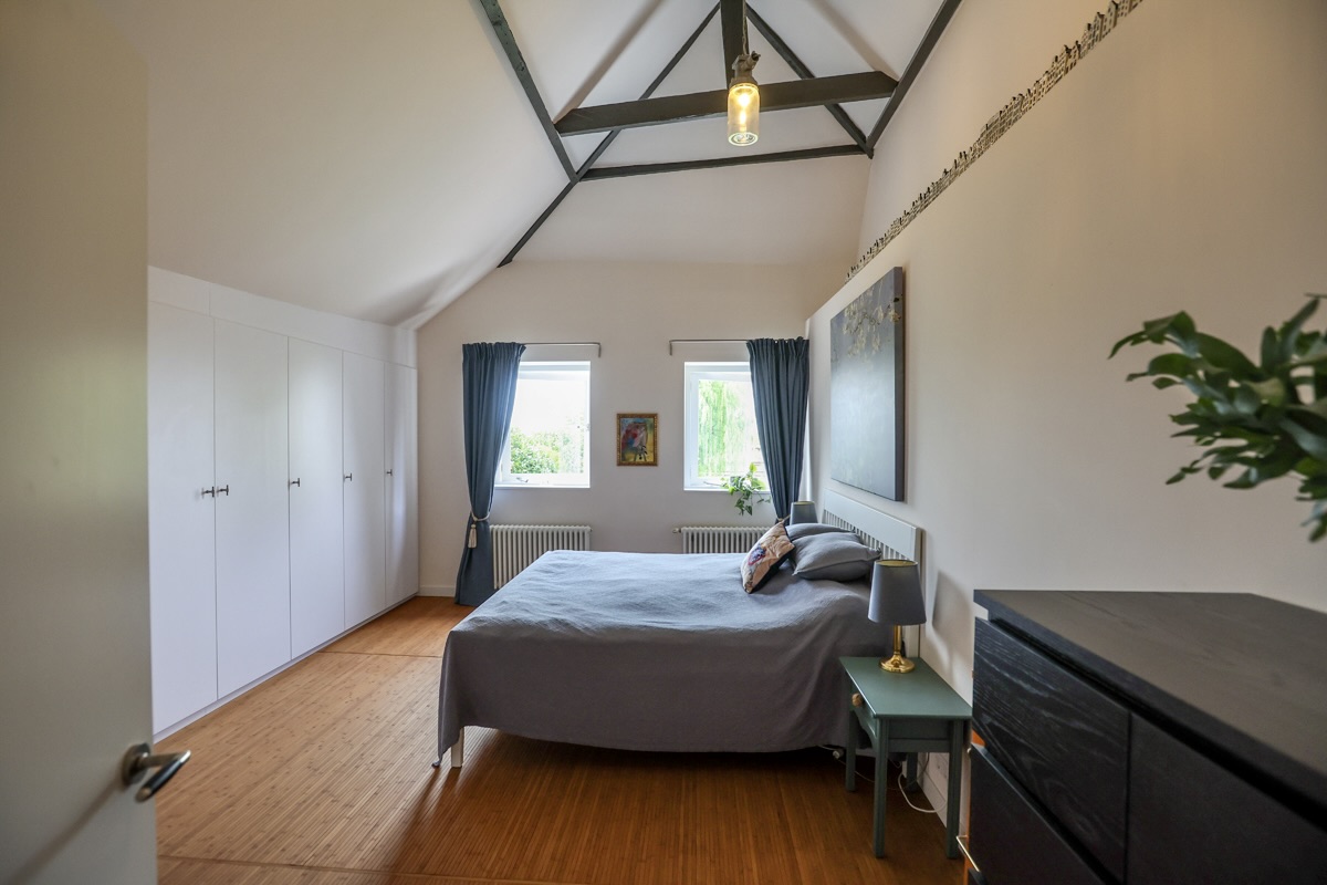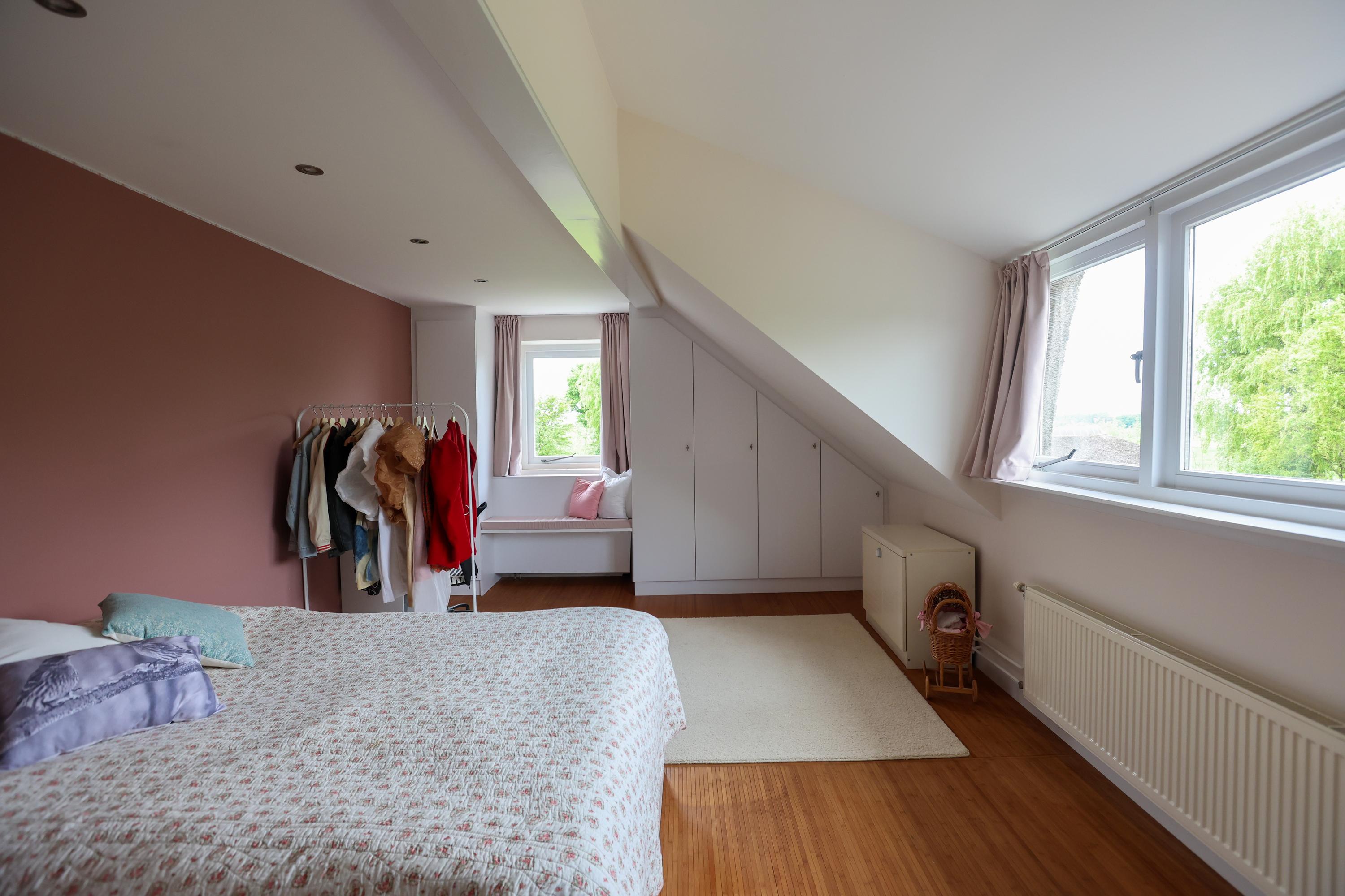 De eerste verdieping heeft alles wat je nodig hebt voor gezinsleven of logees: een sfeervolle ouderslaapkamer met zicht tot in de nok en vaste kasten, waarbij het uitzicht over de weilanden zorgt voor een rustige start van elke dag. Verder zijn er twee gezellige kinderkamers, evenals een tweede badkamer met douche, toilet en wastafelmeubel – zodat iedereen in huis zijn of haar eigen plek heeft, en natuurlijk bergruimte.