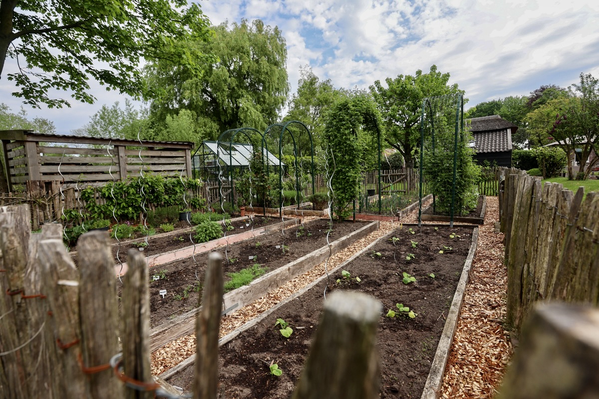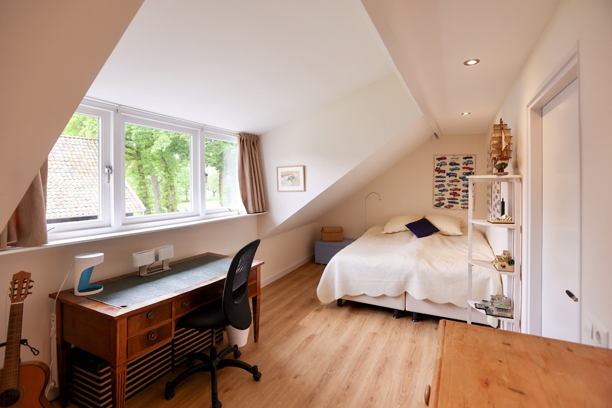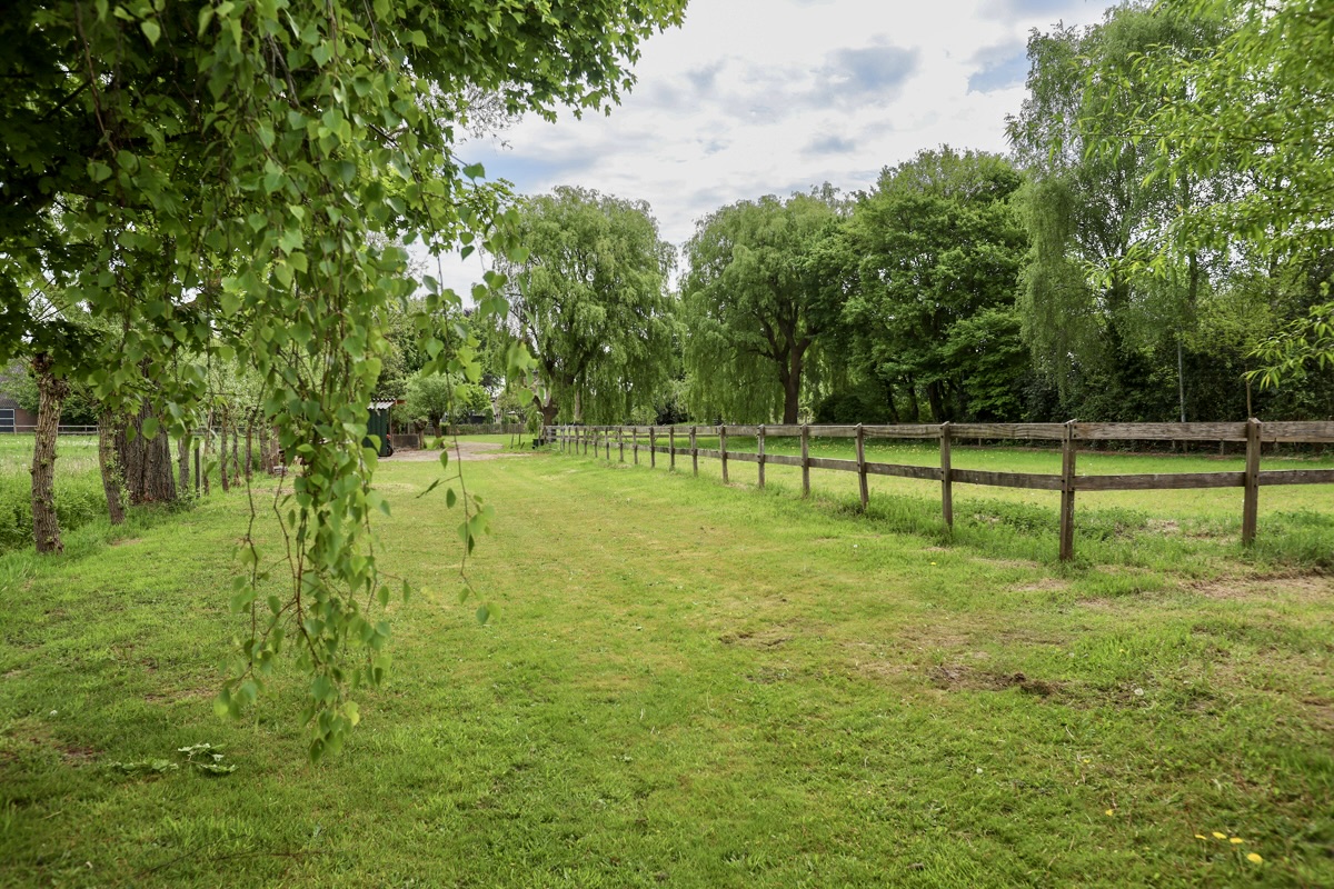 Buiten wacht het echte buitenleven. Een grote moestuin, twee vrijstaande schuren (waarvan één met voormalige paardenstallen), en genoeg ruimte voor paarden, pony’s of zelfs een collectie oldtimers. Of je nu dierenliefhebber bent, een hobbyist met grote plannen of gewoon op zoek bent naar ruimte voor je hobby’s: hier kun je alle kanten op.