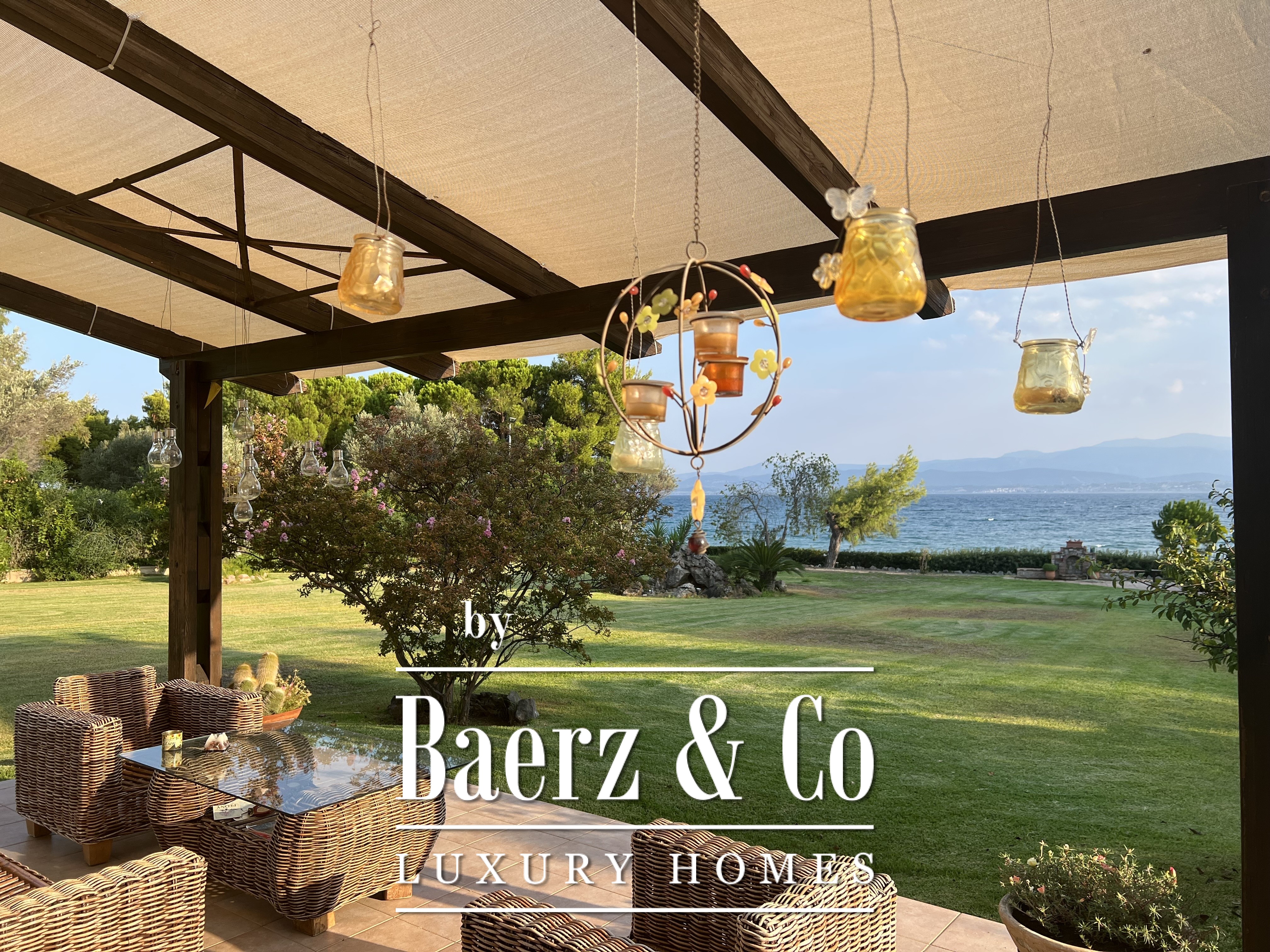 Gelegen in de bijzonder bevoorrechte kustzone van Malakonta in Eretria, biedt dit uitzonderlijke beachfront landgoed een zeldzame kans om een privé mediterraan toevluchtsoord te verwerven van indrukwekkende omvang, exclusiviteit en ontwikkelingspotentieel. Het landgoed bevindt zich op een uitgestrekt privéperceel van 6.400 vierkante meter dat zich rechtstreeks uitstrekt tot aan de waterlijn en beschikt over circa 30 meter volledig privéstrand, een privilege dat onder de huidige Griekse kustwetgeving uiterst zeldzaam is. Daarnaast beschikt het perceel over circa 800 vierkante meter resterende bouwmogelijkheid bestemd voor toeristische residenties, wat aanzienlijke toekomstige investeringsmogelijkheden biedt.
