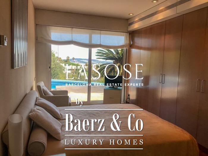 Op de bovenste verdiepingen bevindt zich het slaapgedeelte, met drie hoofd­slaapkamers elk met eigen badkamer, en een mastersuite met studeerkamer. Op de hoogste verdieping zijn er drie eenpersoonskamers met badkamers en een panoramisch terras dat overvloedig licht en uitzicht op zee biedt. Voorzieningen omvatten centrale verwarming, airconditioning, een lift, video-intercom, fitnessruimte, opbergruimte en een automatisch irrigatiesysteem. Deze villa in Esplugues de Llobregat belichaamt ingetogen Spaanse luxe met zowel geborgenheid als verbondenheid, ideaal voor wie een bijzonder familiehuis nabij Barcelona zoekt.