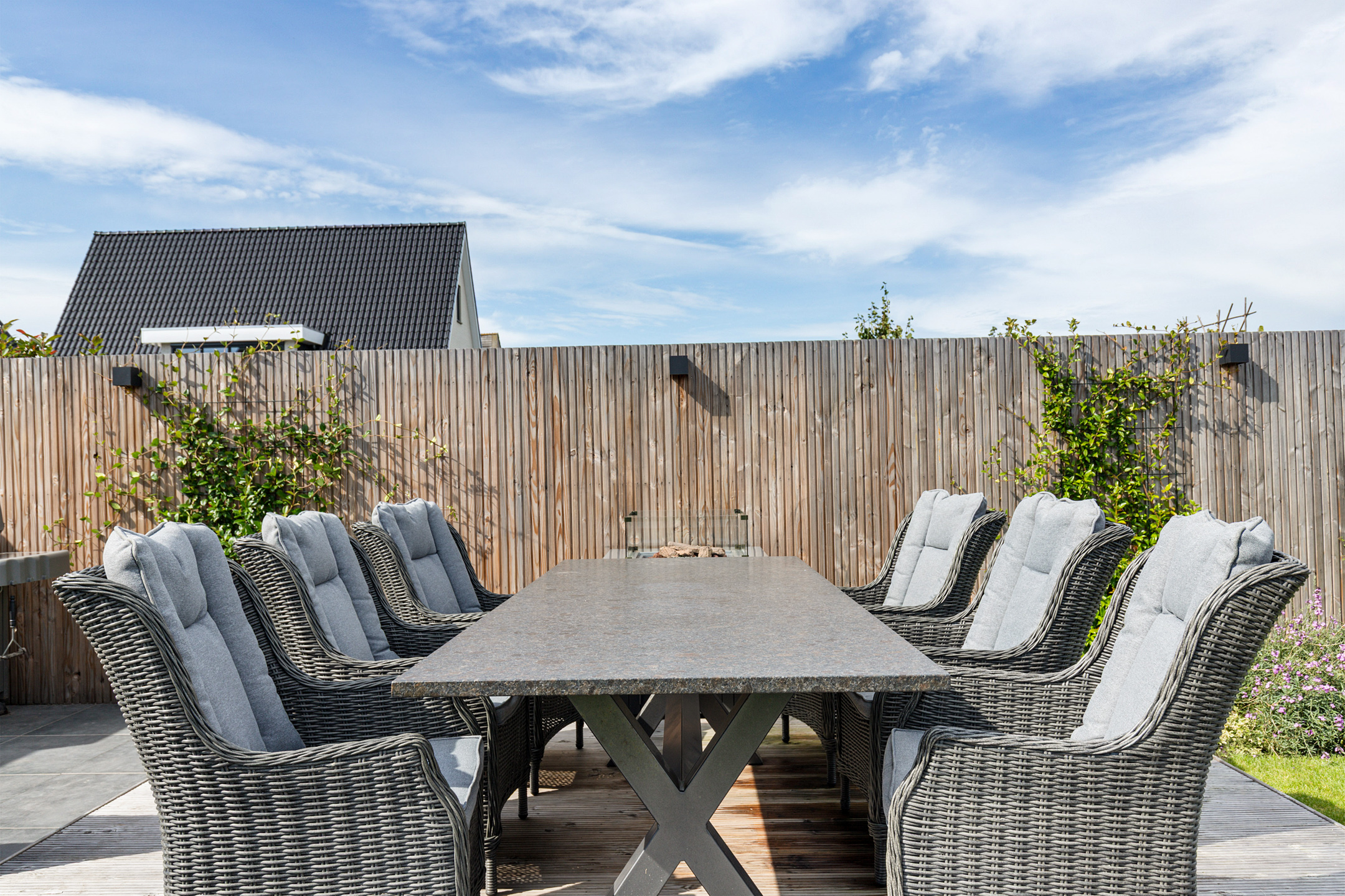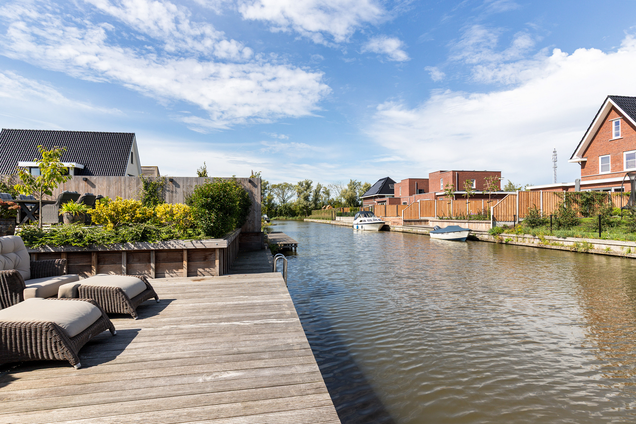 * Professioneel aangelegde tuin met extra diepe 15m hardhouten steiger