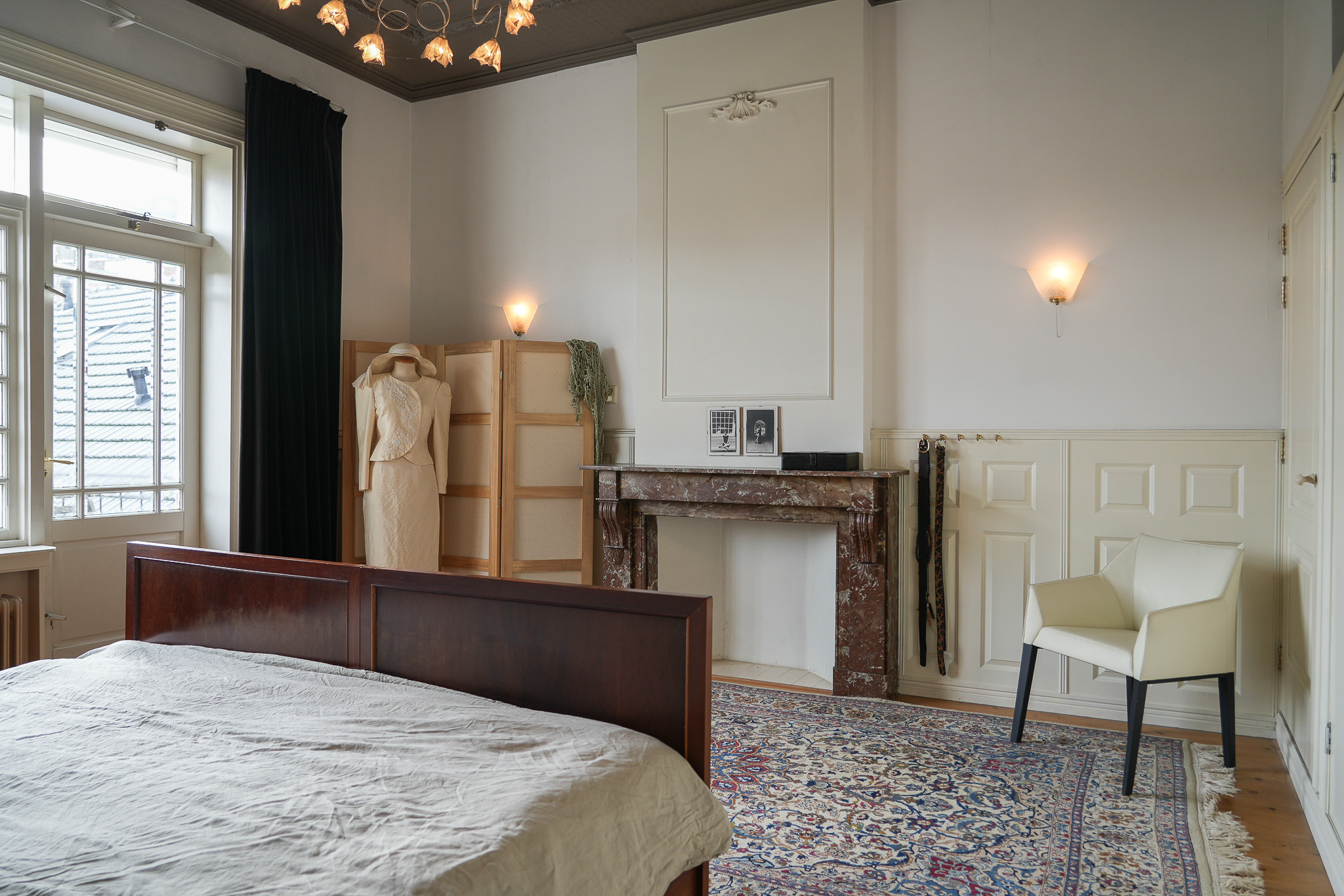 Boven gekomen baadt de overloop in een zee van licht, dankzij de lichtstraat in het platte dak. Prachtige drie-vaks paneeldeuren geven toegang tot de aangrenzende vertrekken. Twee slaapkamers bevinden zich aan de voorzijde en kijken uit over het plantsoen. In het voorportaal van één van deze slaapkamers aan de voorzijde is een trap voorbereid, omdat er in het verleden plannen waren om het pand met een extra verdieping te vergroten.