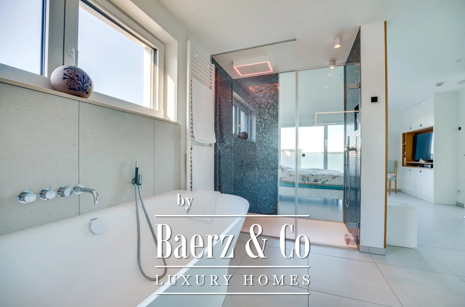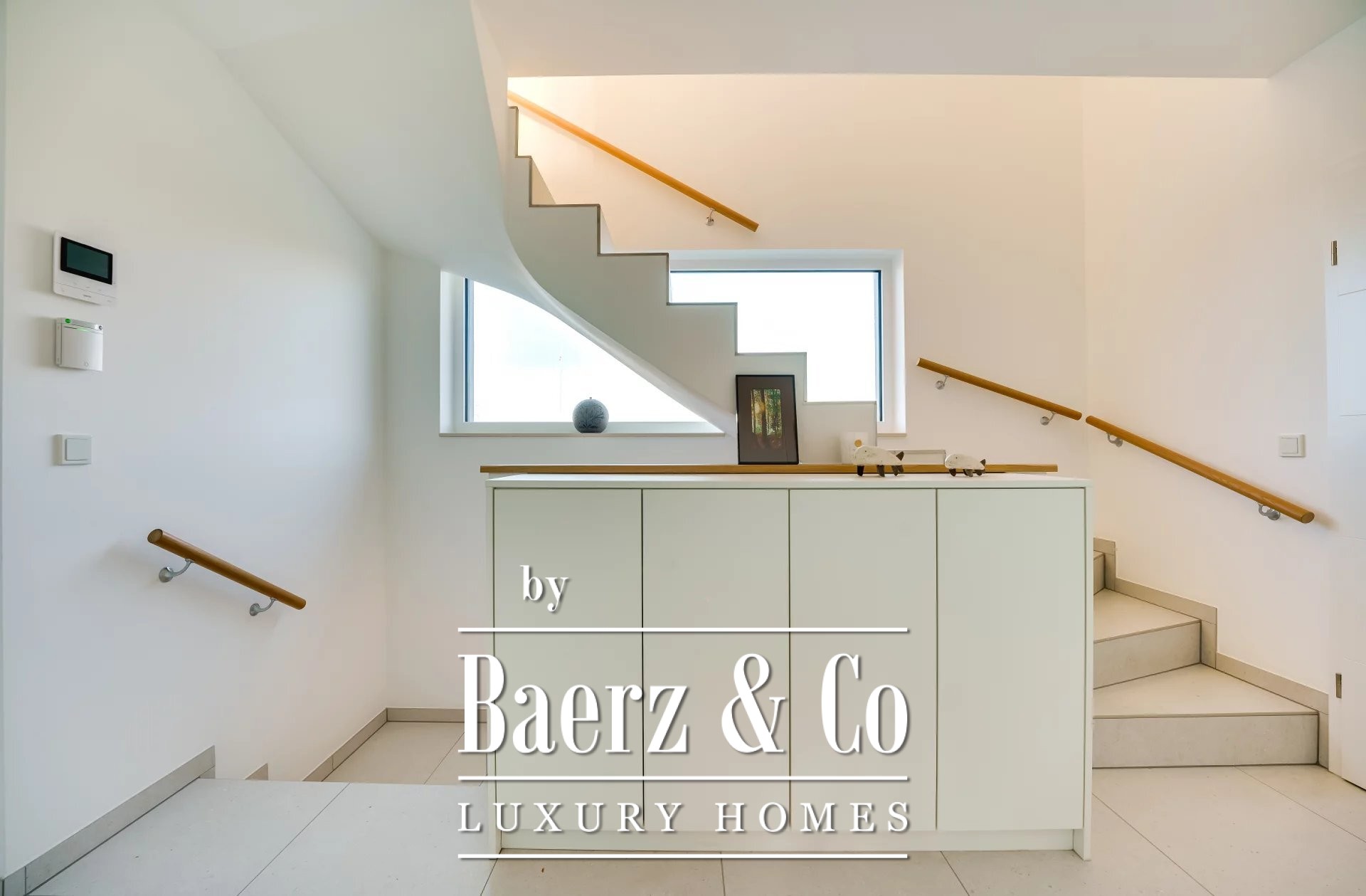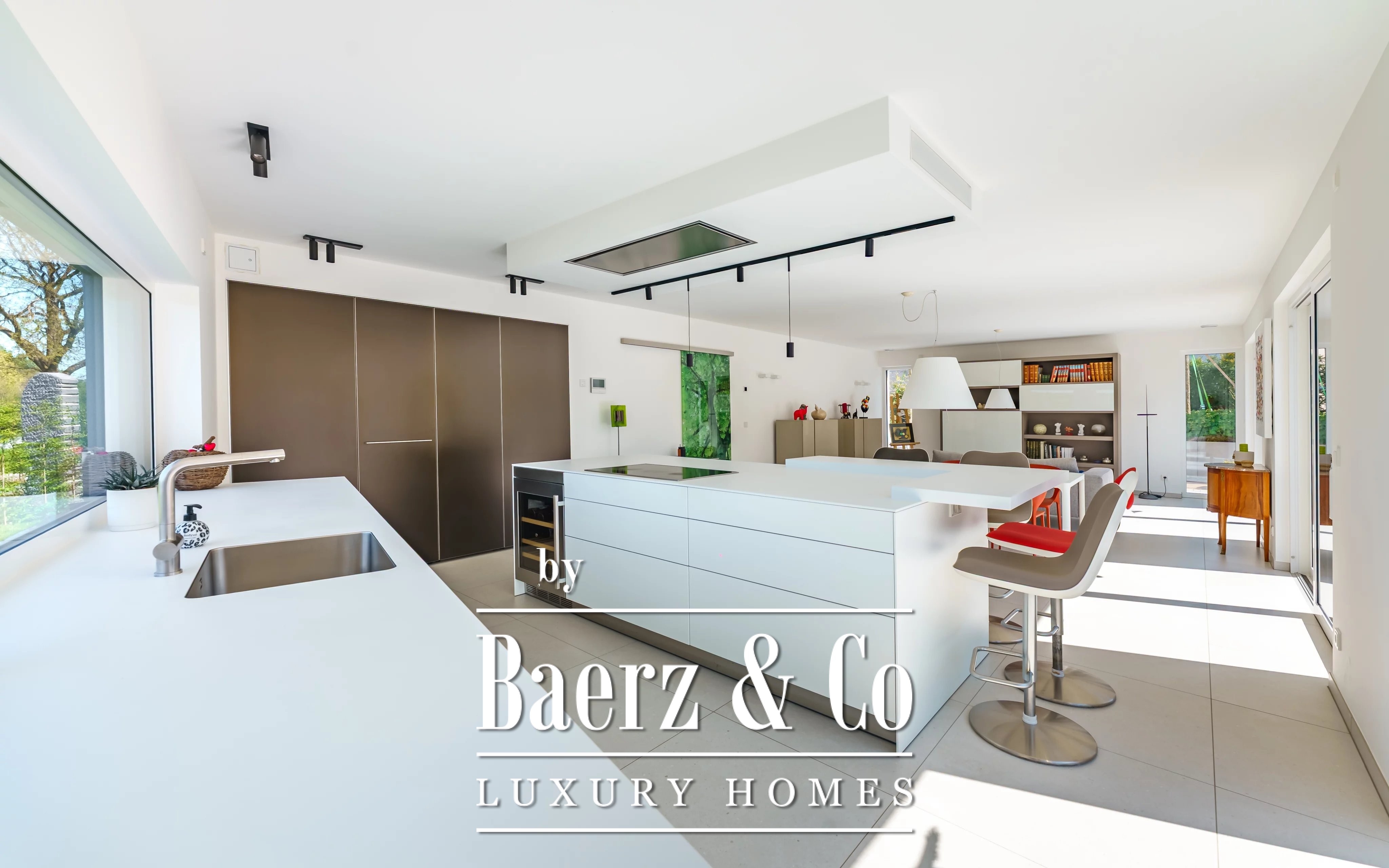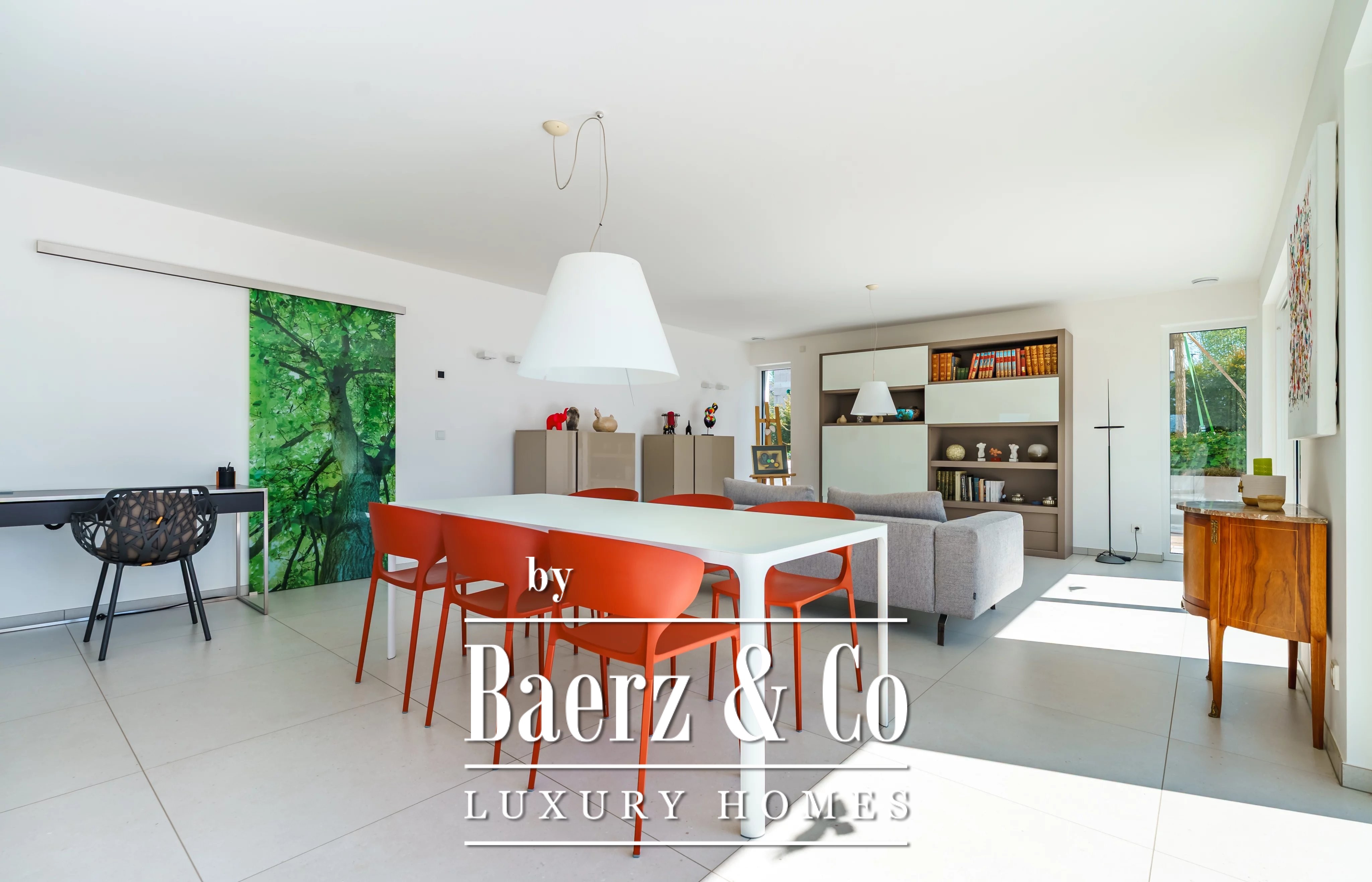 Deze moderne villa van ongeveer 340 m², waarvan 248 bewoonbaar, is ideaal geïntegreerd in de omgeving en is heerlijk licht dankzij de zuidwestelijke oriëntatie.