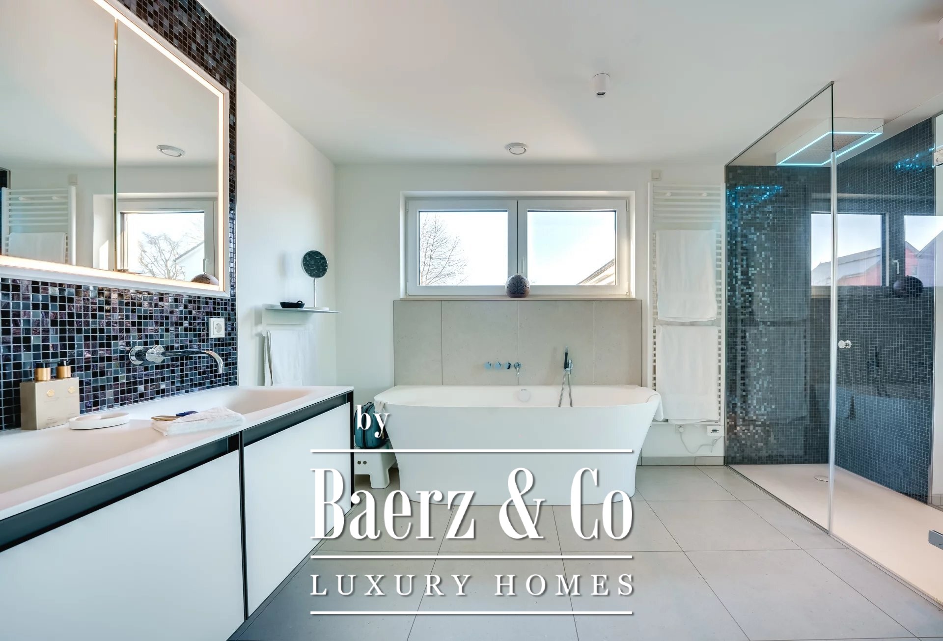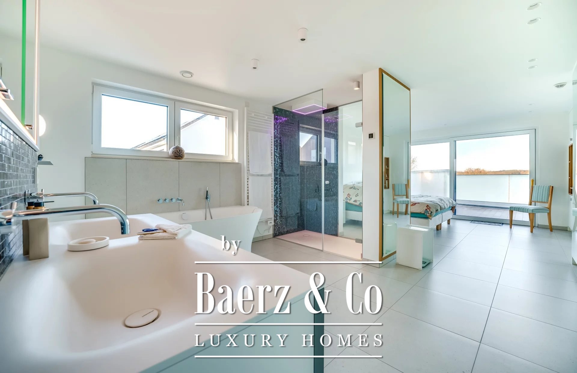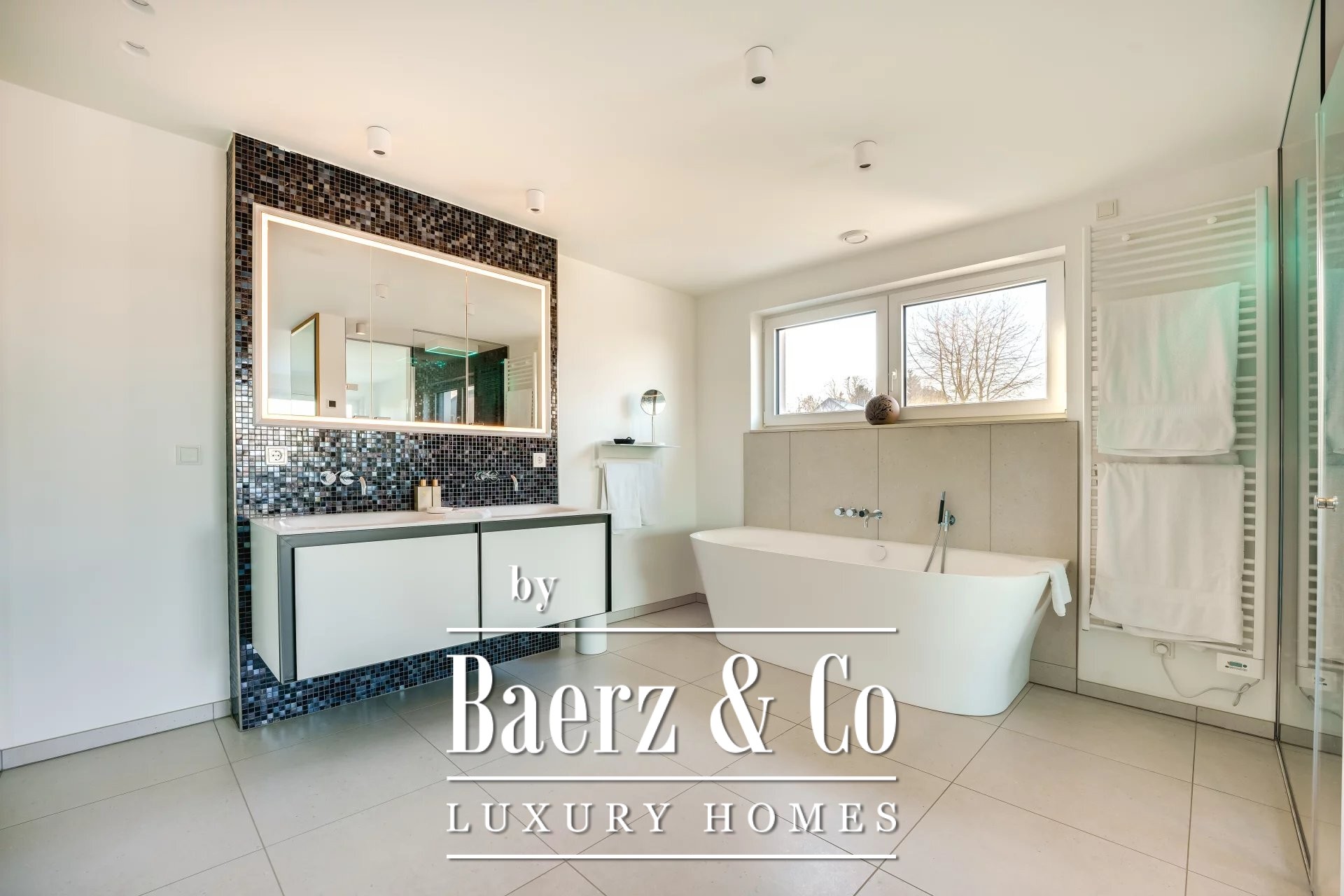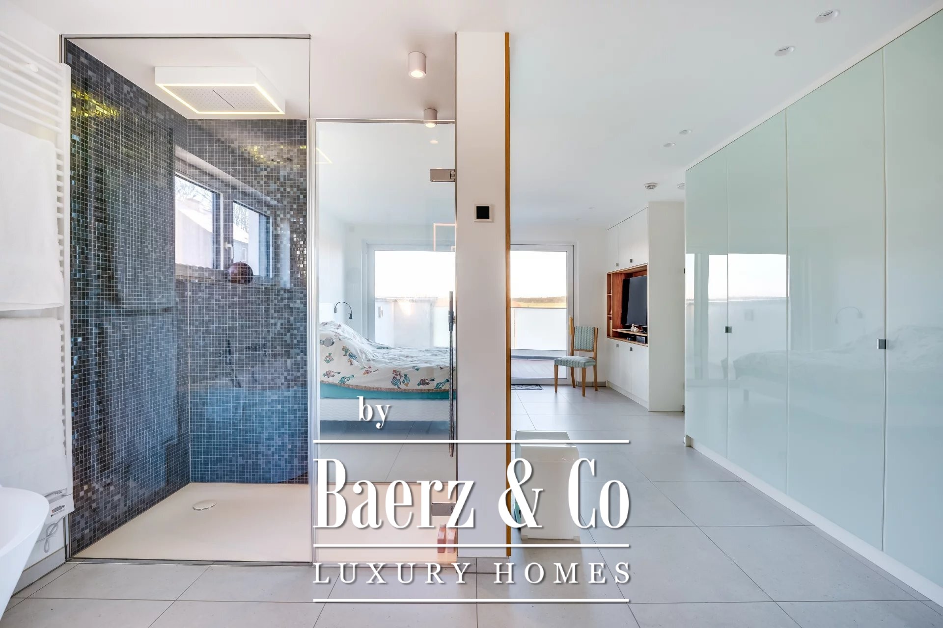 Deze moderne villa van ongeveer 340 m², waarvan 248 bewoonbaar, is ideaal geïntegreerd in de omgeving en is heerlijk licht dankzij de zuidwestelijke oriëntatie.