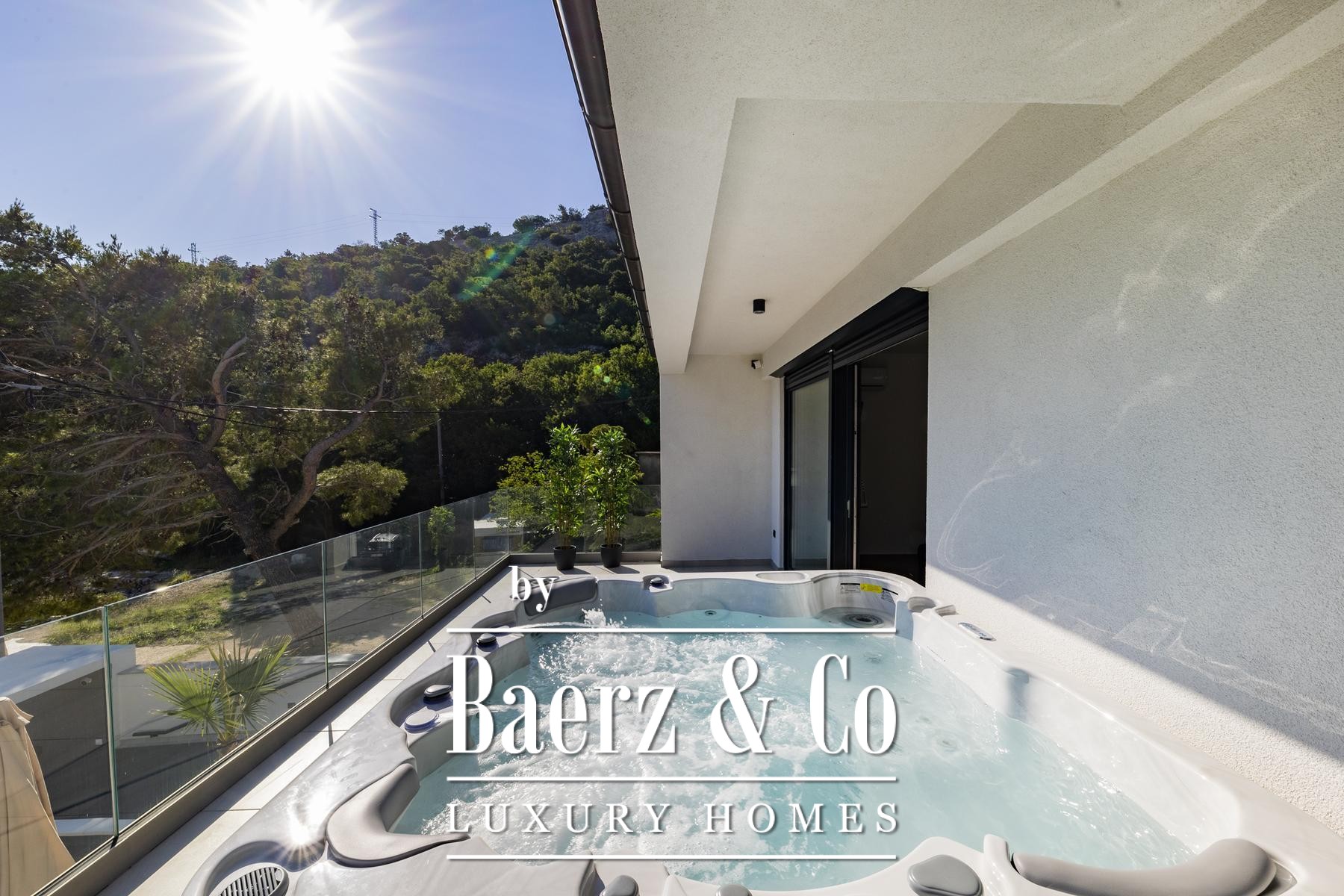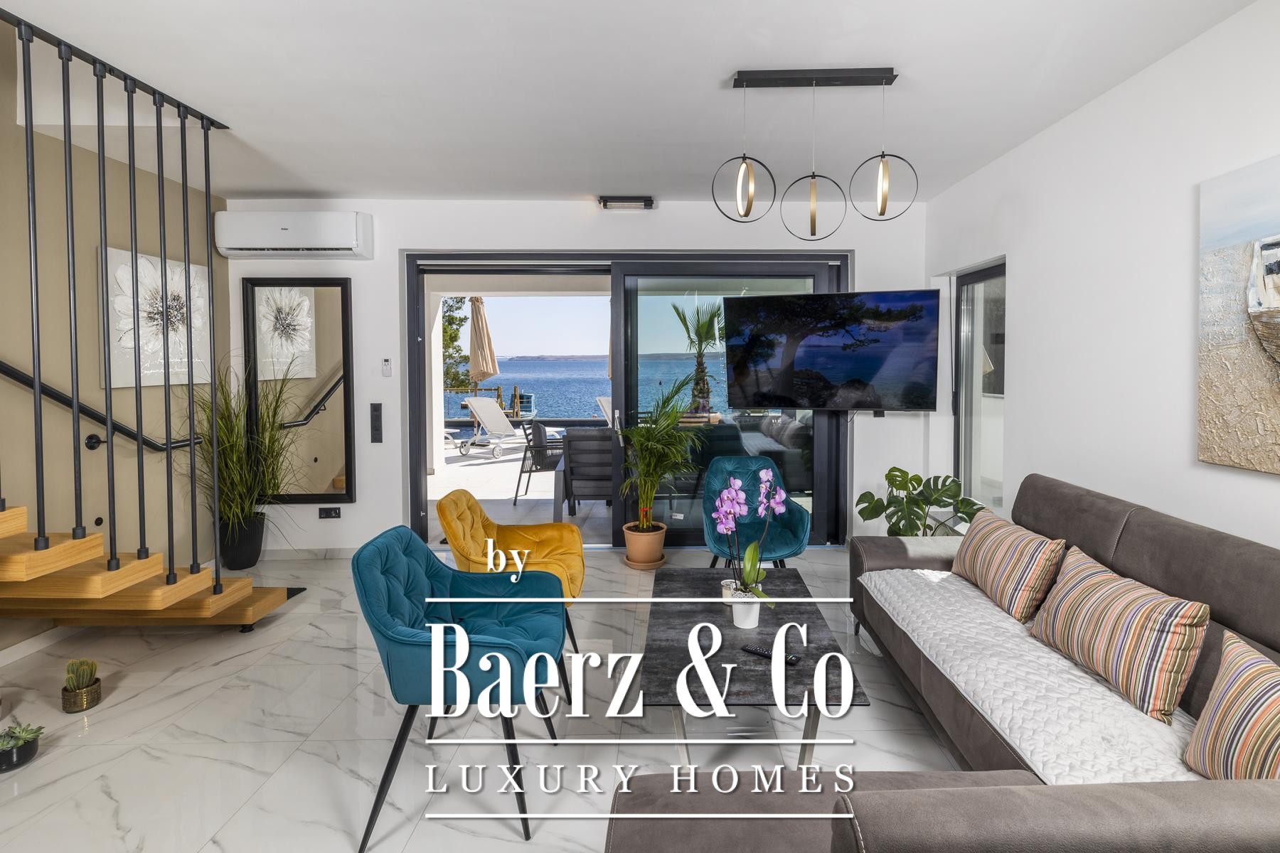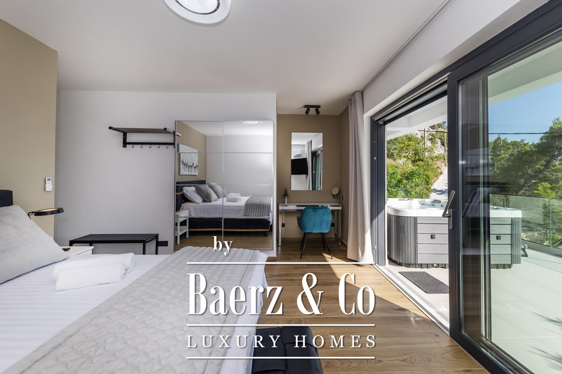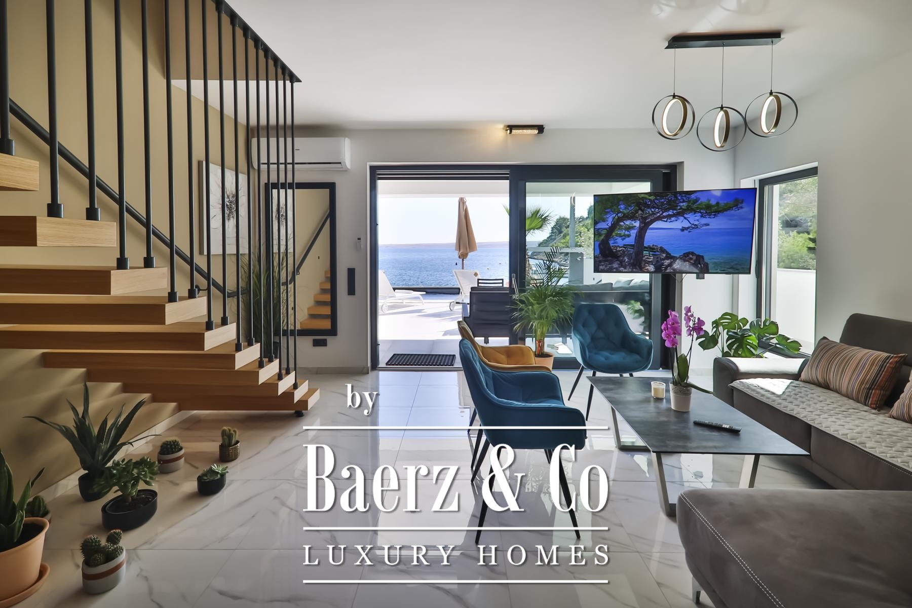 Grote driedubbel beglaasde, uitstekend geïsoleerde raampartijen laten het licht binnen en omlijsten het uitzicht op de Adriatische Zee, terwijl vloerverwarming en een haard een behaaglijk en rustgevend klimaat garanderen gedurende het hele jaar. De elegant ingedeelde hoofdwoonruimte loopt over in een moderne keuken, ontworpen voor zowel gebruiksgemak als verfijning. Buitenruimte nodigt uit tot ontspannen middagen bij het 32 m² grote zeewaterzwembad, in de jacuzzi, sauna of in de privéfitness, met directe toegang tot de zee en een steiger voorzien van een botenhelling voor jachtbezitters.