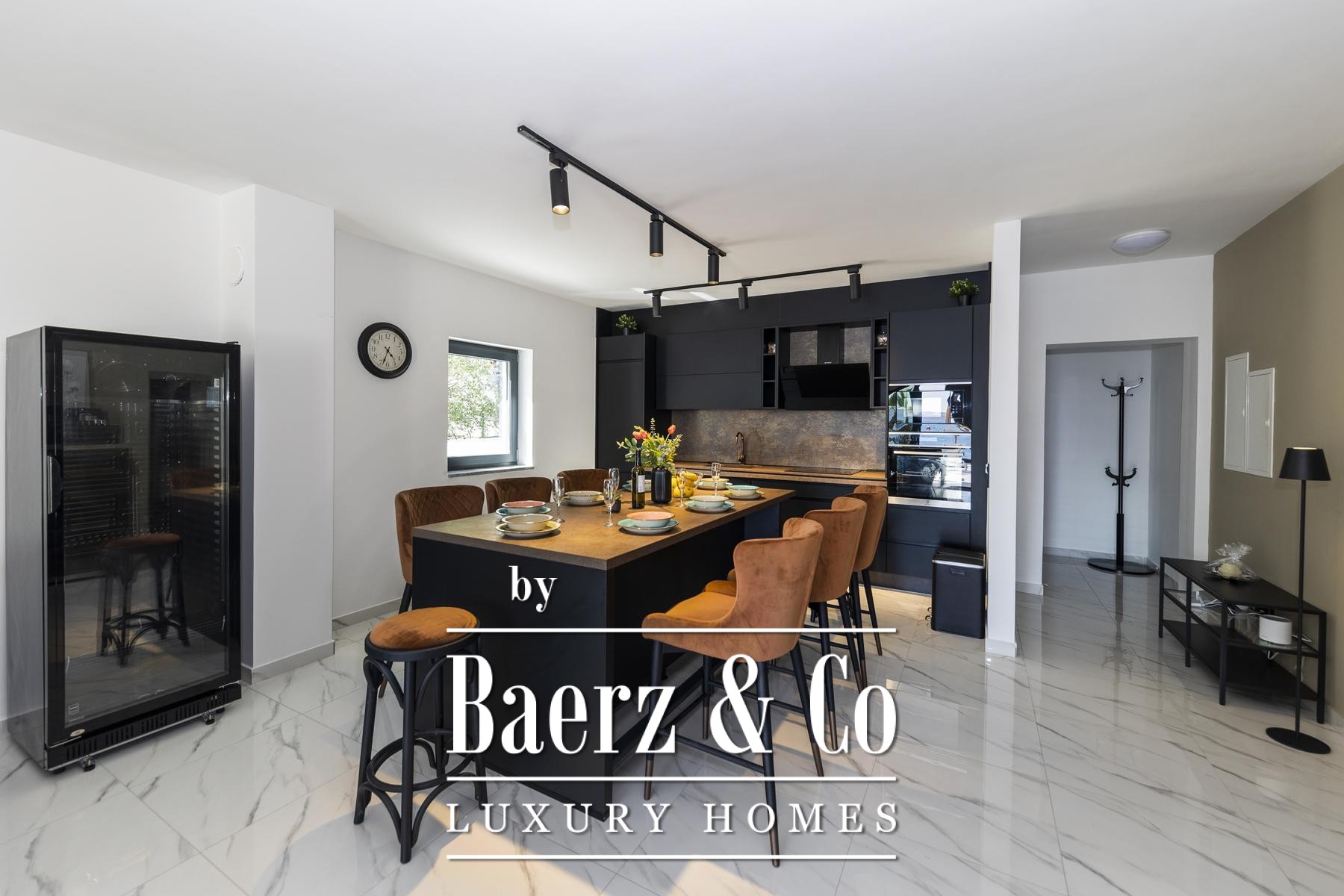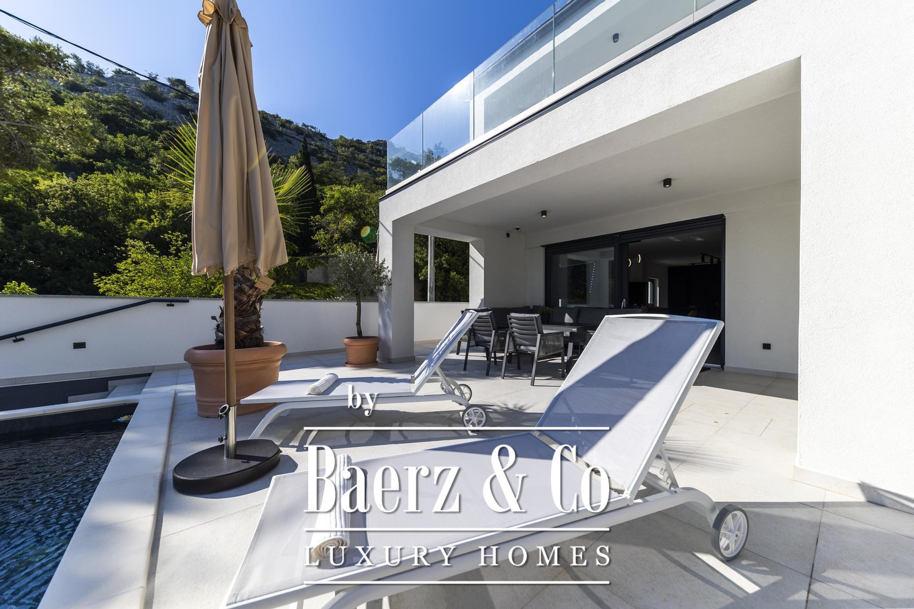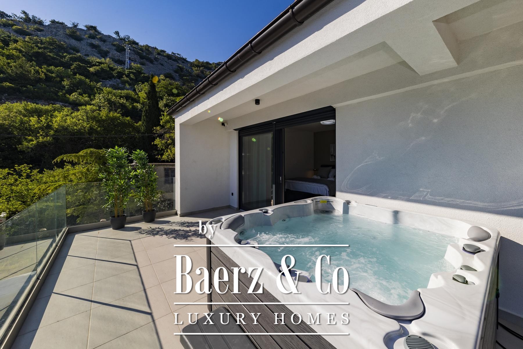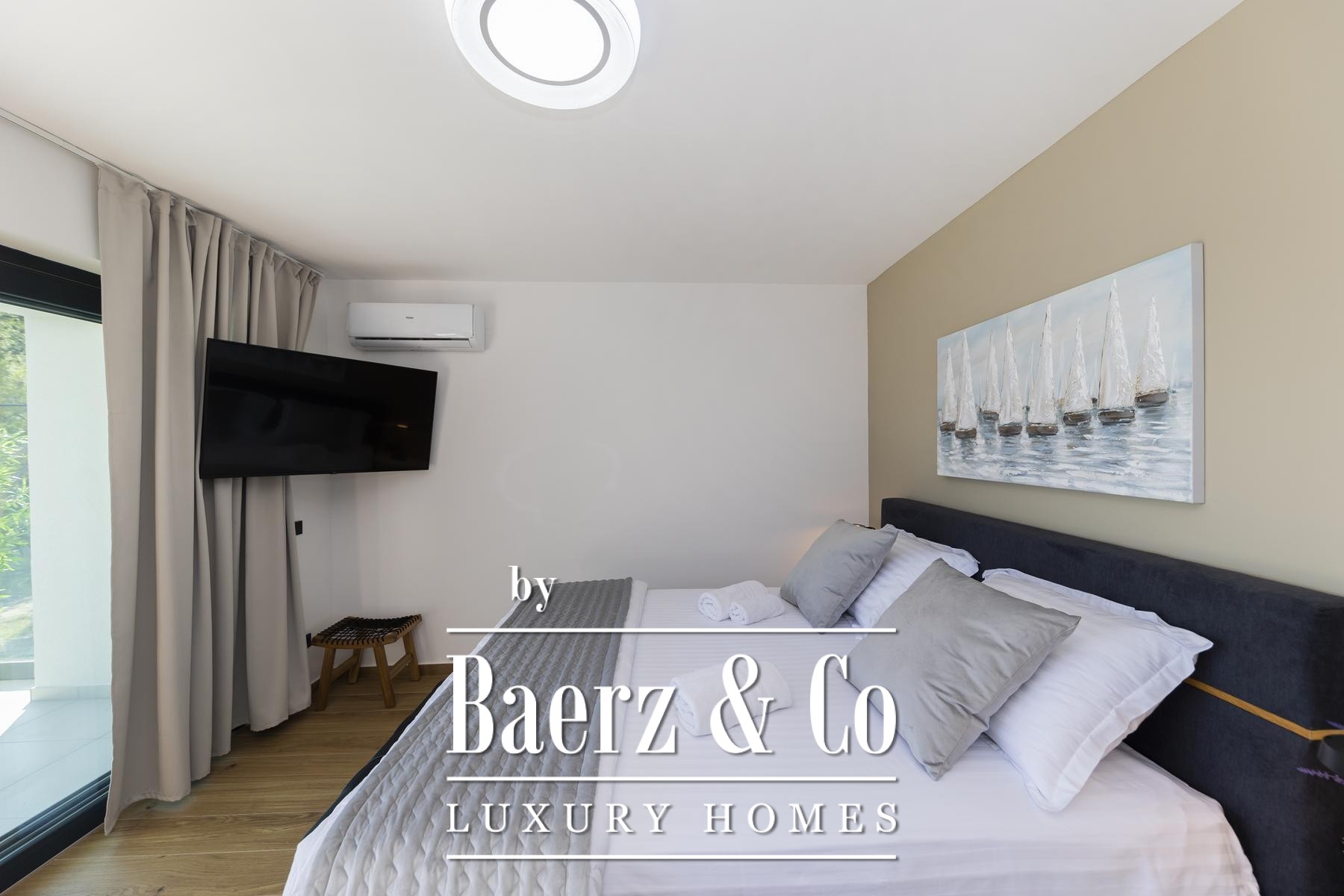 Grote driedubbel beglaasde, uitstekend geïsoleerde raampartijen laten het licht binnen en omlijsten het uitzicht op de Adriatische Zee, terwijl vloerverwarming en een haard een behaaglijk en rustgevend klimaat garanderen gedurende het hele jaar. De elegant ingedeelde hoofdwoonruimte loopt over in een moderne keuken, ontworpen voor zowel gebruiksgemak als verfijning. Buitenruimte nodigt uit tot ontspannen middagen bij het 32 m² grote zeewaterzwembad, in de jacuzzi, sauna of in de privéfitness, met directe toegang tot de zee en een steiger voorzien van een botenhelling voor jachtbezitters.