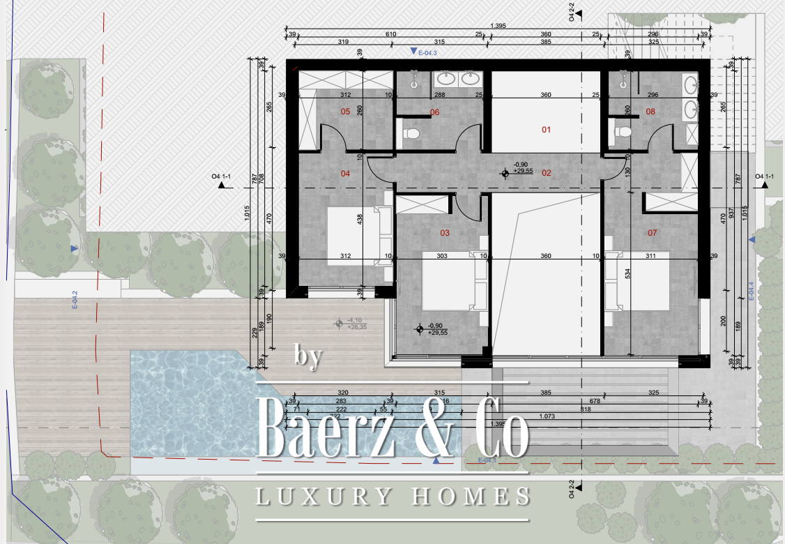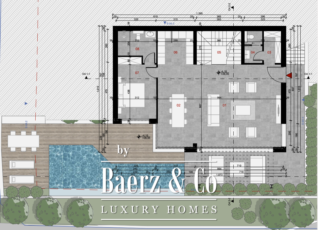 The villa has 4 levels. It has a pool and 2 garage spots. It is connected by an asphalt road to the main road. The owners can choose to self-maintain the property or hire our preferred maintenance company. Construction will be finished in fall 2026.