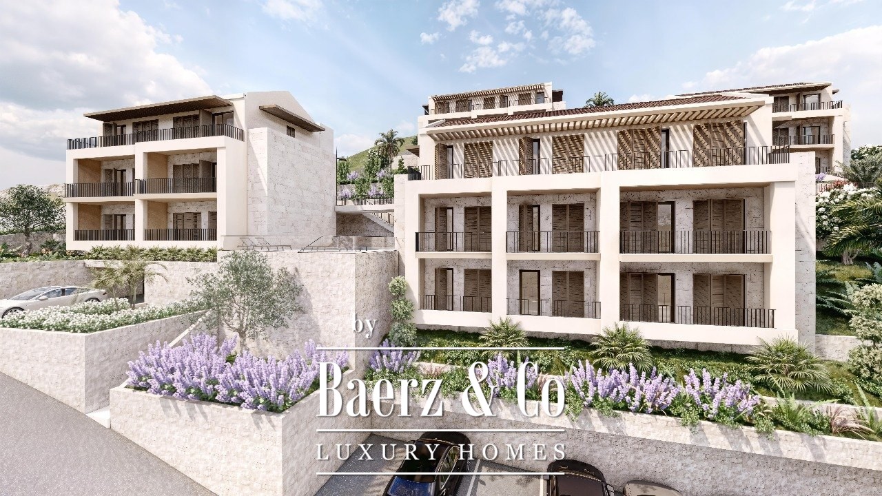 Structure of the apartment: hallway, living room with kitchen and dining table, a bedrooms, a bathroom and a terrace. The apartment itself has 44,4m2, while its terrace has 11m2. It has a view of the sea and the mountains that surround it. This apartment will be delivered with finished floors, set up tiles, equipped bathroom and air conditioning. There is an option of equipping the apartment.