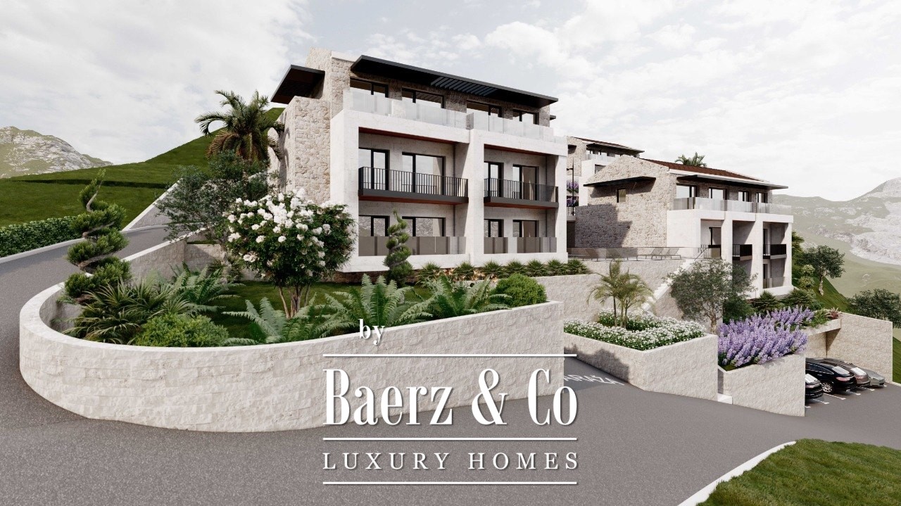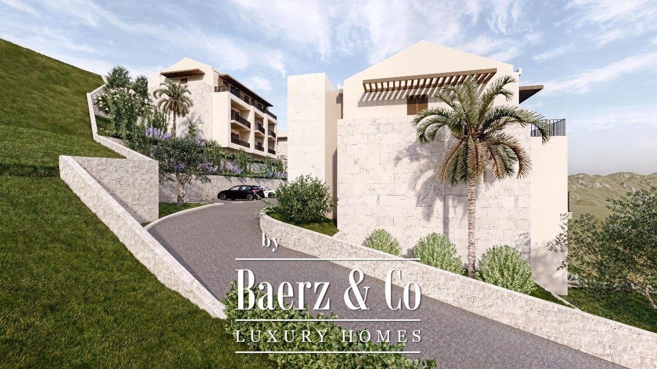 The building has 3 floors, while the apartment is on the 2nd floor. This apartment complex has 2 salt water pools. There is a berth for a boat that is 70m2 away from the building. Each apartment has its own parking spot, and also, there is a n option of buying a garage spot for 20 000e. There are 4 buildings that have 3 floors in this apartment complex and each one has 5 apartments. This building will be finished in June 2026.