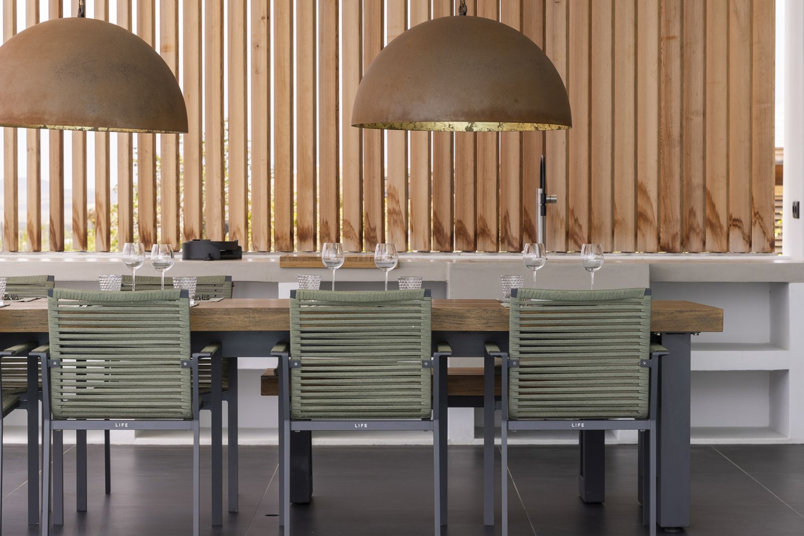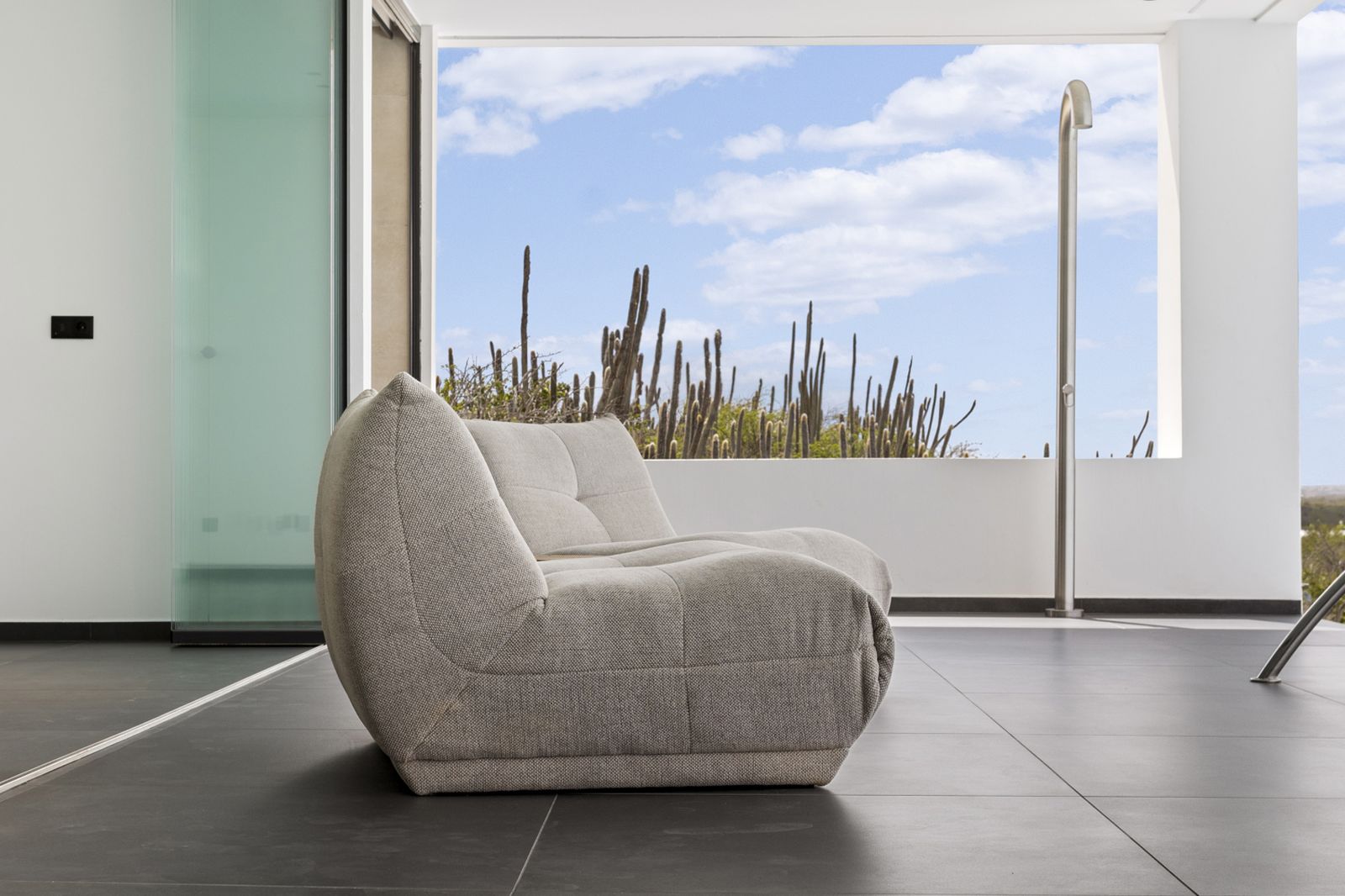 Deze villa is gebouwd met oog voor detail en met gebruik van hoogwaardige materialen. Het interieur is modern en stijlvol, met op maat gemaakte meubels die perfect aansluiten bij het design van het huis.