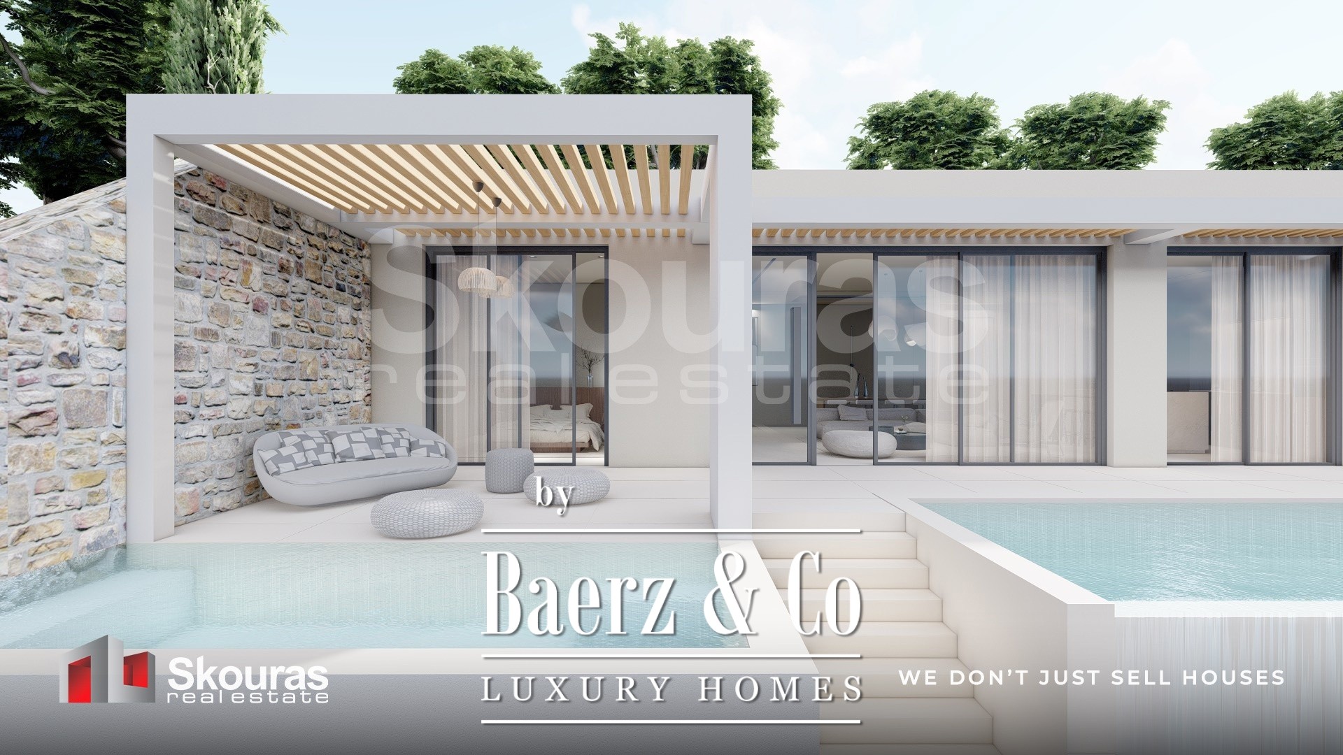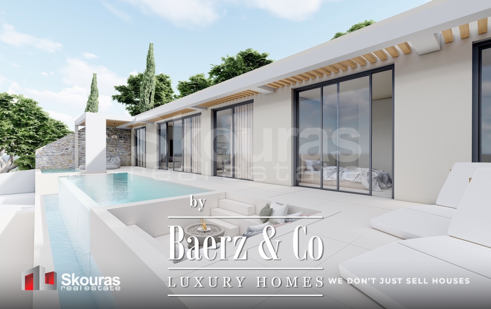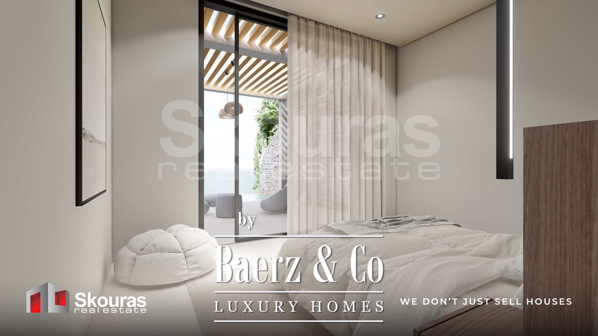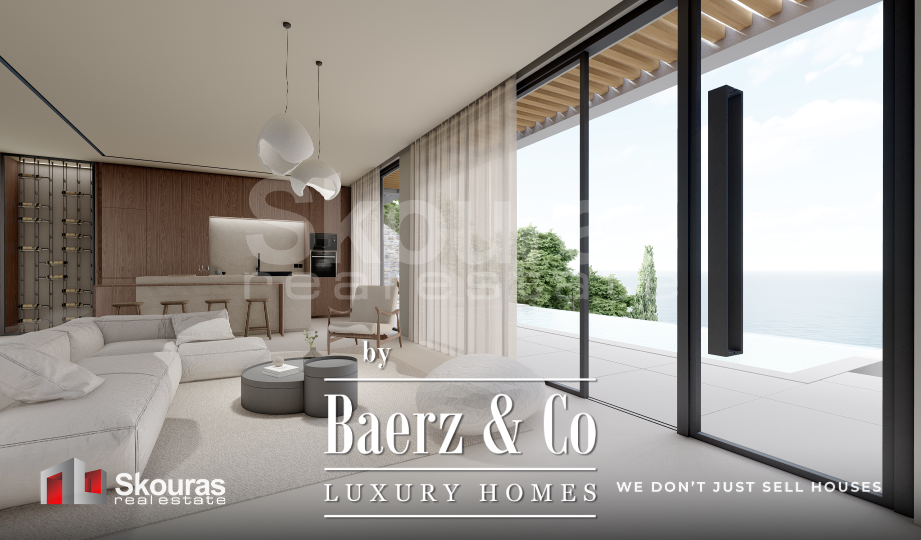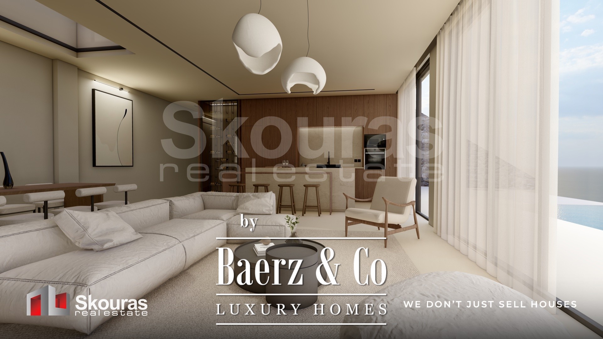 De villa beschikt over drie ruim bemeten slaapkamers, elk met een eigen en-suite badkamer en inloopkast, zodat zowel bewoners als gasten genieten van zelfstandigheid en verfijning. Grote raampartijen omlijsten het open leefgedeelte, vangen het zeezicht en natuurlijk licht, terwijl de moderne keuken en eigen wijnkelder een omgeving voor ingetogen luxe creëren. Smart home technologie geeft het dagelijks leven extra comfort.