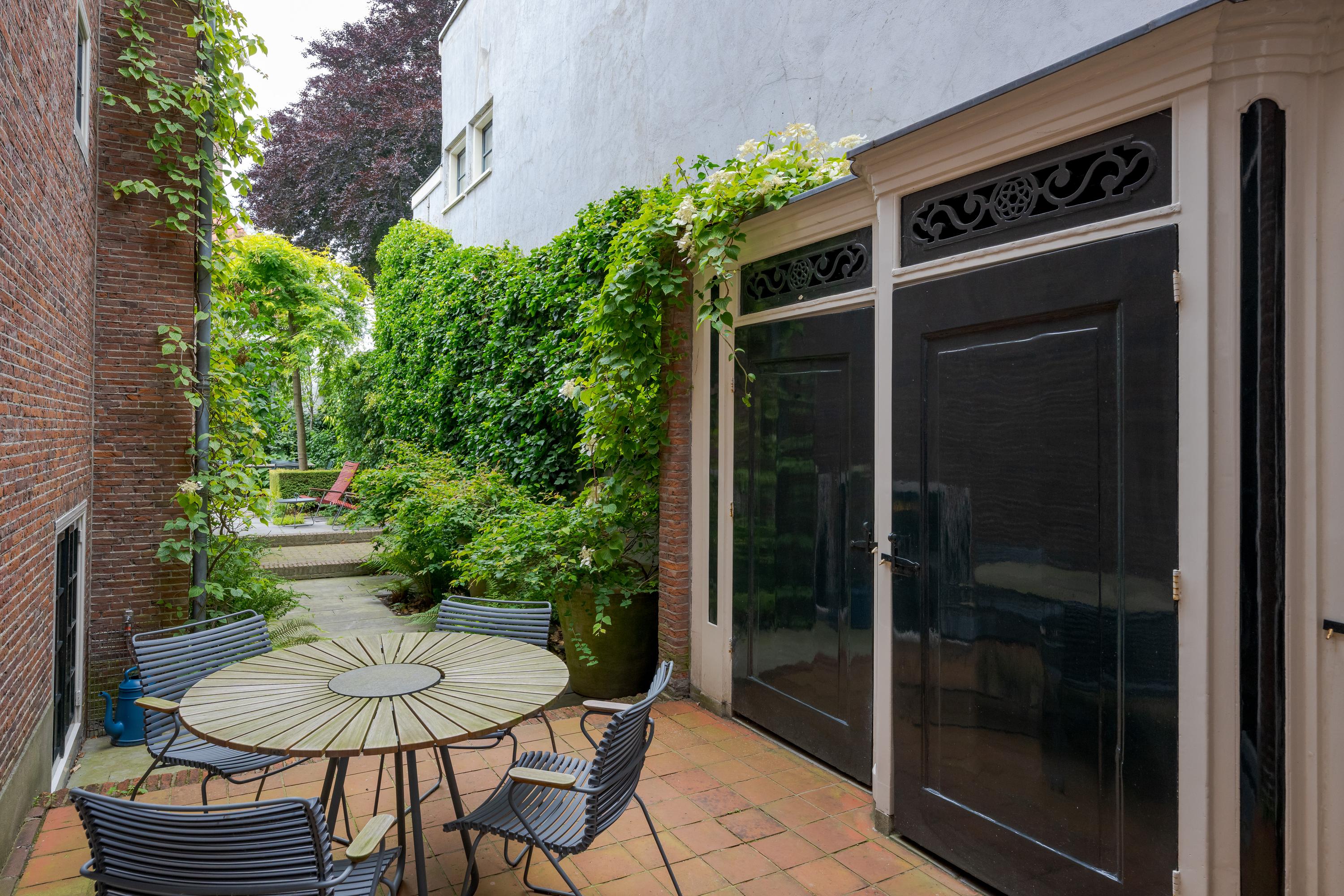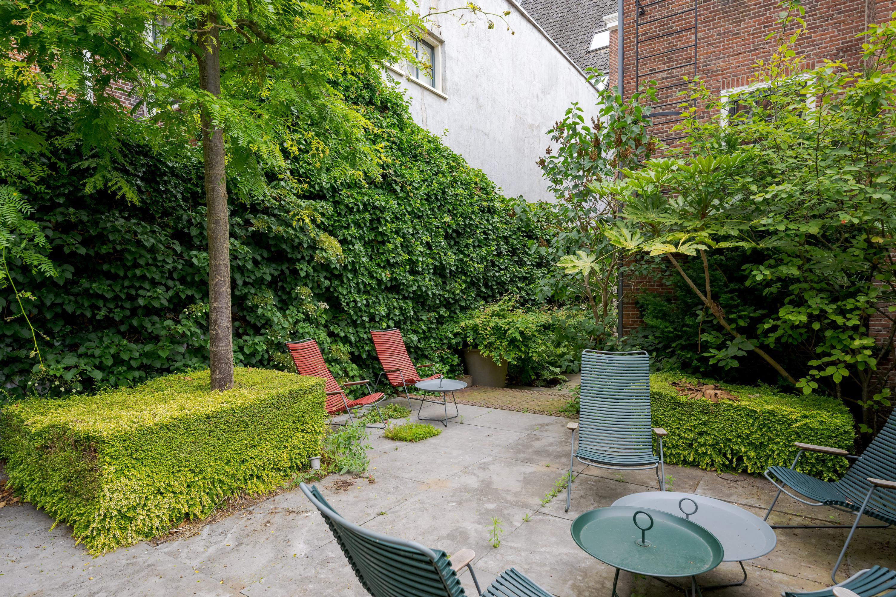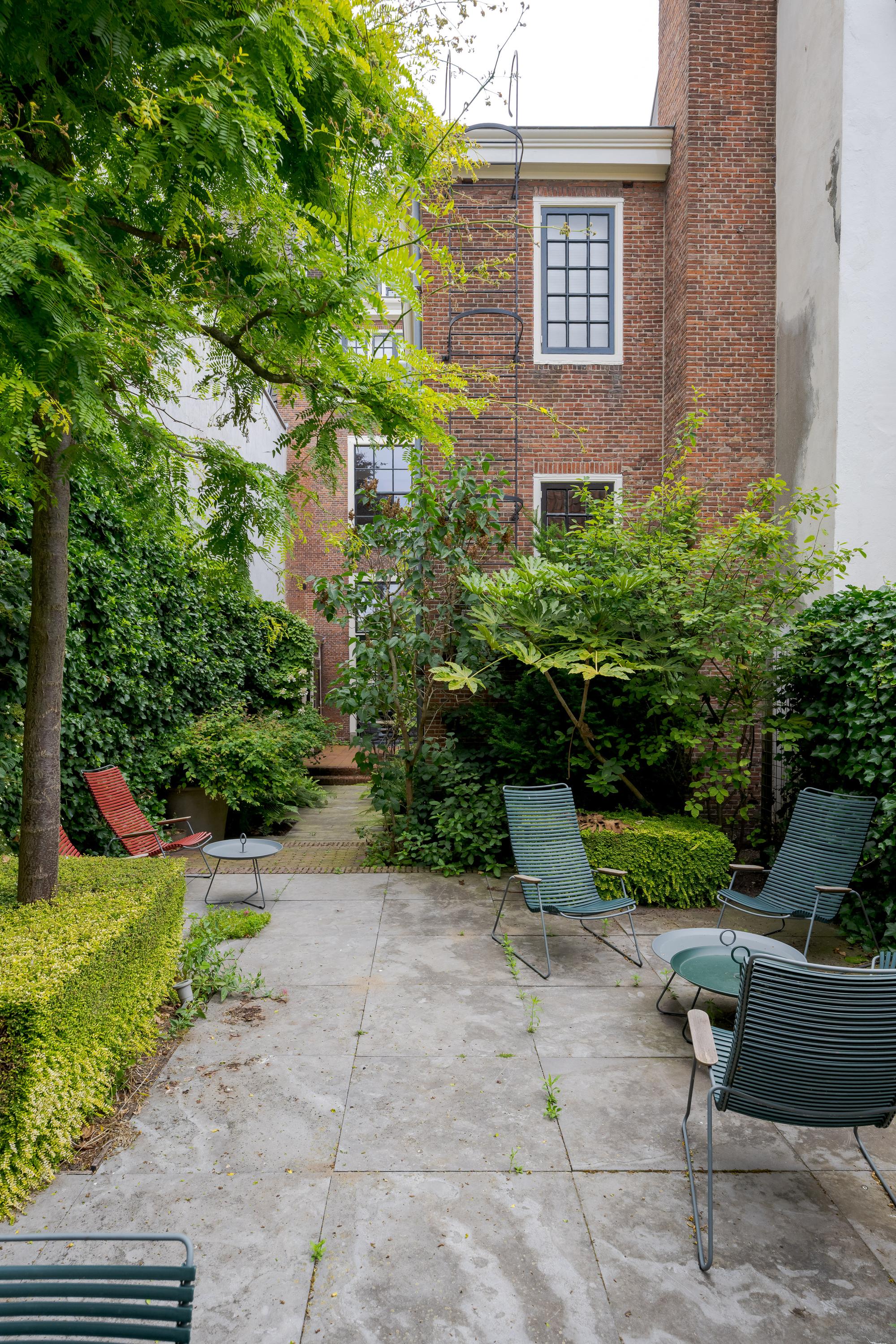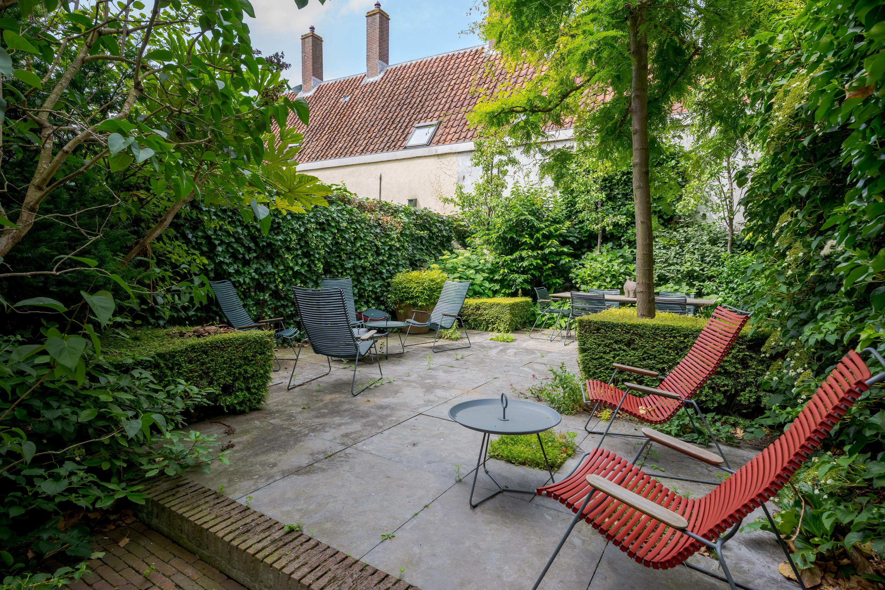 De tuin is fraai aangelegd en ligt op het westen. Er zijn meerdere zitjes voor zowel zon als schaduw en het is altijd opvallend hoe stil het is aan de achterzijde van een dergelijk pand. Hier kunt u heerlijk ontspannen of met vrienden dineren in de tuin.
