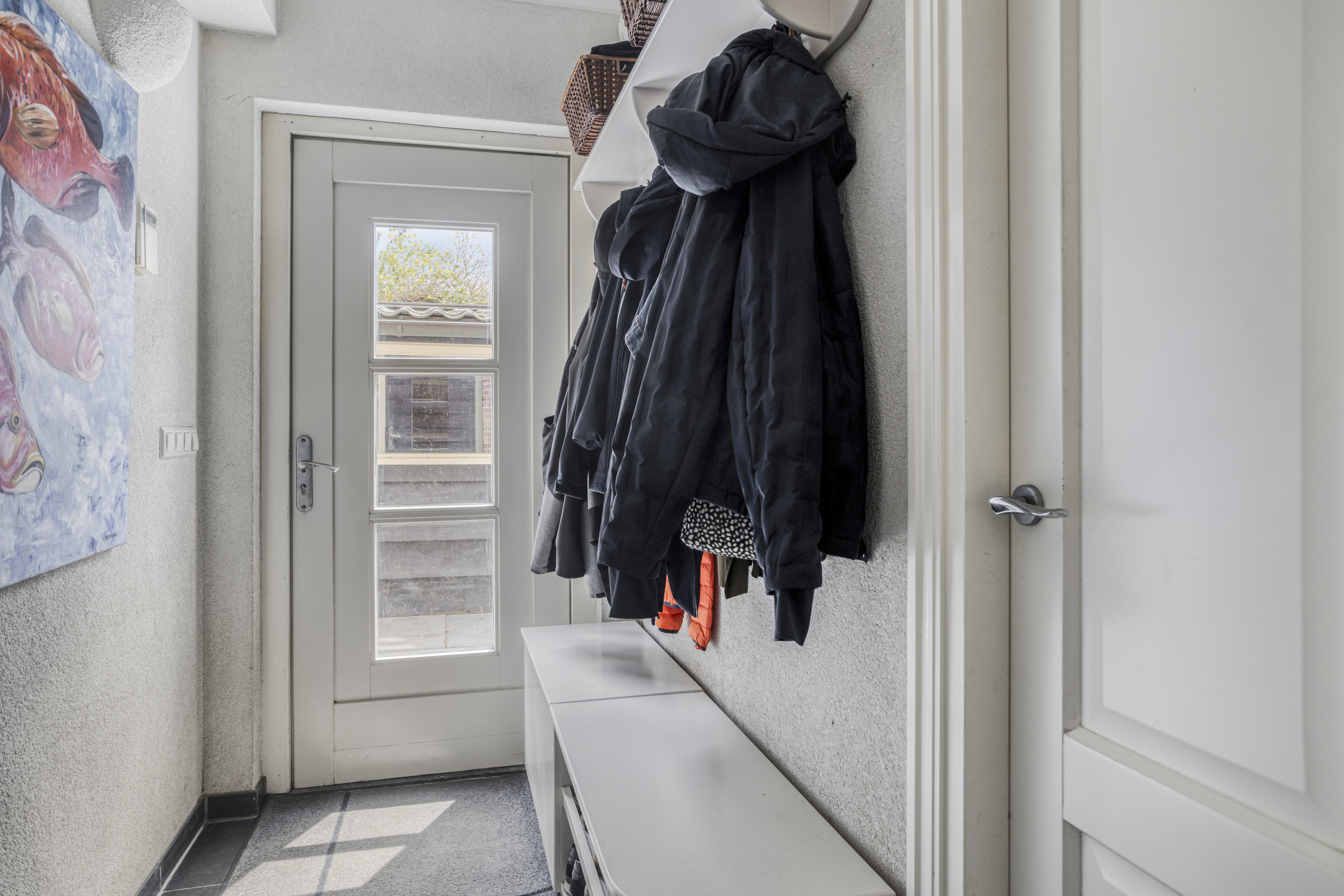 tussenhal voorzien van deur naar inpandig kantoor/garage en tuin/terras;