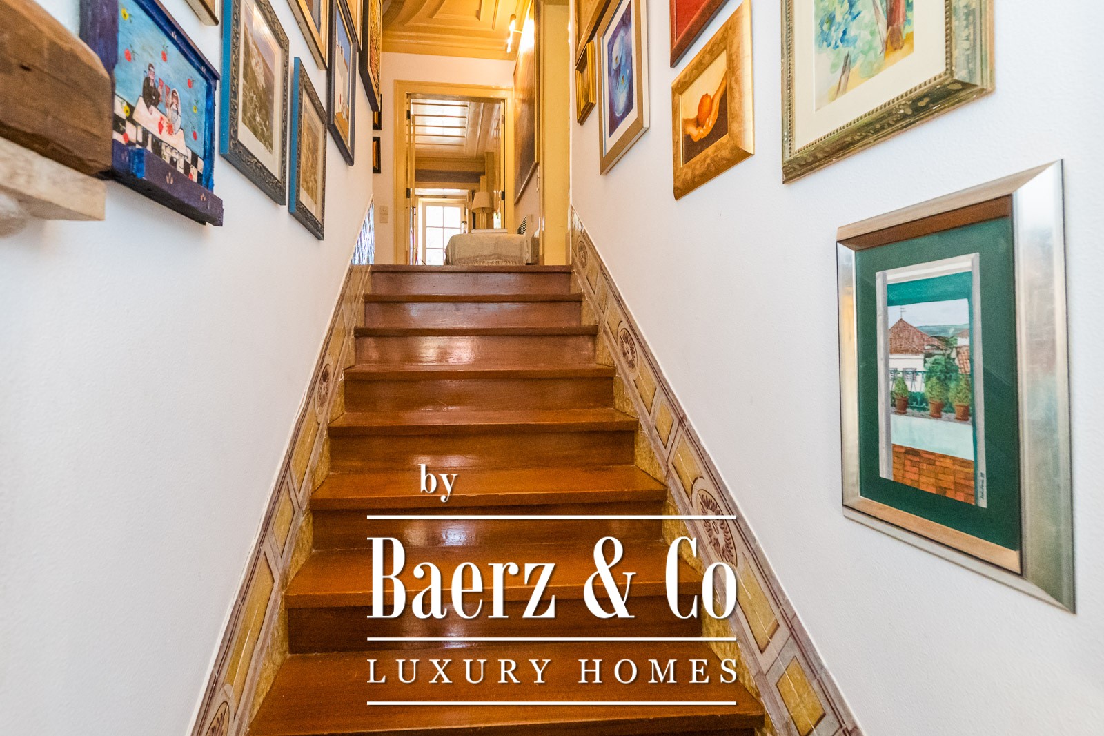 Discretie kenmerkt iedere hoek van deze woning. Zes slaapkamers en meerdere woonvertrekken zorgen voor een flexibele indeling, terwijl de Tudor-stijl keuken, dienstlift en hardhouten vloeren getuigen van zorgvuldige aandacht voor kwaliteit. Details zoals fresco’s van de Ricardo Espírito Santo Foundation en antiek tegelwerk verbinden elke ruimte met de bijzondere geschiedenis van de wijk.