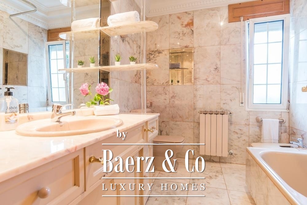 Deze uitzonderlijke vrijstaande villa ligt in El Plantío, een van de meest prestigieuze woonwijken aan de westkant van Madrid, op slechts 13 km van het stadscentrum met uitstekende verbindingen. De woning staat op een royaal privéperceel van 3.105 m² en biedt circa 952 m² bebouwde oppervlakte verdeeld over meerdere niveaus. Het ontwerp combineert klassieke elegantie met hoogwaardige afwerkingen zoals wit Macael-marmer en massief hout. De villa beschikt over zes ruime slaapkamers en acht badkamers, evenals zorgvuldig ingedeelde woonruimtes, waaronder een indrukwekkende hoofdwoonkamer met open haard, een bibliotheek, wijnkelder, privéfitnessruimte en een master suite met inloopkast en jacuzzi. Buiten vindt u prachtig aangelegde tuinen met volwassen bomen, een groot zwembad, een overdekt terras met barbecue en houtoven, en professionele tennis- en frontonbanen. Daarnaast beschikt de woning over een zelfstandig gastenappartement, ruime garagefaciliteiten en geavanceerde beveiligings- en klimaatsystemen, waardoor dit object ideaal is als luxe gezinswoning of hoogwaardige investering in een elitewijk van Madrid.