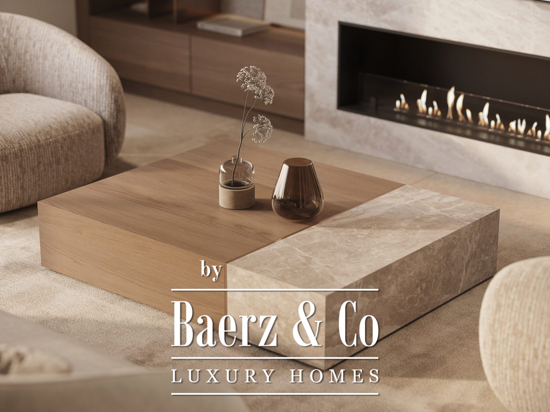 Het interieur onderscheidt zich door hoogwaardige eiken vloeren, grootformaat porseleinen tegels en de nieuwste apparatuur van Gaggenau en Siemens. Voor ontspanning is er een privé verwarmd zwembad, een eigen bioscoop en een gym. De garage voldoet aan de moderne eisen. De villa wordt volledig gemeubileerd in een hedendaagse stijl aangeboden, met de mogelijkheid het meubilair apart aan te schaffen voor €250.000.