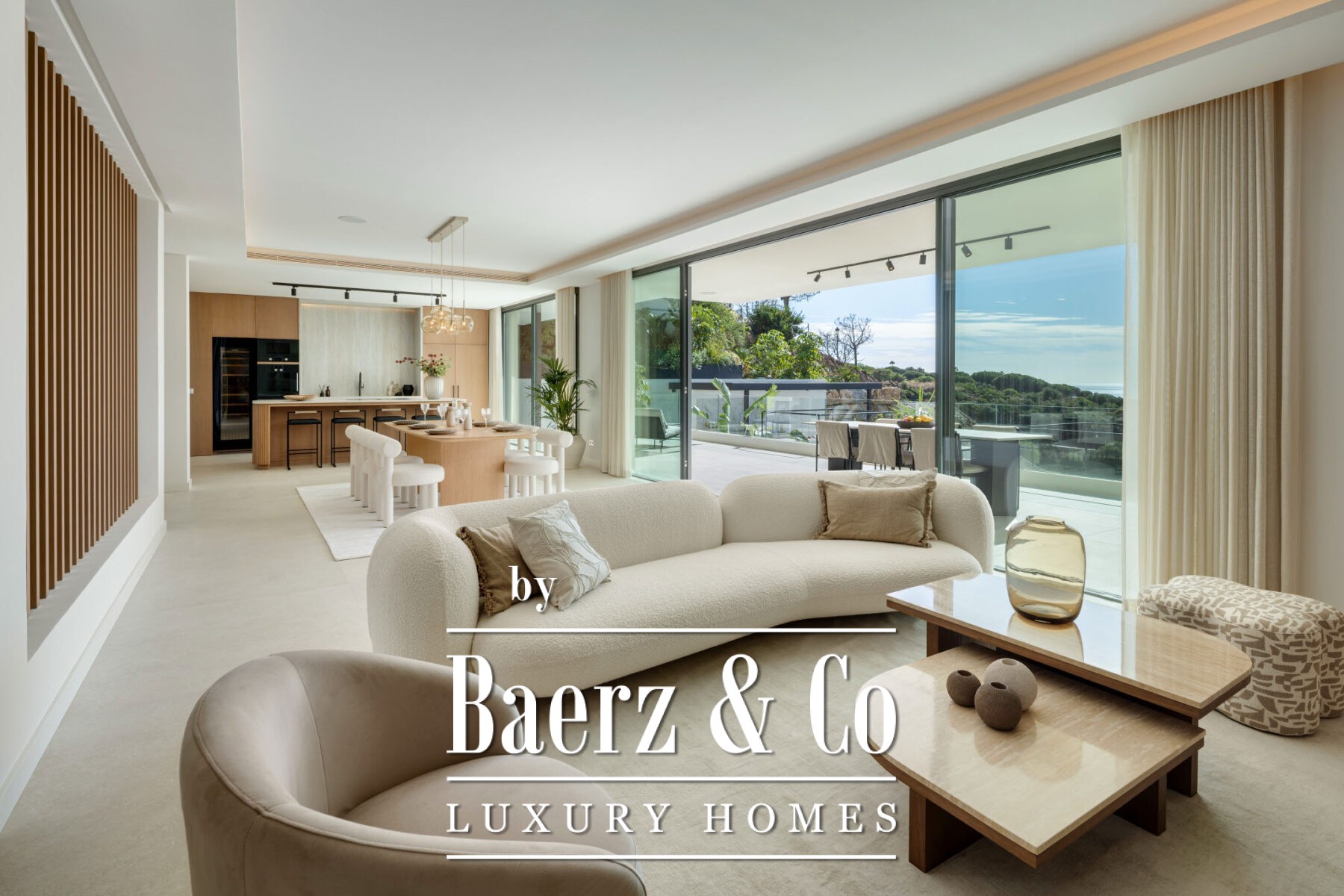 De zuidelijke oriëntatie biedt een spectaculair uitzicht over de Middellandse Zee. In dit afgesloten en veilige domein profiteren bewoners van de geruststellende aanwezigheid van geavanceerde camerasystemen en een geïntegreerd alarmsysteem. Dankzij royale terrassen vloeien binnen- en buitenleven naadloos in elkaar over, waarbij licht en ruimte samensmelten en buitenleven een dagelijks ritueel wordt.