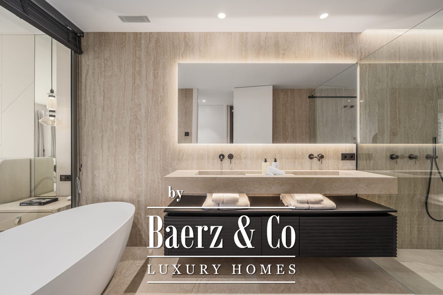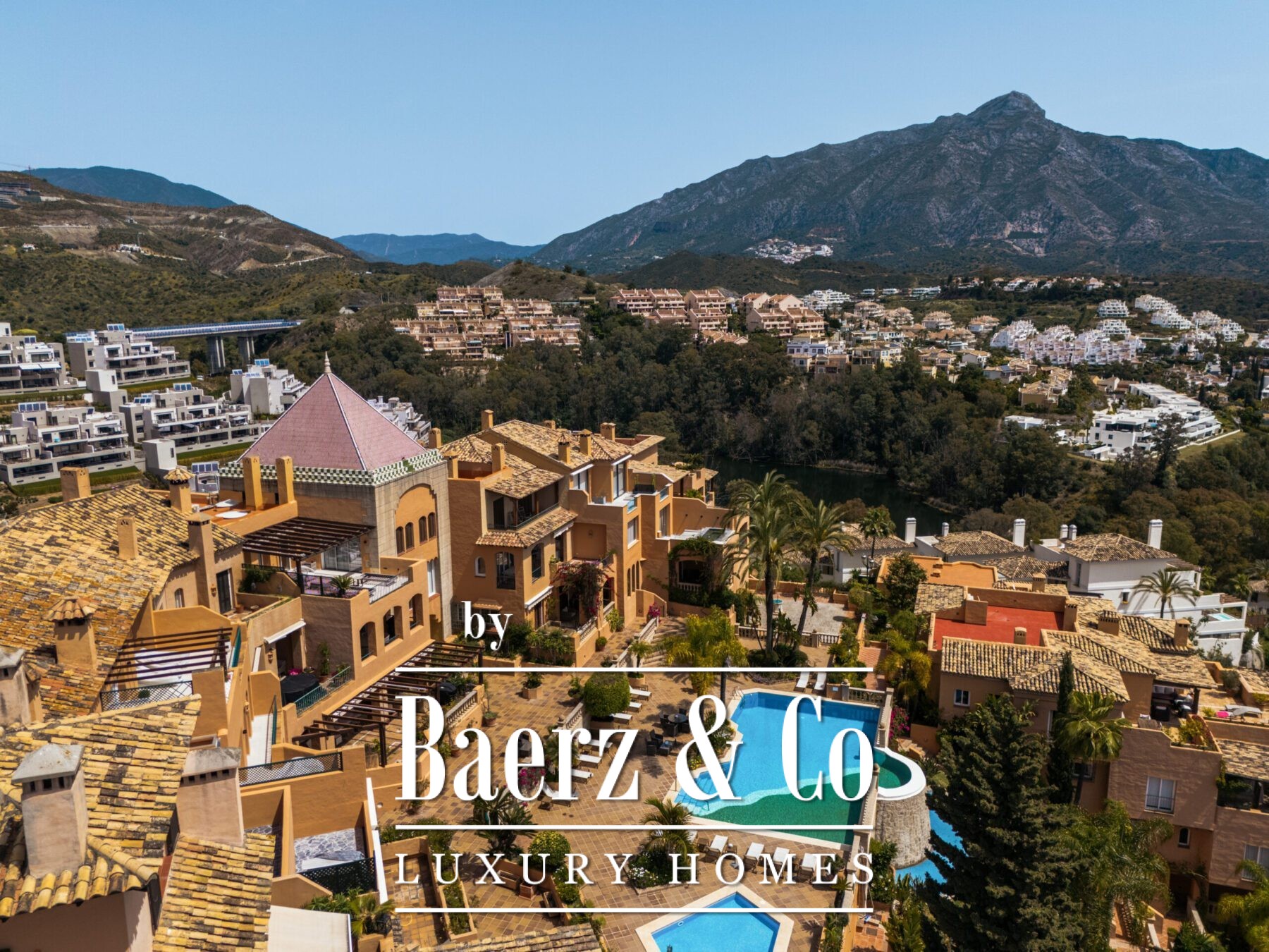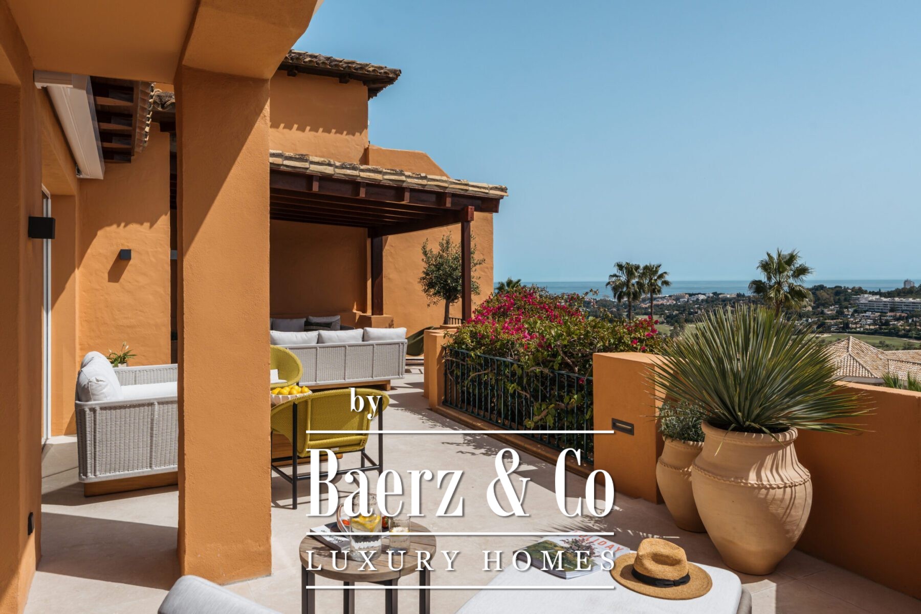 Binnen deze beveiligde, afgesloten residentie met 24-uurs bewaking valt de woning met vier slaapkamers en vier-en-een-halve badkamer op dankzij verfijnde details. Vloer-tot-plafondramen verlichten de royale woon- en eetruimte, die naadloos overgaat in een ruim terras voor ontspannen uurtjes of stijlvolle ontvangsten onder de Marbellaanse hemel. De keuken is uitgerust met Gaggenau apparatuur, afgewerkt met natuur eiken vloeren en een intuïtief smart home-systeem, wat discreet comfort en luxe benadrukt.