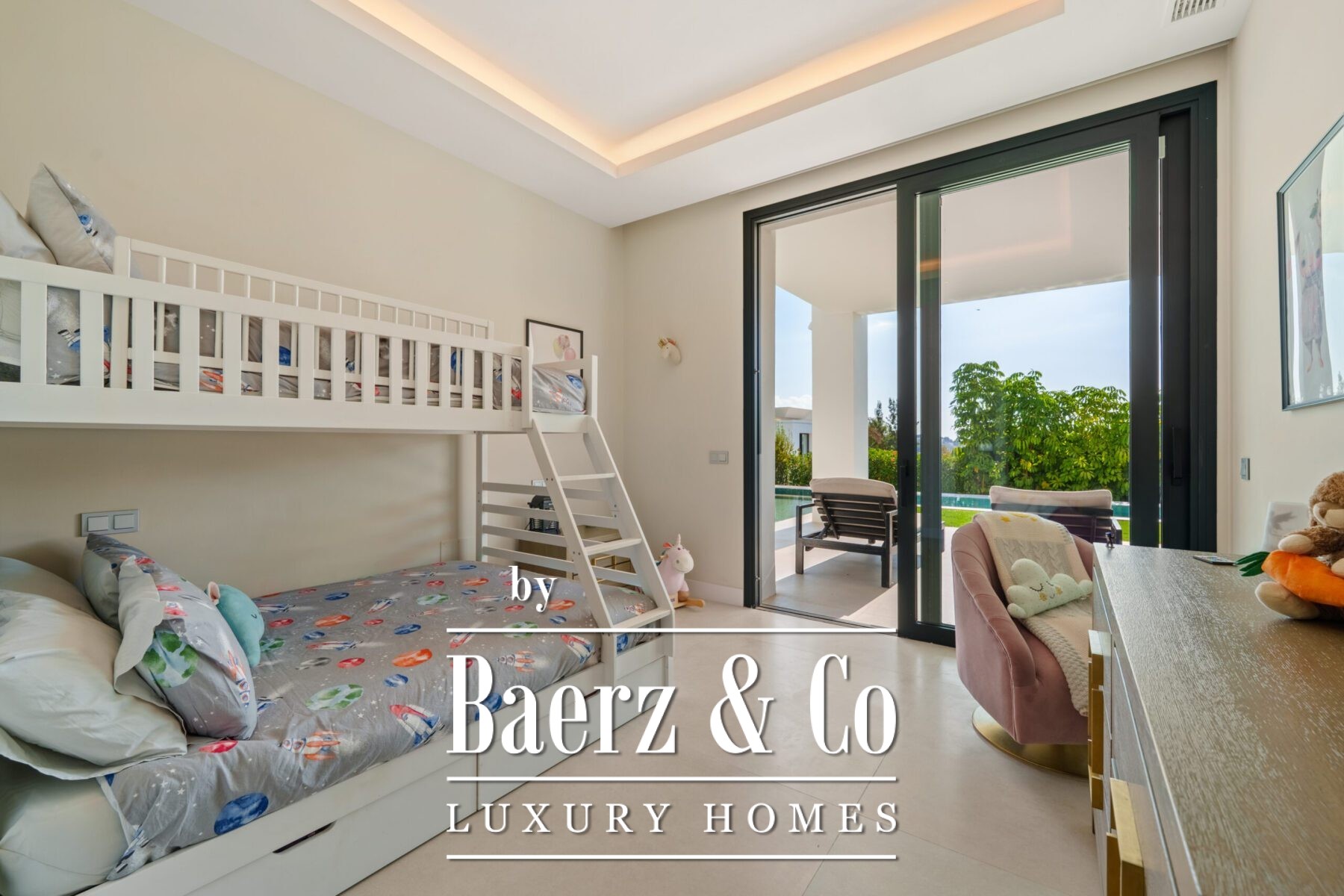 Buiten ligt de focus op een royaal zwembad met een intrekbare cover, omgeven door zonneterrassen en diverse overdekte zitgedeelten. Grenzend aan het zwembad vindt u een lounge met vuurplaats, een buitenkeuken en eetruimte, wat zorgt voor een ontspannen sfeer voor stijlvol buitenleven en entertainment het hele jaar door. Zes slaapkamers en vijf badkamers garanderen privacy en comfort, waarbij elke slaapkamer beschikt over een eigen terras en een eigentijdse afwerking.