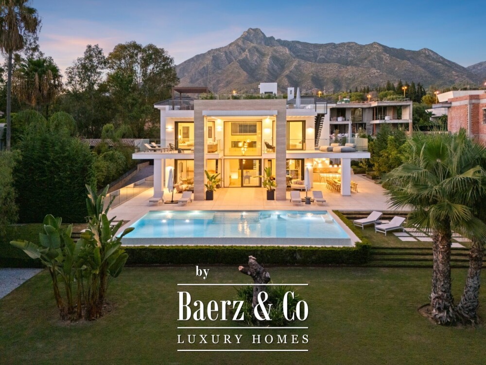 Ruimtelijkheid vind je in de formele eetkamer, een design-keuken en een verfijnde entertainmentlounge; elk ruimte straalt ingetogen elegantie uit. Privé suites—ieder met eigen badkamer—bieden rust, terwijl de master suite is uitgerust met een badkamer in spa-stijl, vrijstaand bad en een panoramisch uitzicht op de La Concha berg. Buitenleven is even privé als indrukwekkend, met diverse terrassen, een rooftop lounge met jacuzzi en een infinity pool; dit alles omringd door aangelegde tuinen op een perceel van 1.556 m².