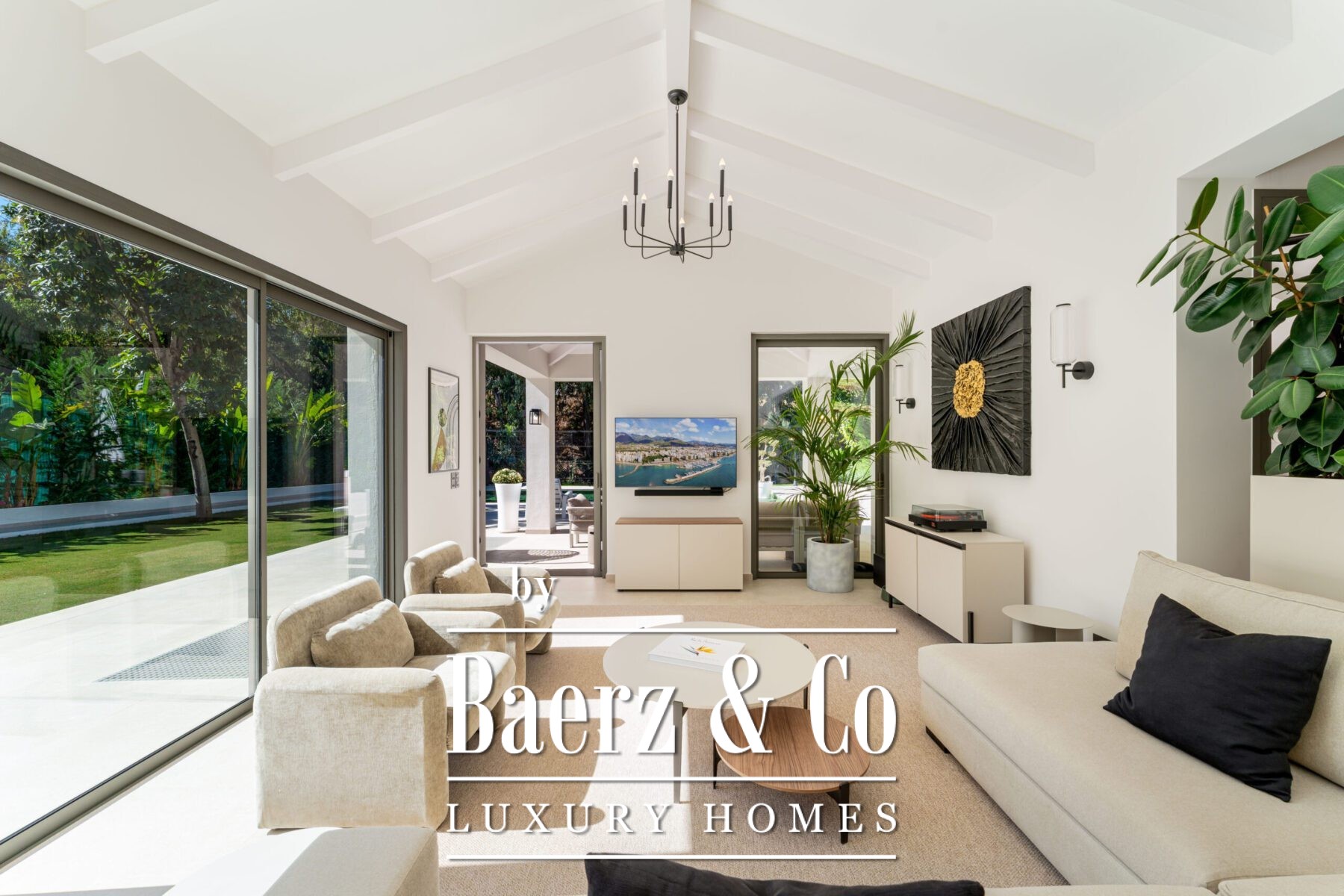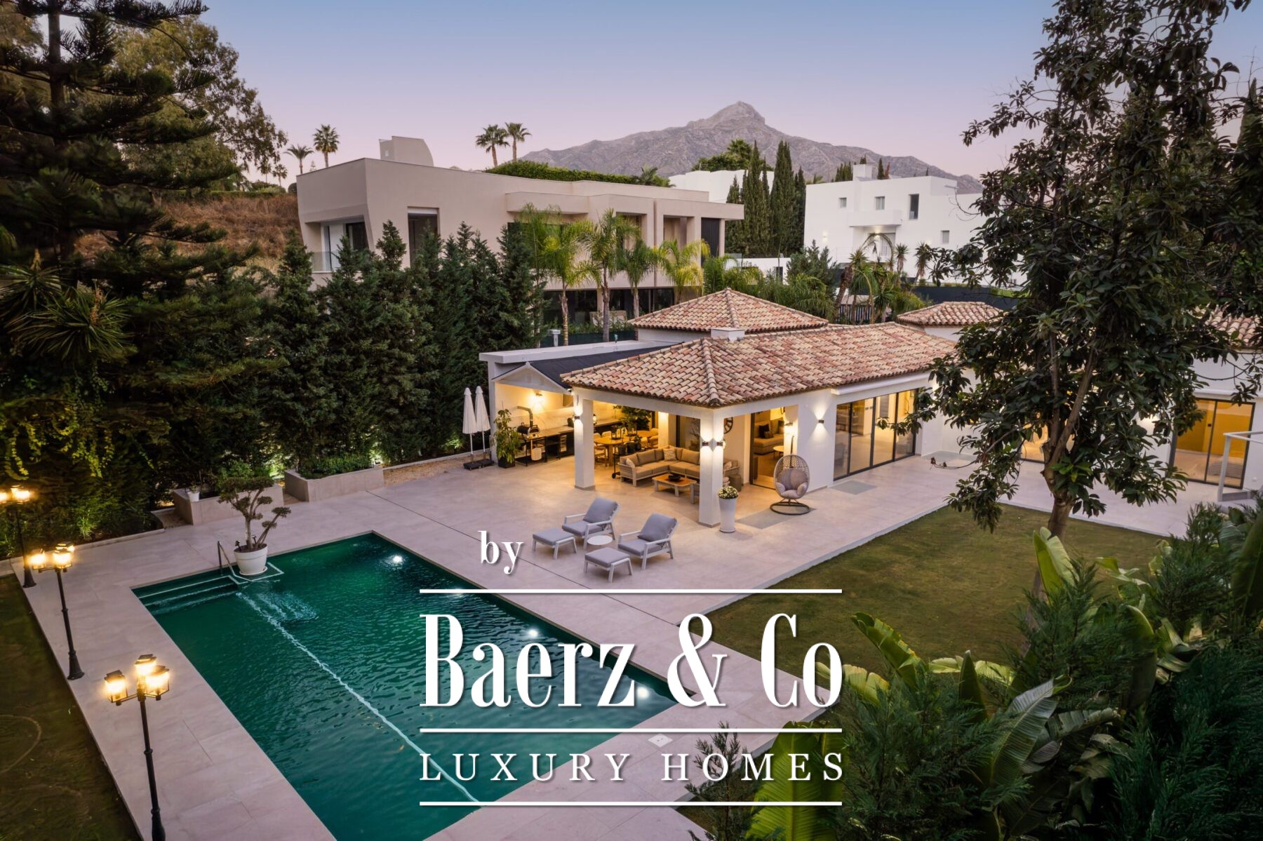 Deze villa te koop in Nueva Andalucía Marbella combineert verfijnde architectuur en harmonieuze ruimtes met een locatie van blijvende waarde, ideaal voor wie een onopvallende levensstijl zonder concessies zoekt.