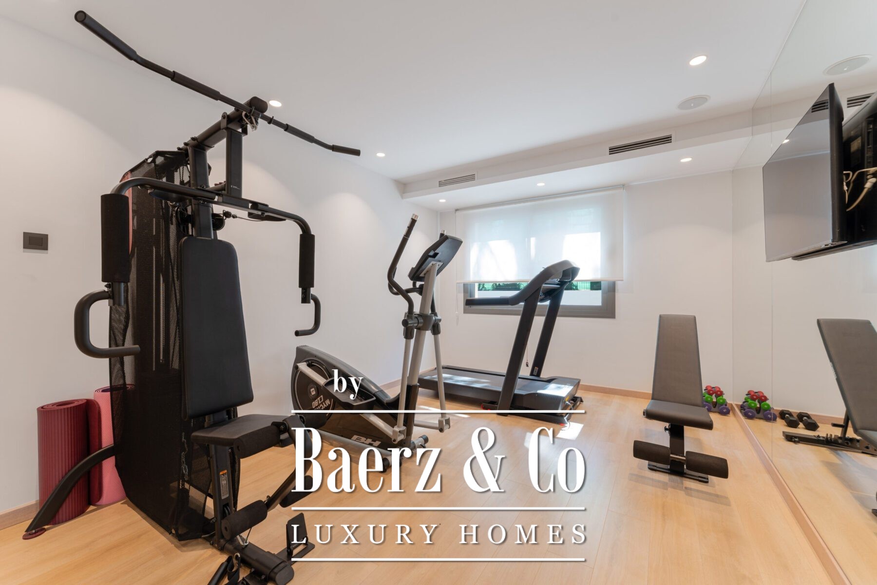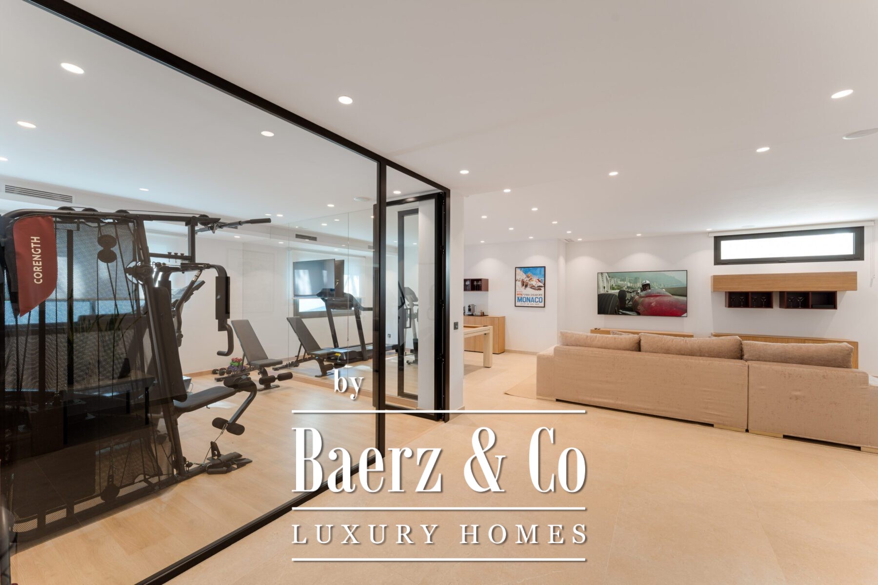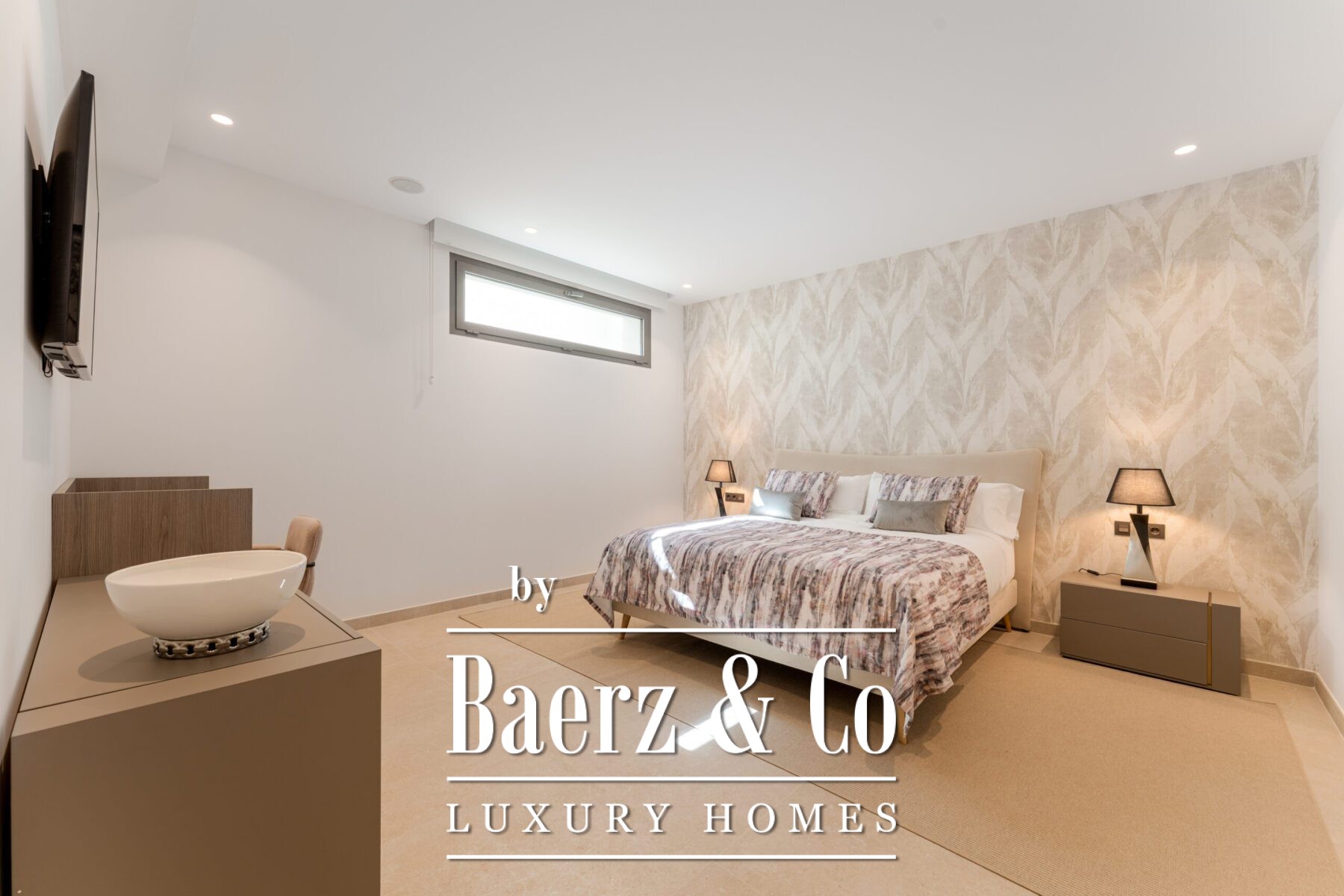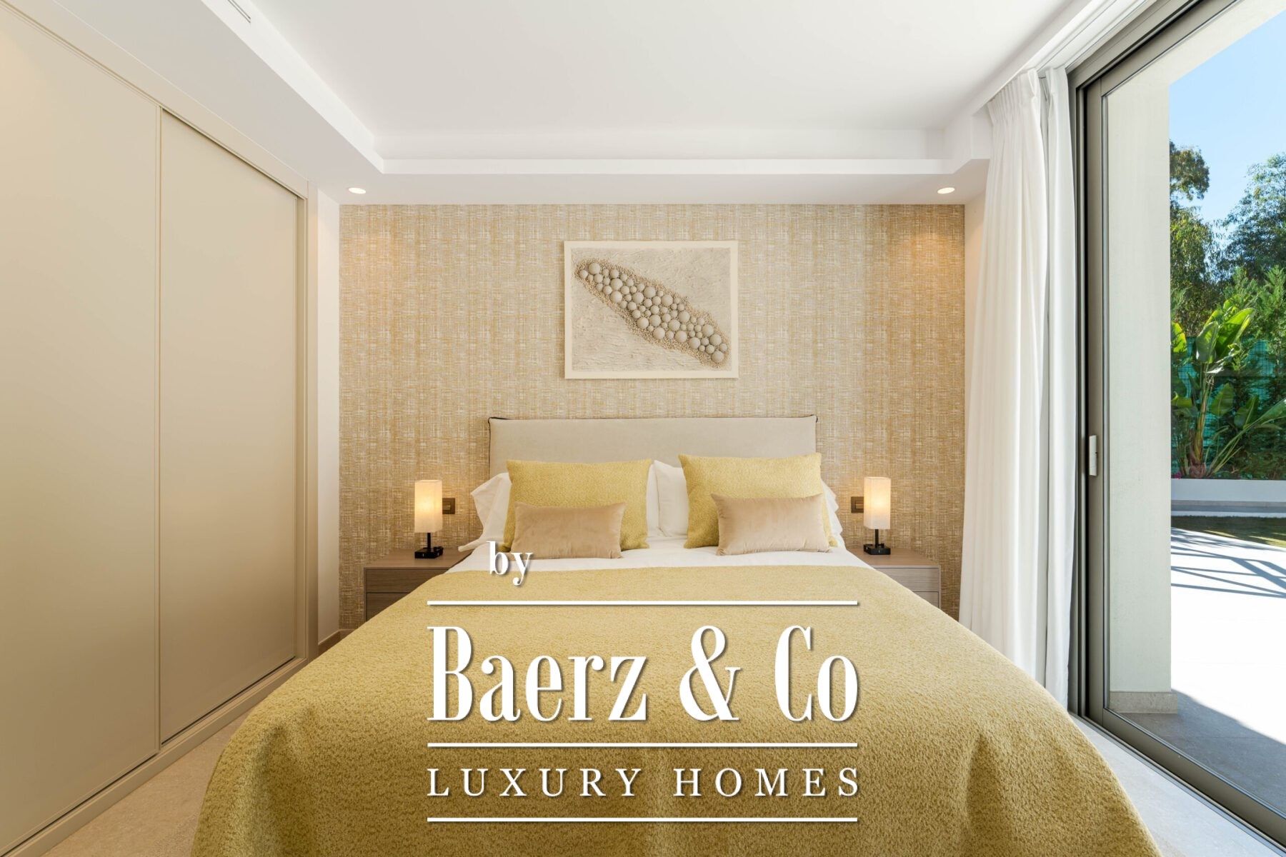 De doordacht aangelegde tuin omsluit een privé, verwarmd zwembad en royale terrassen die uitgerust zijn met een buitenkeuken, eetgedeelte en diverse zitplekken voor tijdloos buitenleven. Voorzieningen als vloerverwarming, zone airconditioning en geavanceerde beveiliging voldoen aan de wensen van internationale kopers. De villa waarborgt totale privacy en is toch dichtbij toonaangevende internationale scholen, Marbella Sports & Tennis Club en biedt directe aansluiting op de AP-7.